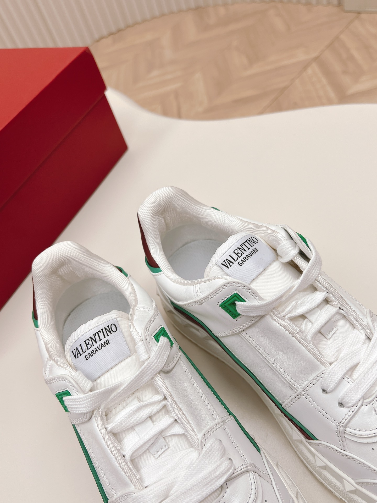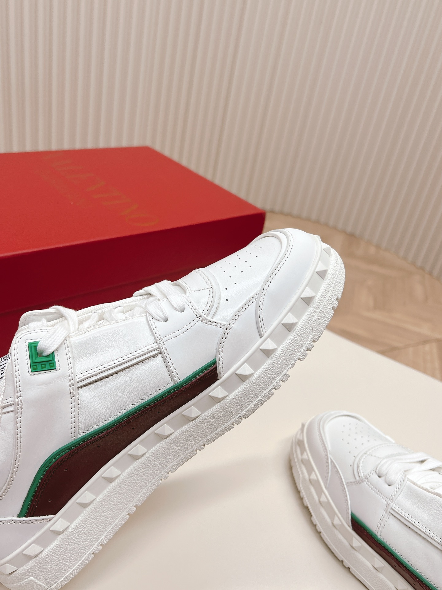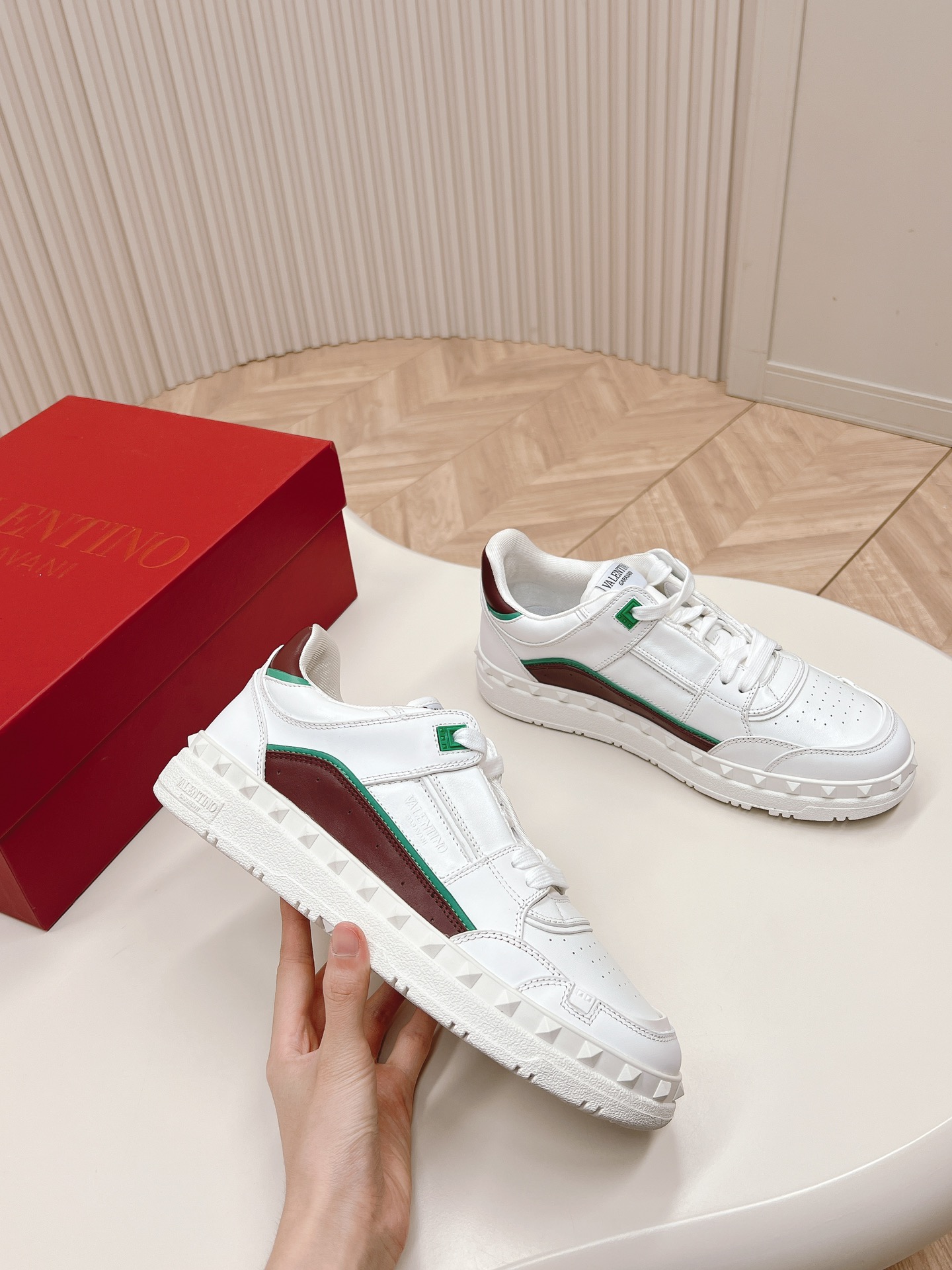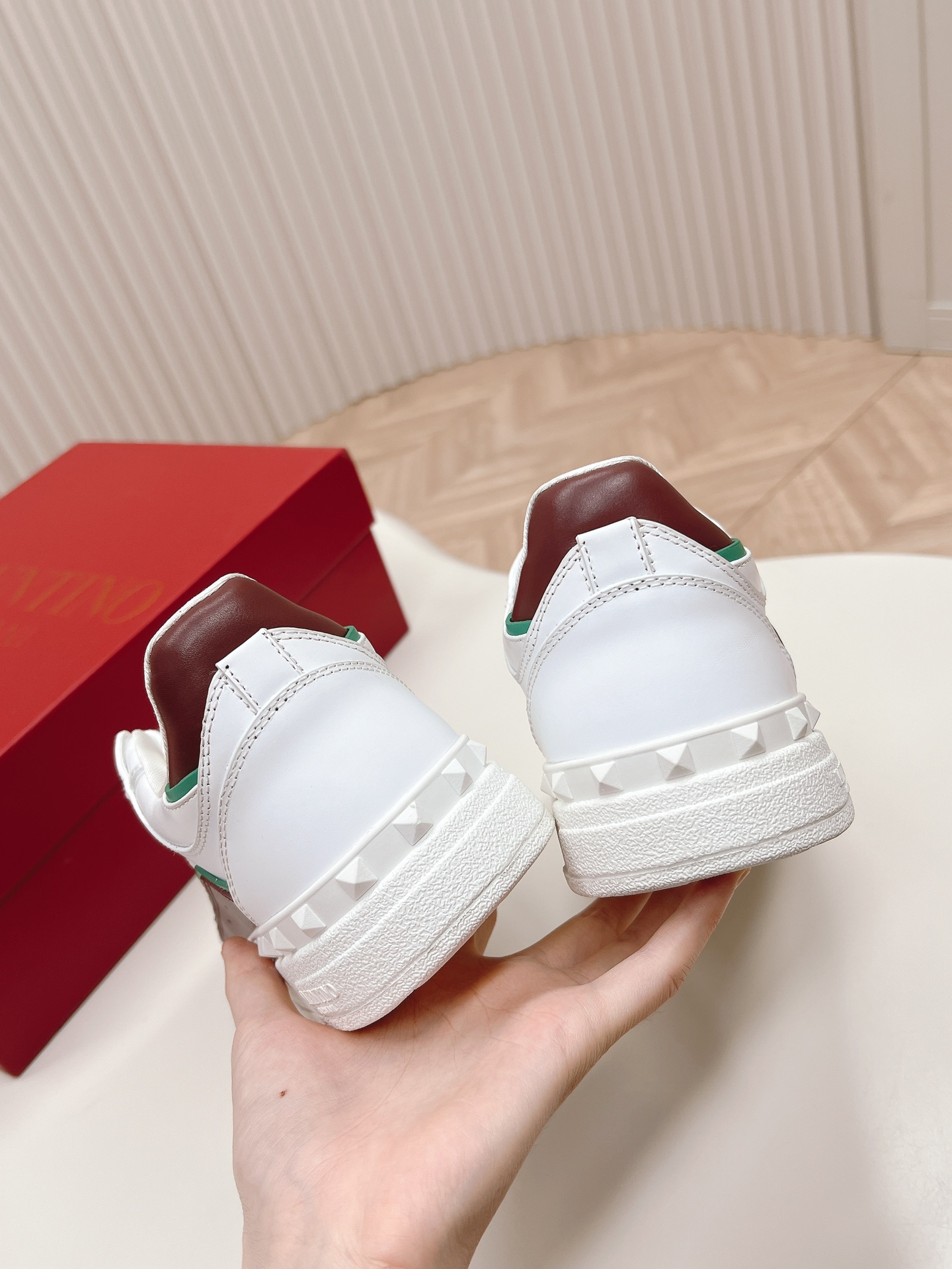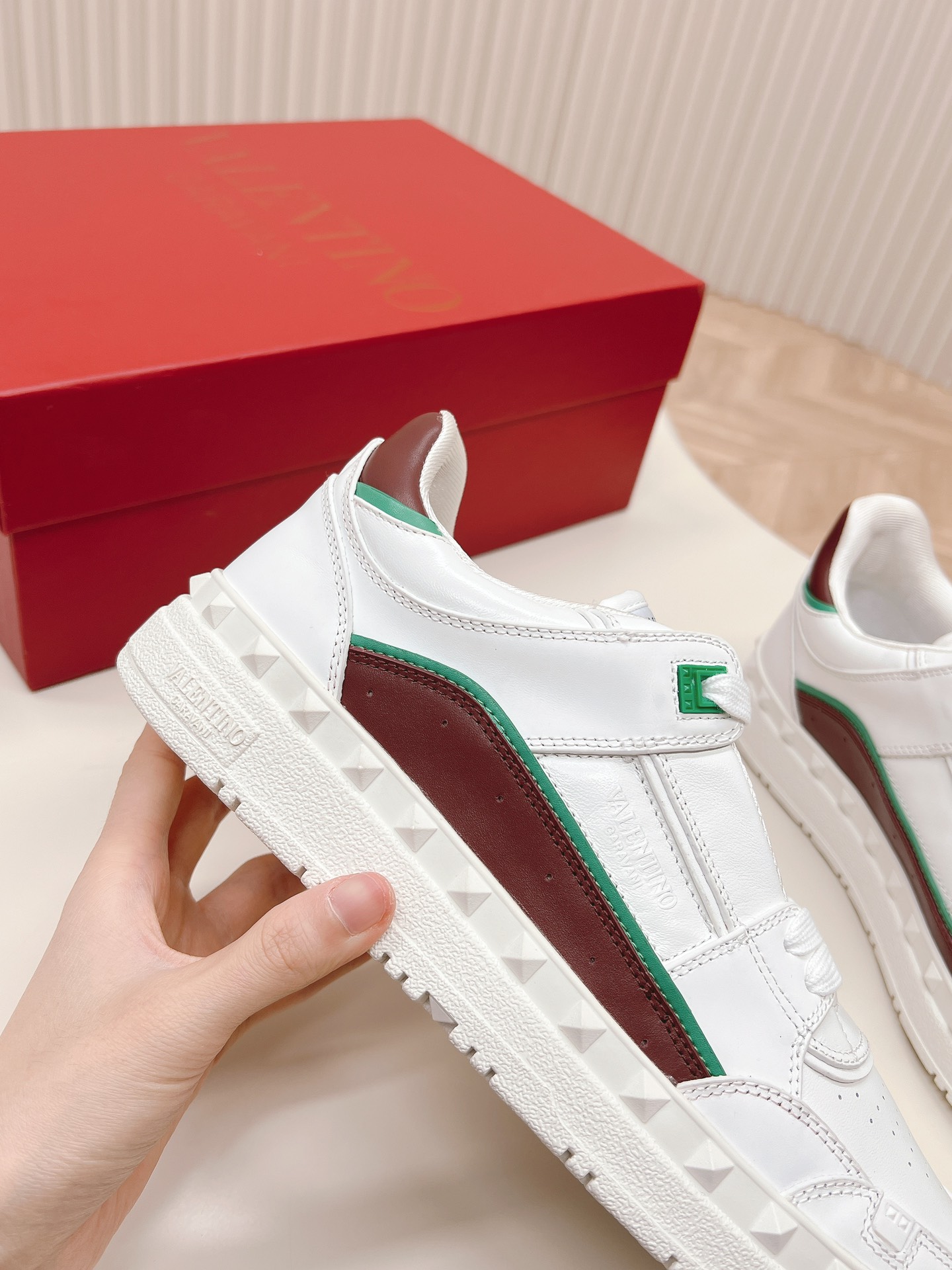 這款鞋子是AAAAA 1:1 質量(非常棒). 使用了和原版一模一樣的材料. 商標部分也保持了和瓦倫蒂諾/Valentino一樣. 圖片拍攝是實物鞋子拍攝, 您所收到的實物保證和我們圖片一模一樣.