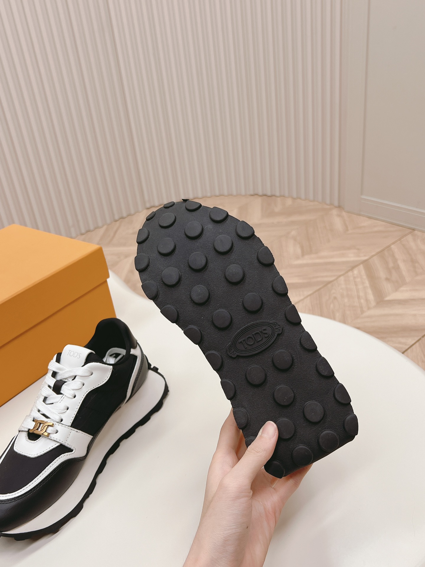 這款鞋子是AAAAA 1:1 質量(非常棒). 使用了和原版一模一樣的材料. 商標部分也保持了和托德的/Tod's一樣. 圖片拍攝是實物鞋子拍攝, 您所收到的實物保證和我們圖片一模一樣.