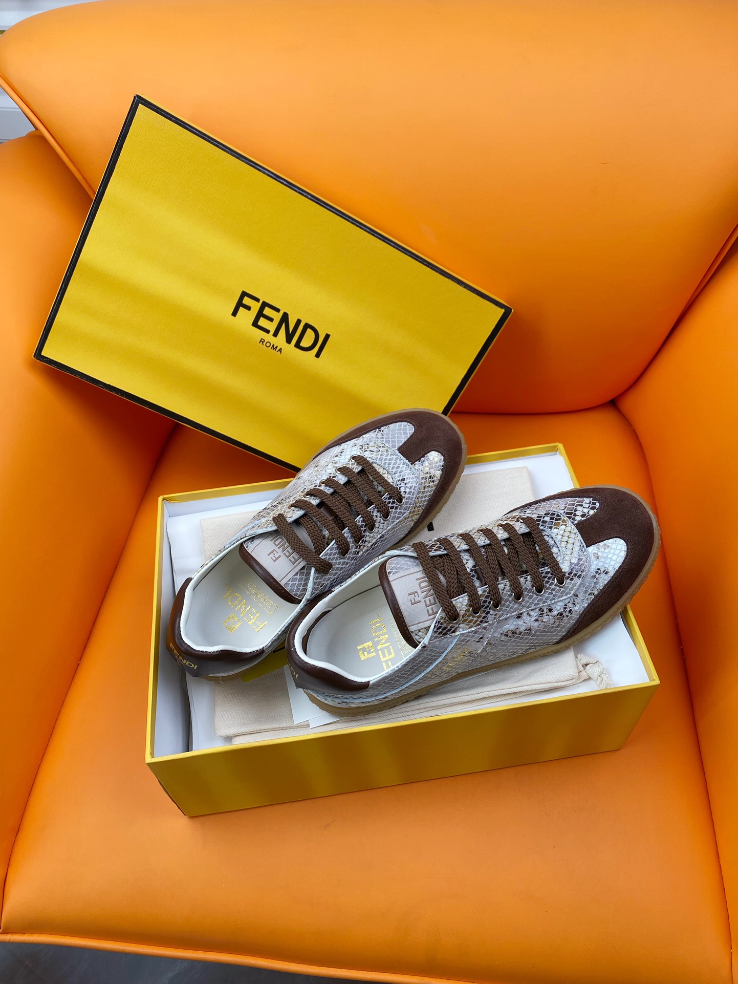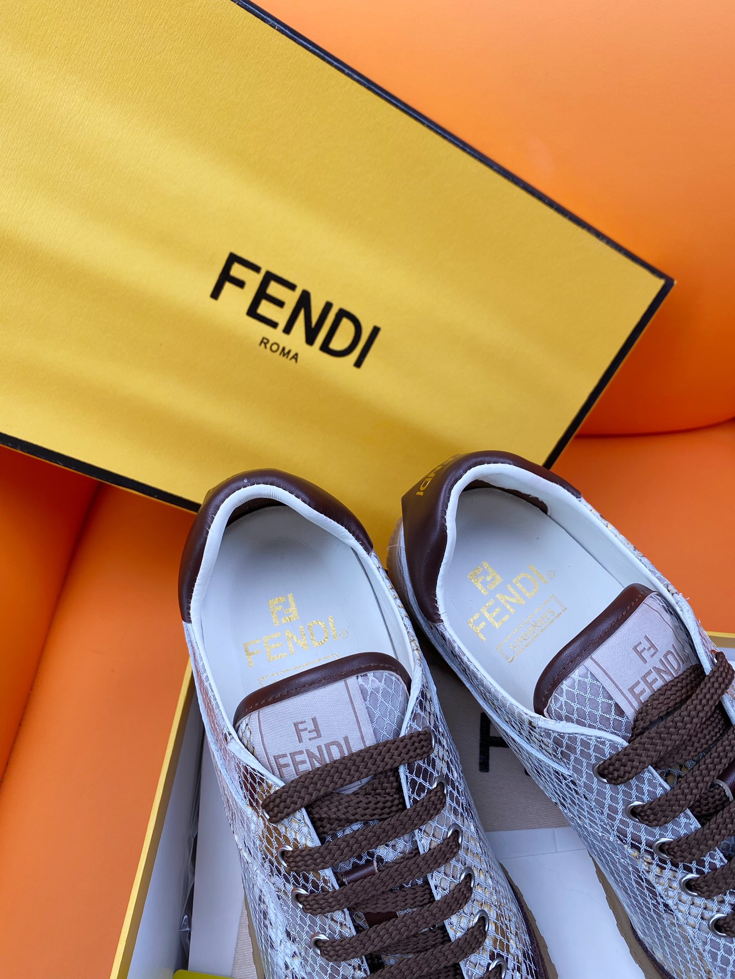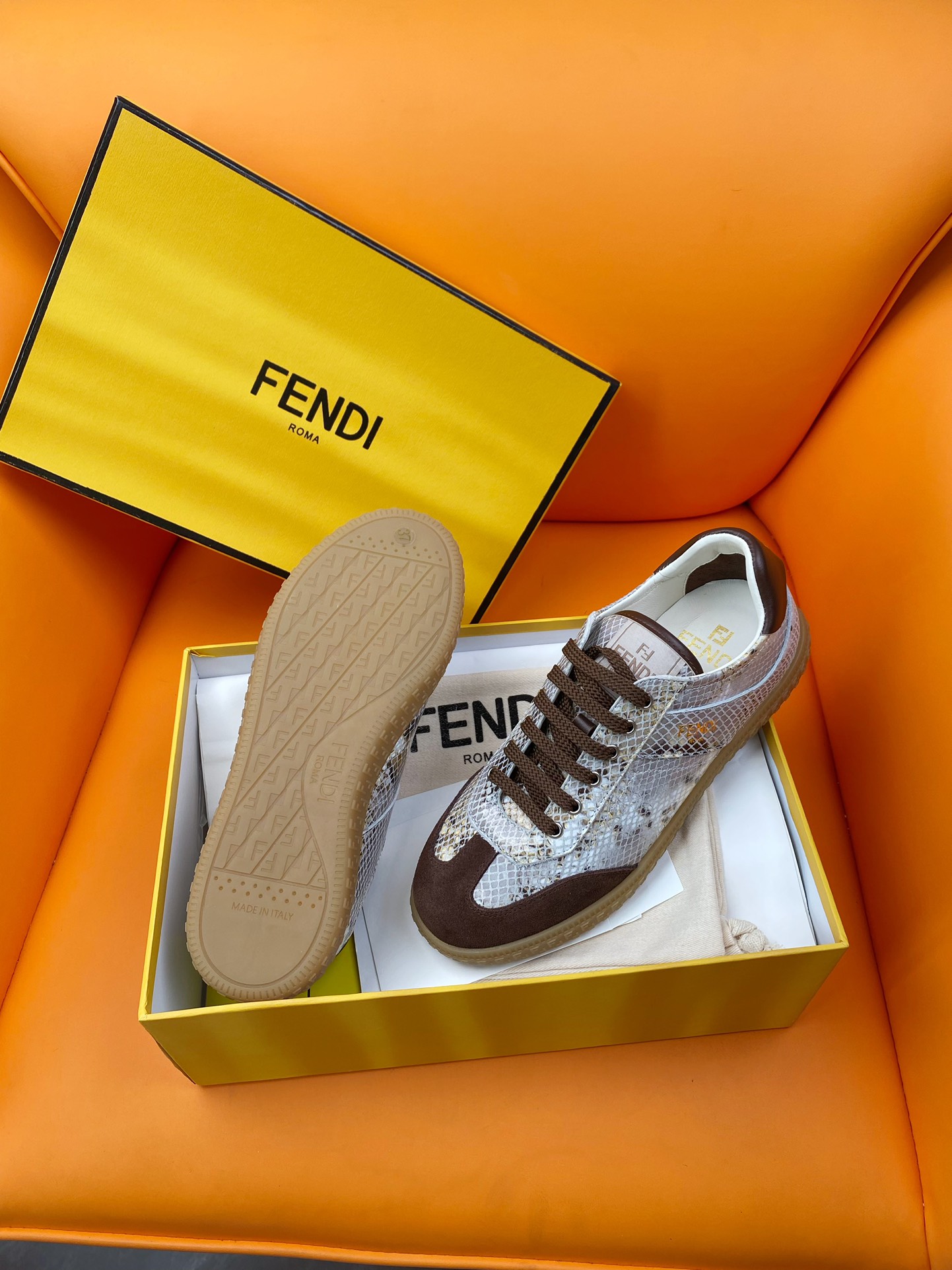 這款鞋子是AAAAA 1:1 質量(非常棒). 使用了和原版一模一樣的材料. 商標部分也保持了和芬迪/Fendi一樣. 圖片拍攝是實物鞋子拍攝, 您所收到的實物保證和我們圖片一模一樣.