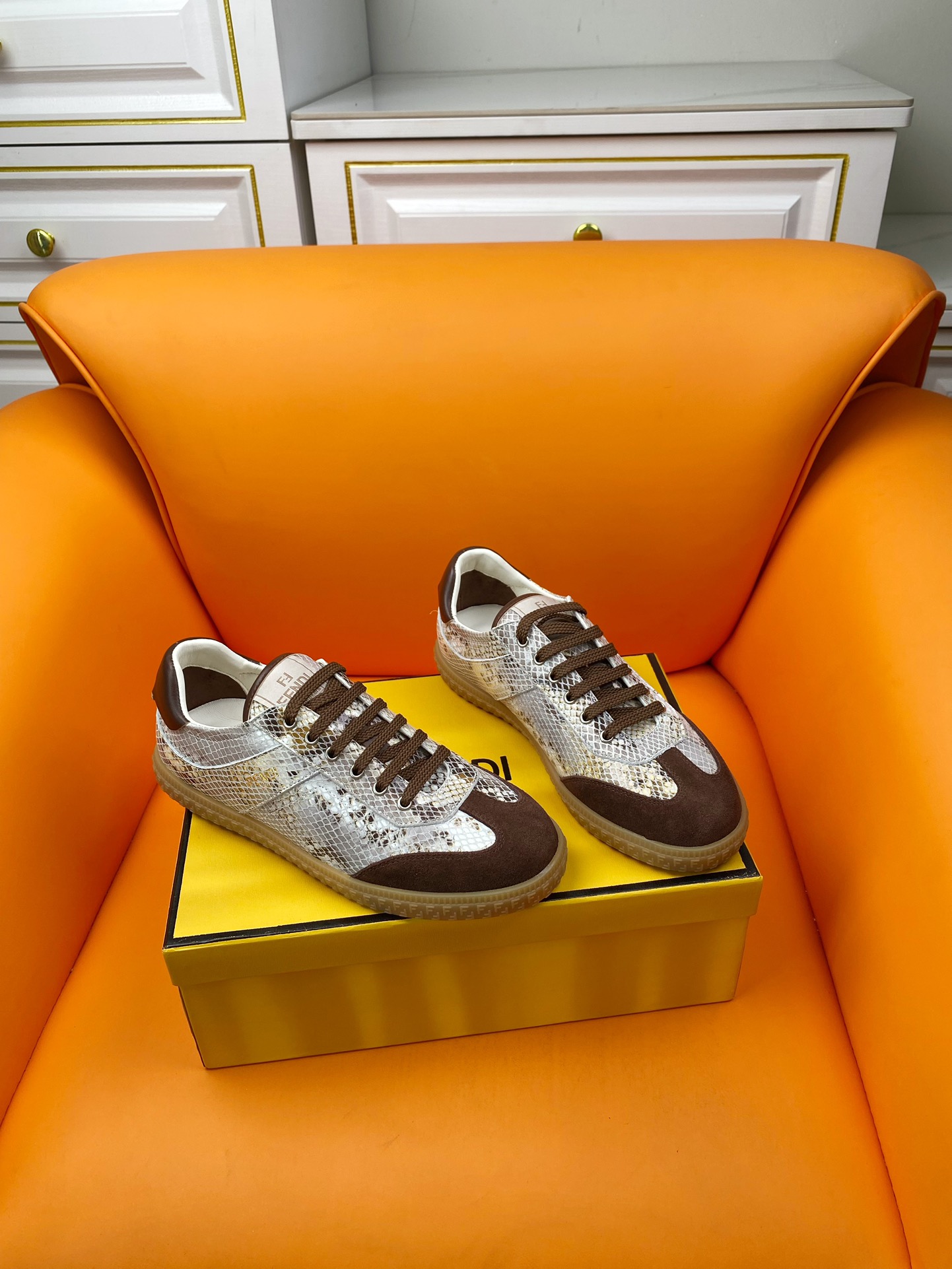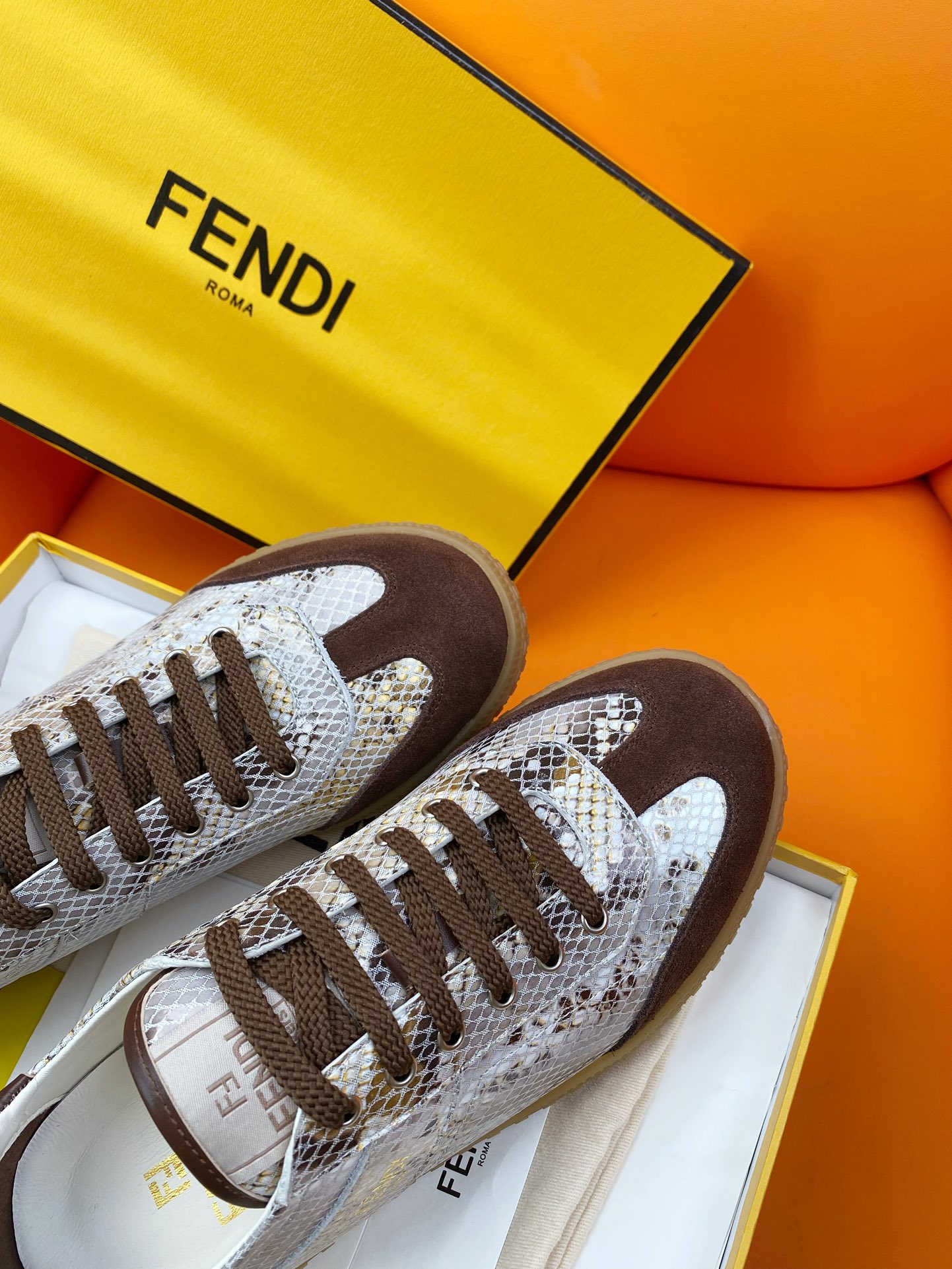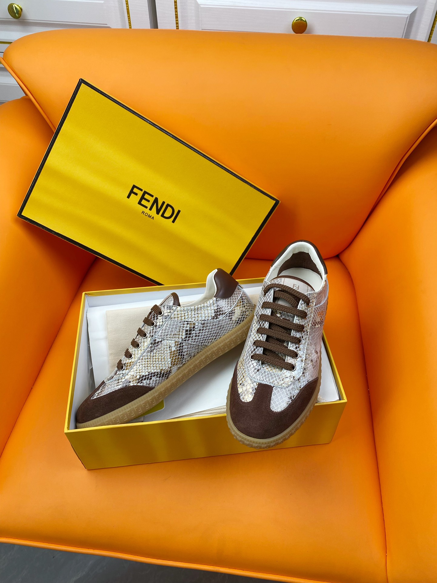 這款鞋子是AAAAA 1:1 質量(非常棒). 使用了和原版一模一樣的材料. 商標部分也保持了和芬迪/Fendi一樣. 圖片拍攝是實物鞋子拍攝, 您所收到的實物保證和我們圖片一模一樣.