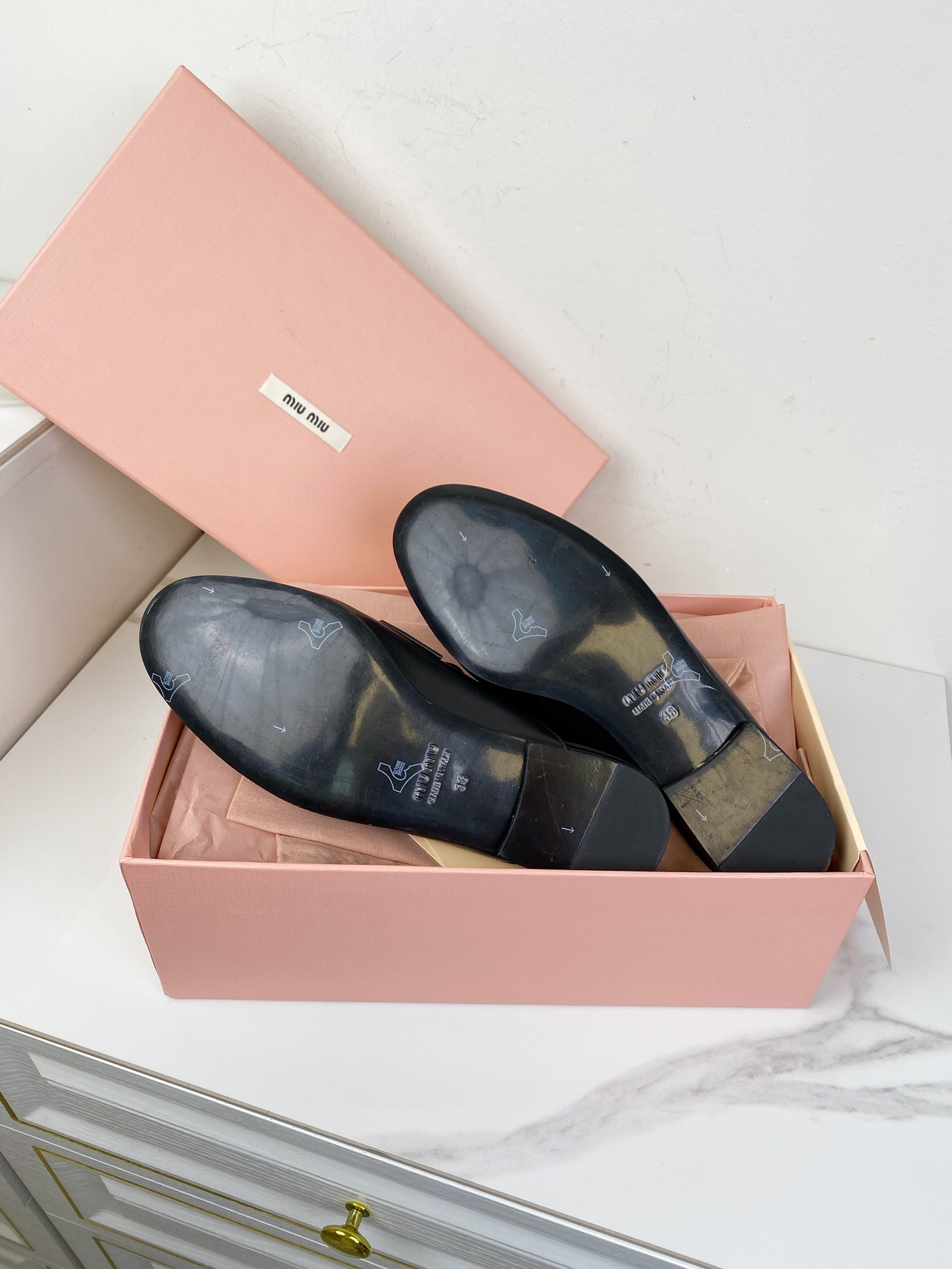 這款鞋子是AAAAA 1:1 質量(非常棒). 使用了和原版一模一樣的材料. 商標部分也保持了和繆繆/Miu Miu一樣. 圖片拍攝是實物鞋子拍攝, 您所收到的實物保證和我們圖片一模一樣.