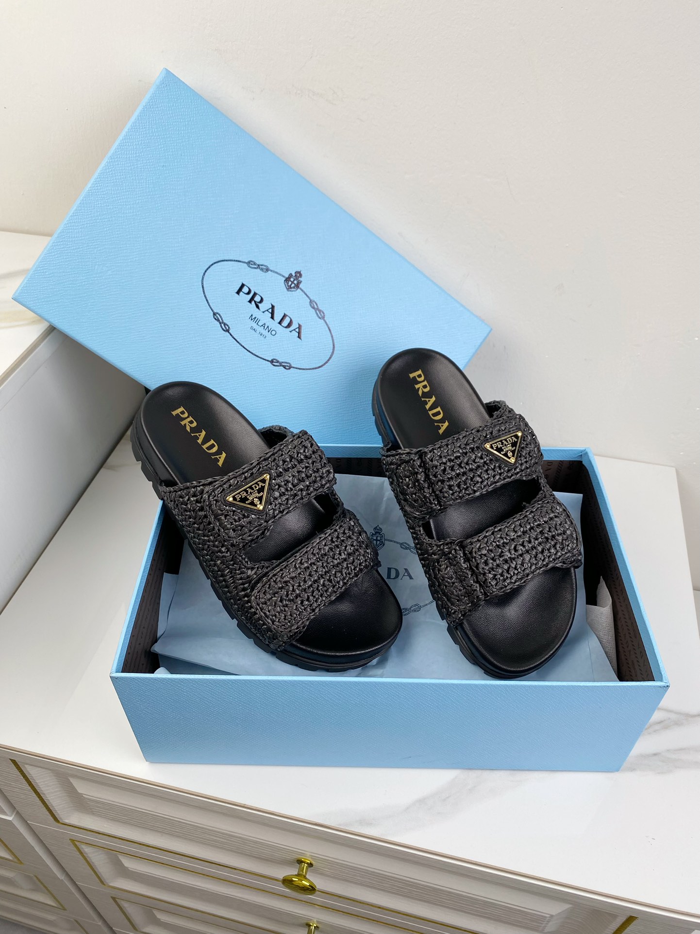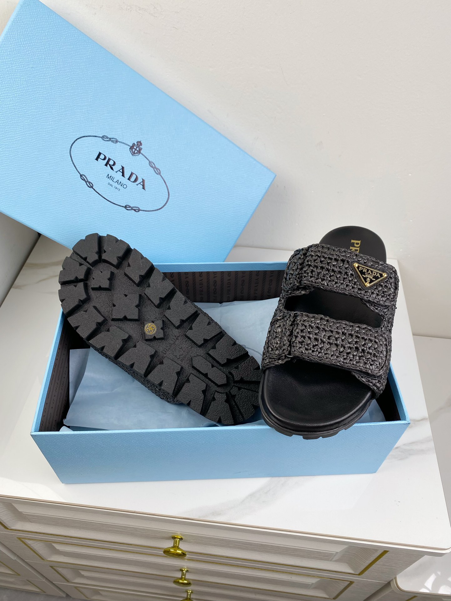 這款鞋子是AAAAA 1:1 質量(非常棒). 使用了和原版一模一樣的材料. 商標部分也保持了和普拉達/Prada一樣. 圖片拍攝是實物鞋子拍攝, 您所收到的實物保證和我們圖片一模一樣.