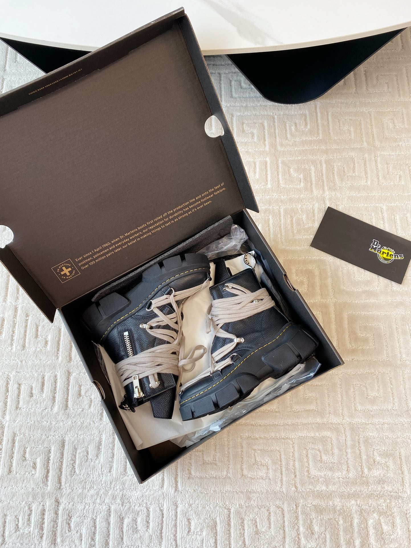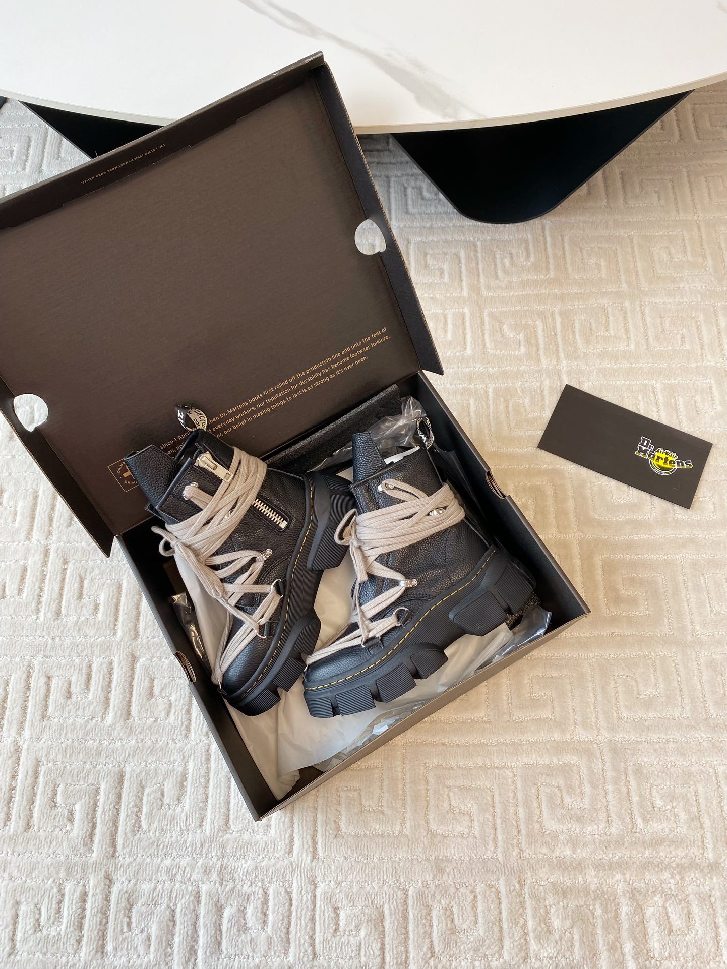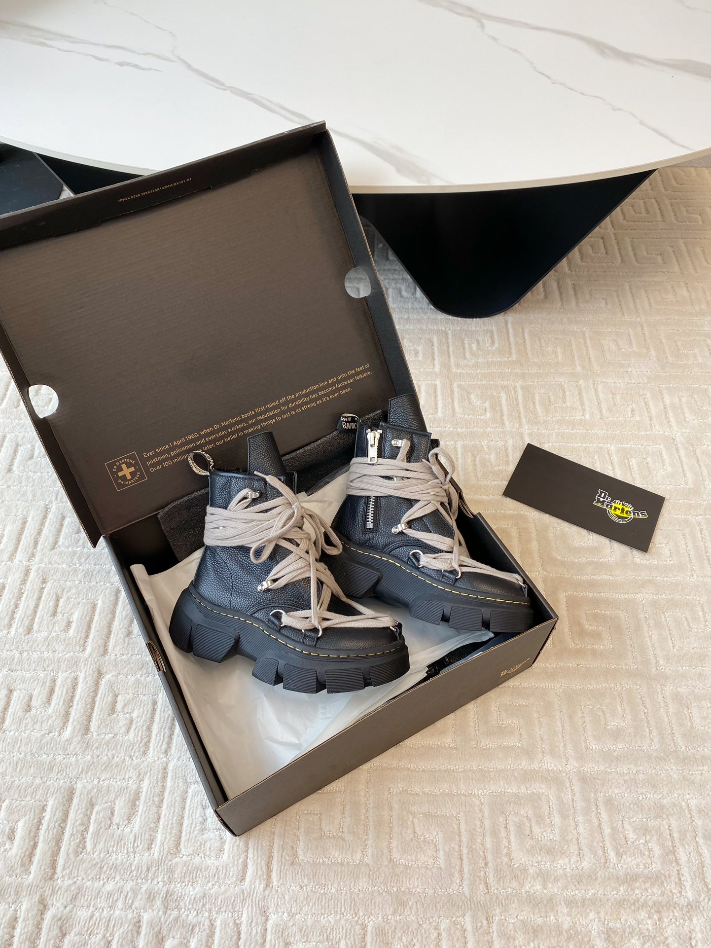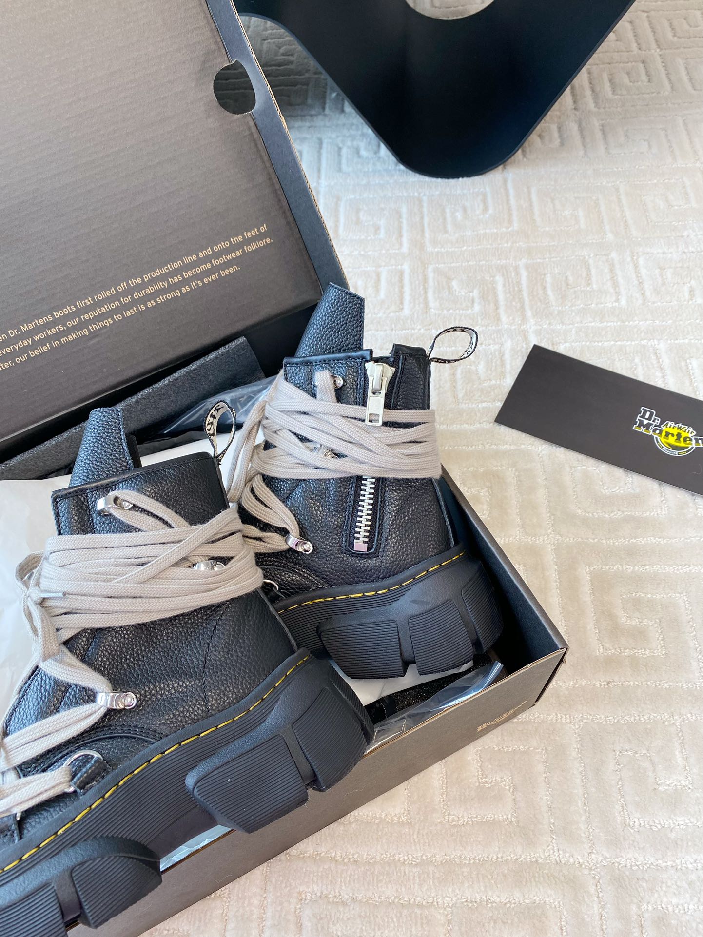 這款鞋子是AAAAA 1:1 質量(非常棒). 使用了和原版一模一樣的材料. 商標部分也保持了和Dr.martens一樣. 圖片拍攝是實物鞋子拍攝, 您所收到的實物保證和我們圖片一模一樣.