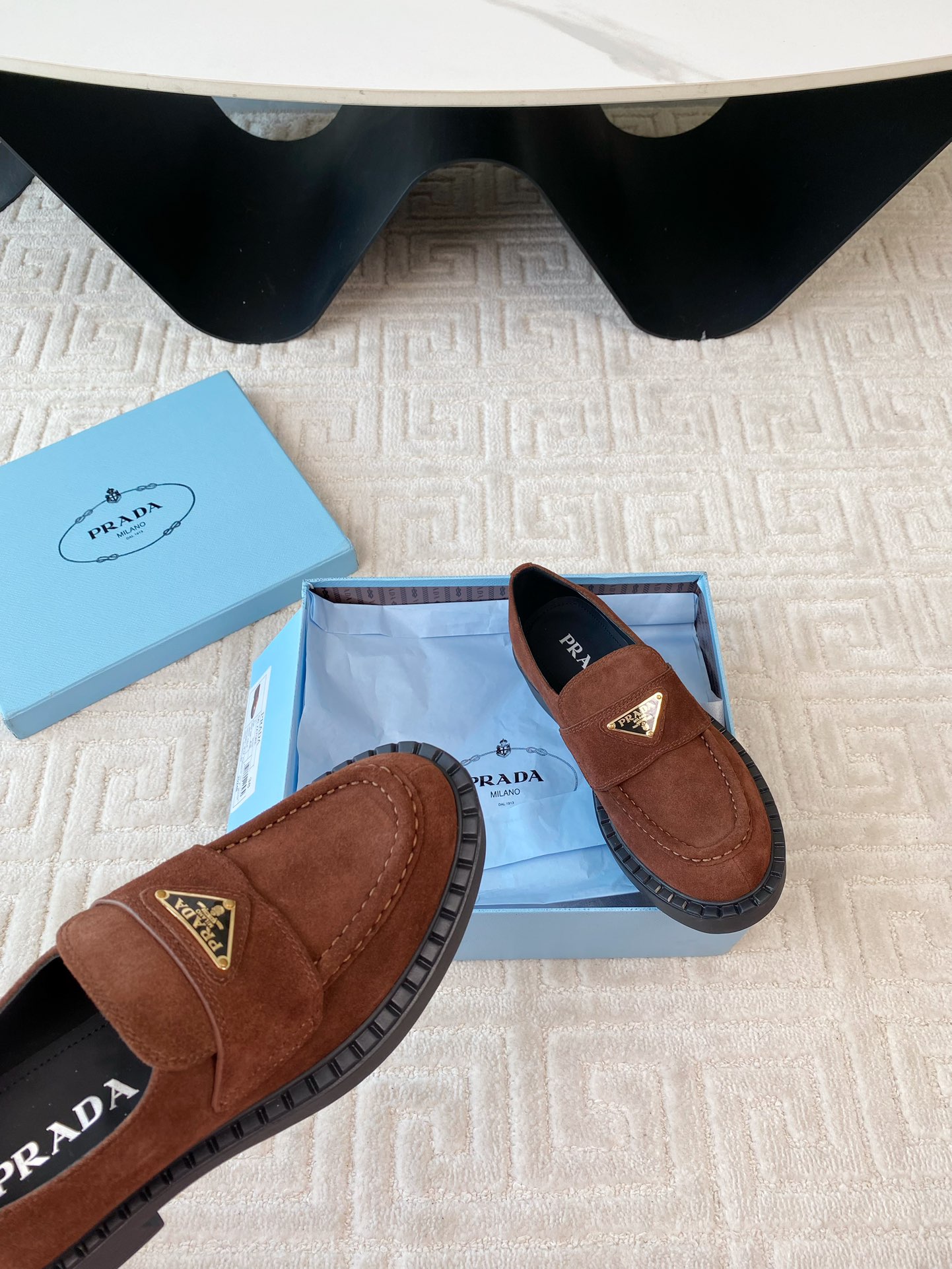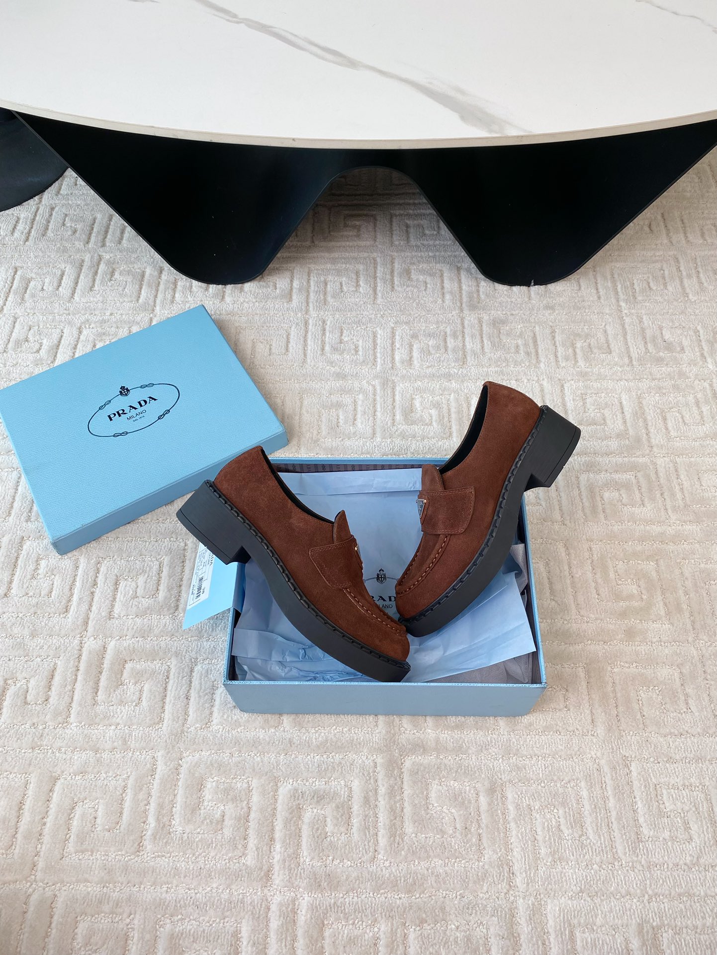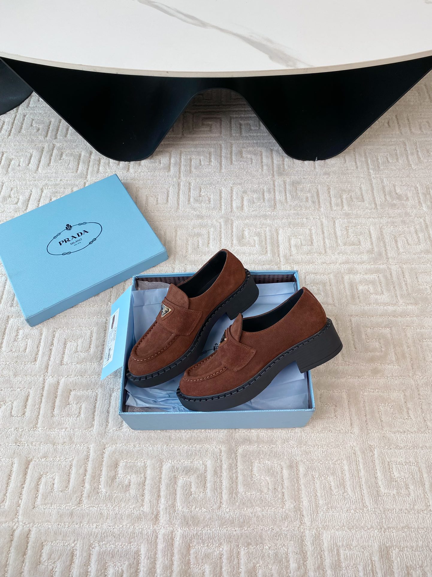 這款鞋子是AAAAA 1:1 質量(非常棒). 使用了和原版一模一樣的材料. 商標部分也保持了和普拉達/Prada一樣. 圖片拍攝是實物鞋子拍攝, 您所收到的實物保證和我們圖片一模一樣.