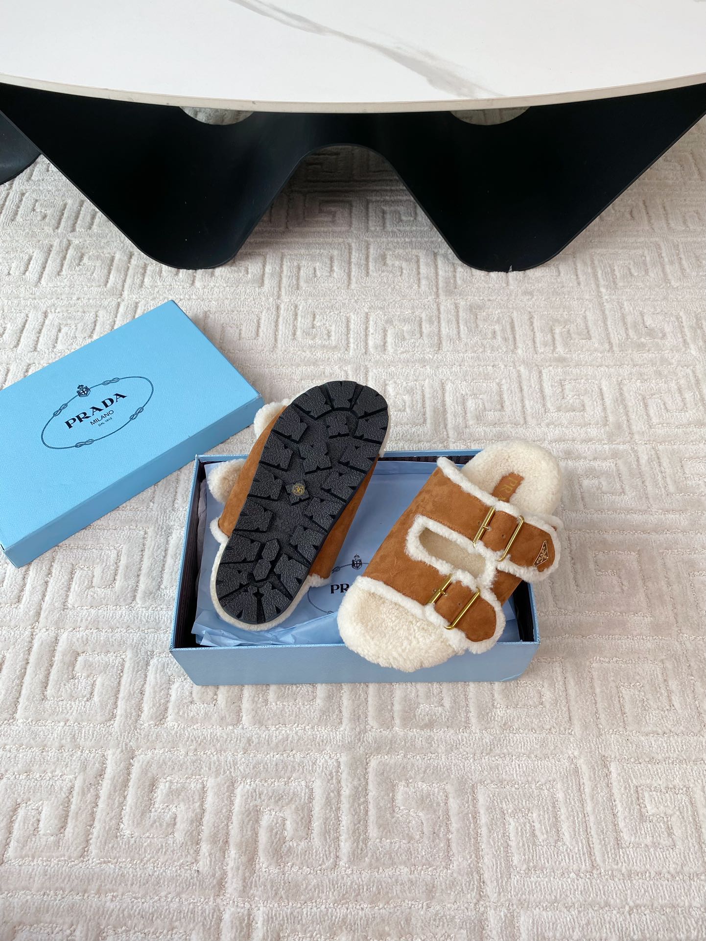 這款鞋子是AAAAA 1:1 質量(非常棒). 使用了和原版一模一樣的材料. 商標部分也保持了和普拉達/Prada一樣. 圖片拍攝是實物鞋子拍攝, 您所收到的實物保證和我們圖片一模一樣.