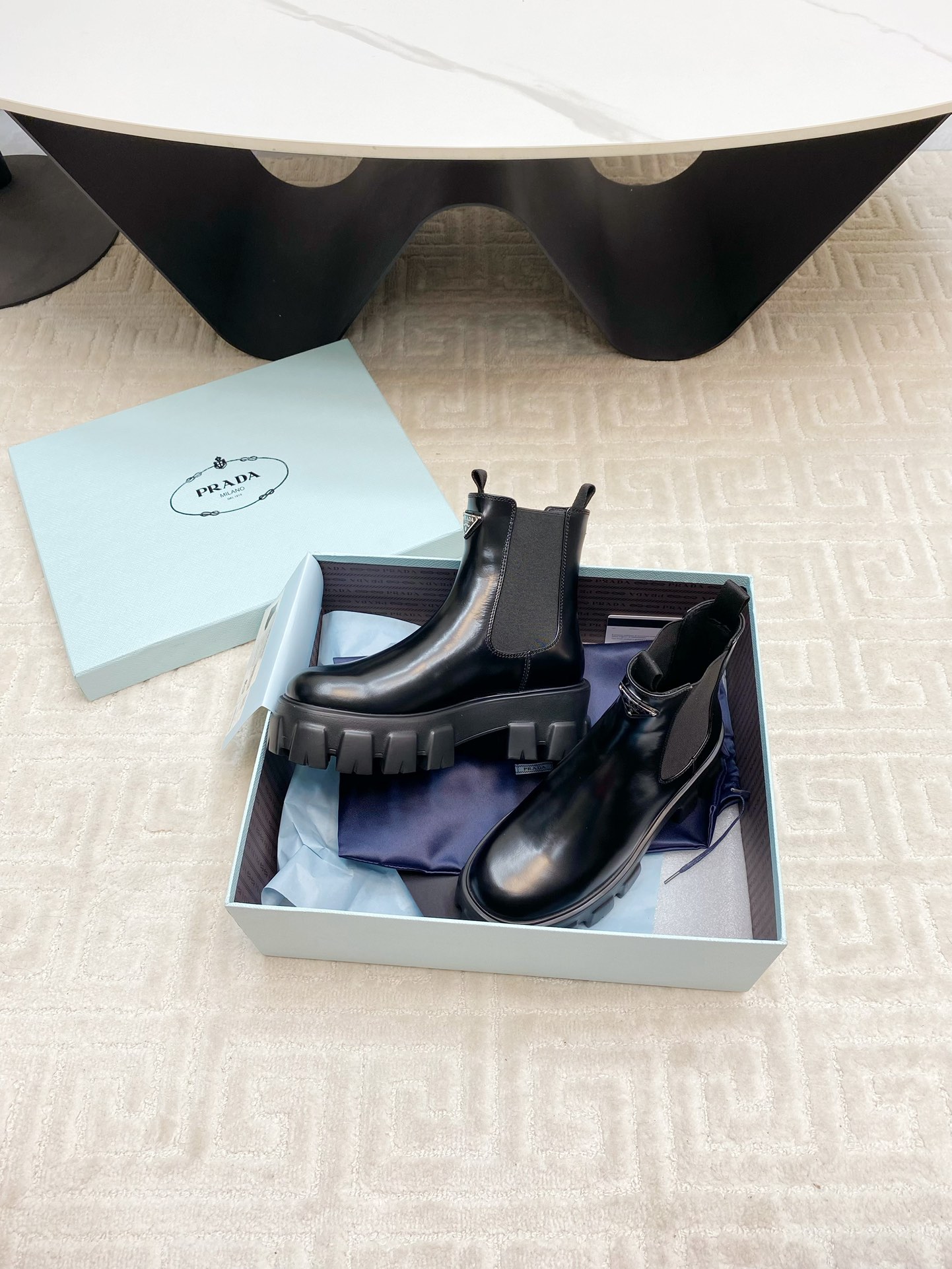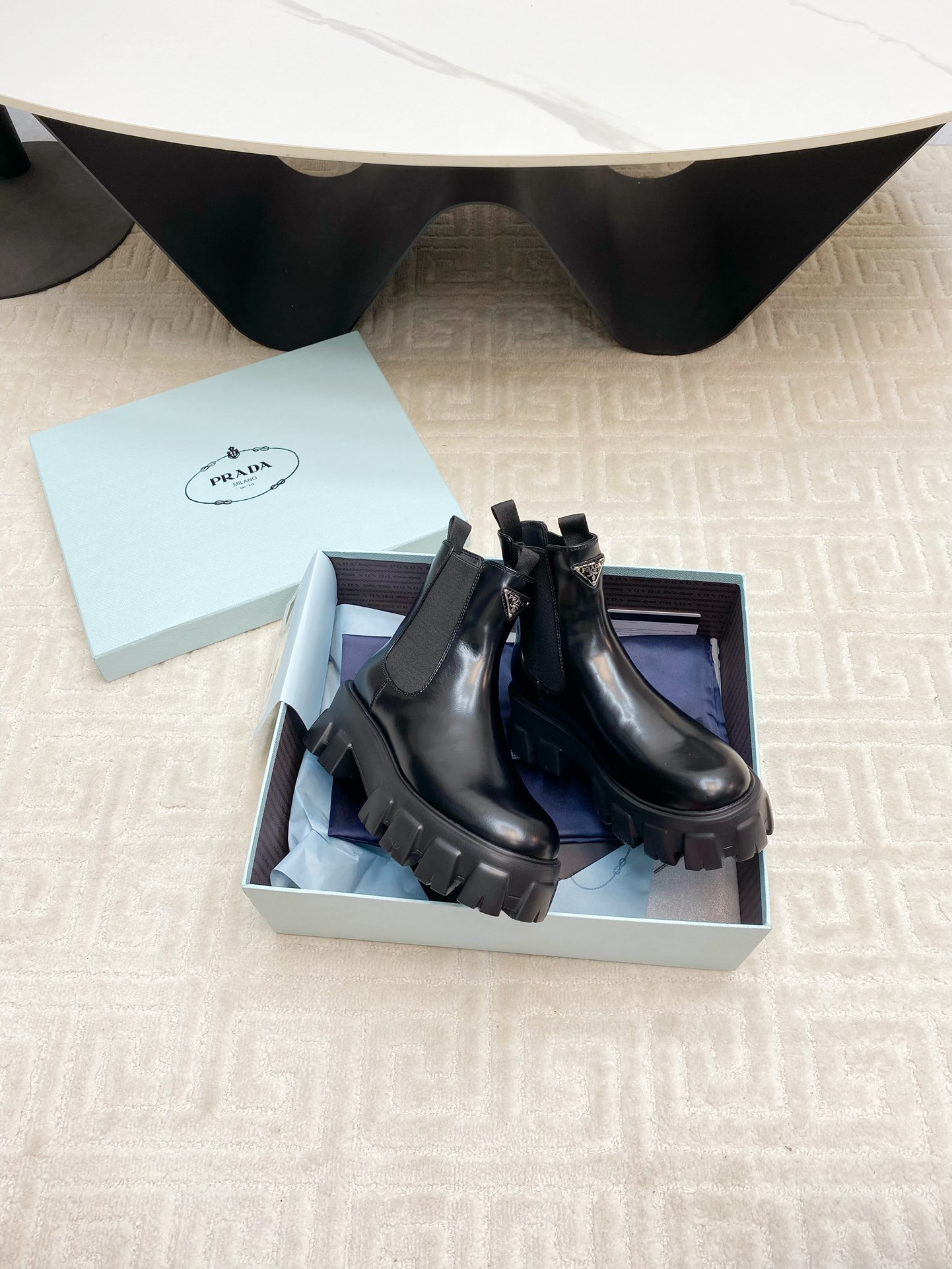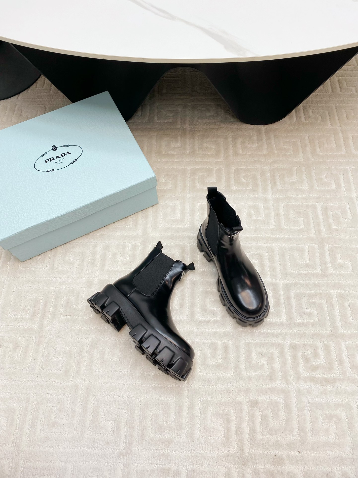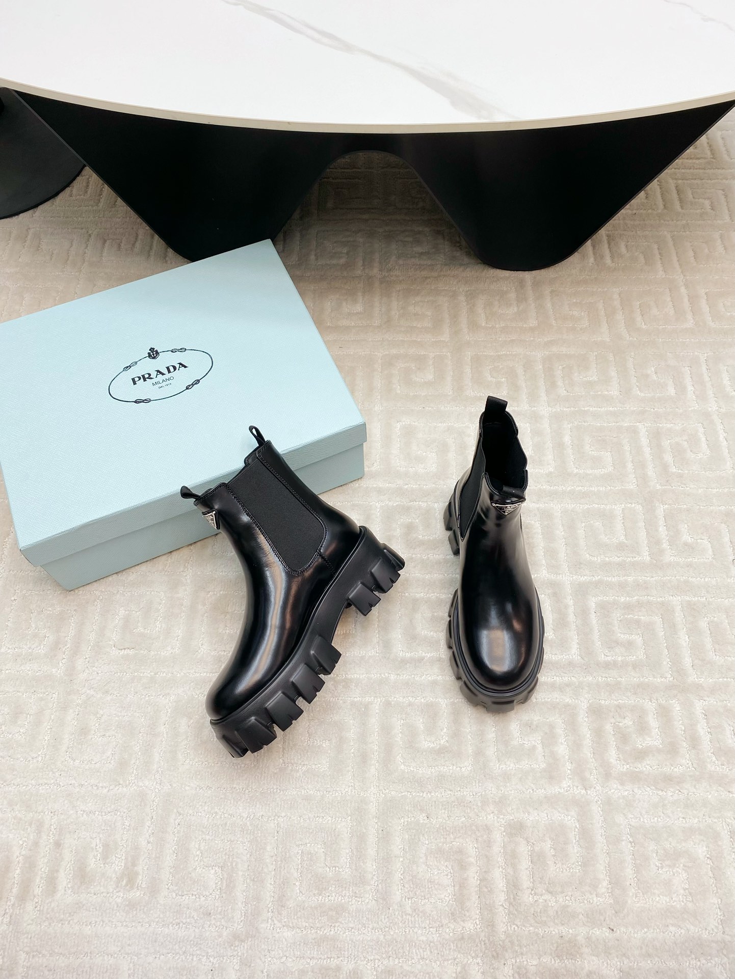 這款鞋子是AAAAA 1:1 質量(非常棒). 使用了和原版一模一樣的材料. 商標部分也保持了和普拉達/Prada一樣. 圖片拍攝是實物鞋子拍攝, 您所收到的實物保證和我們圖片一模一樣.