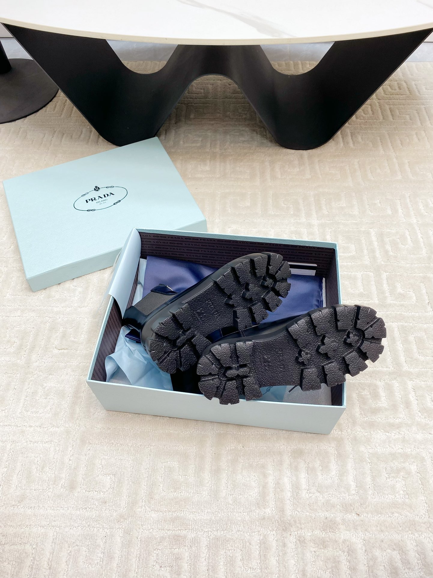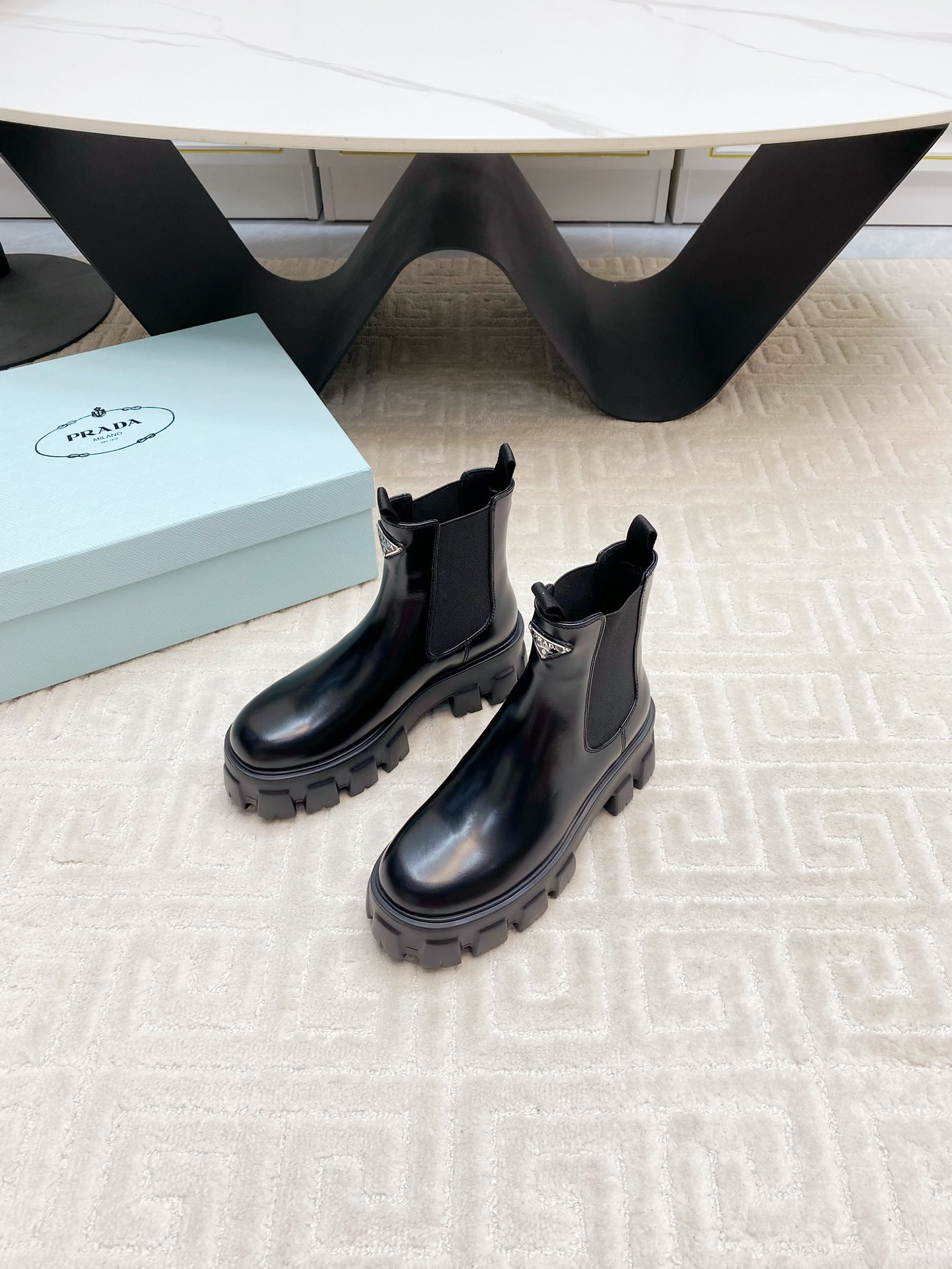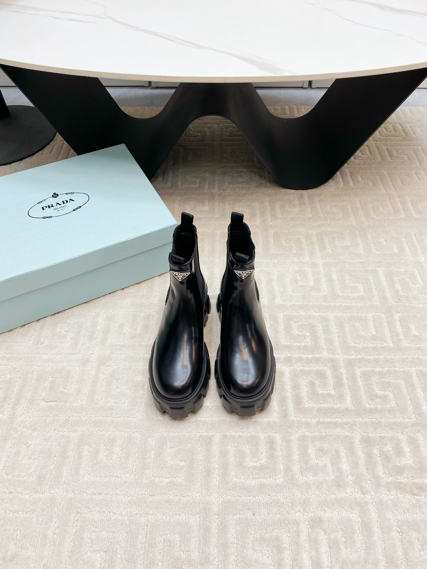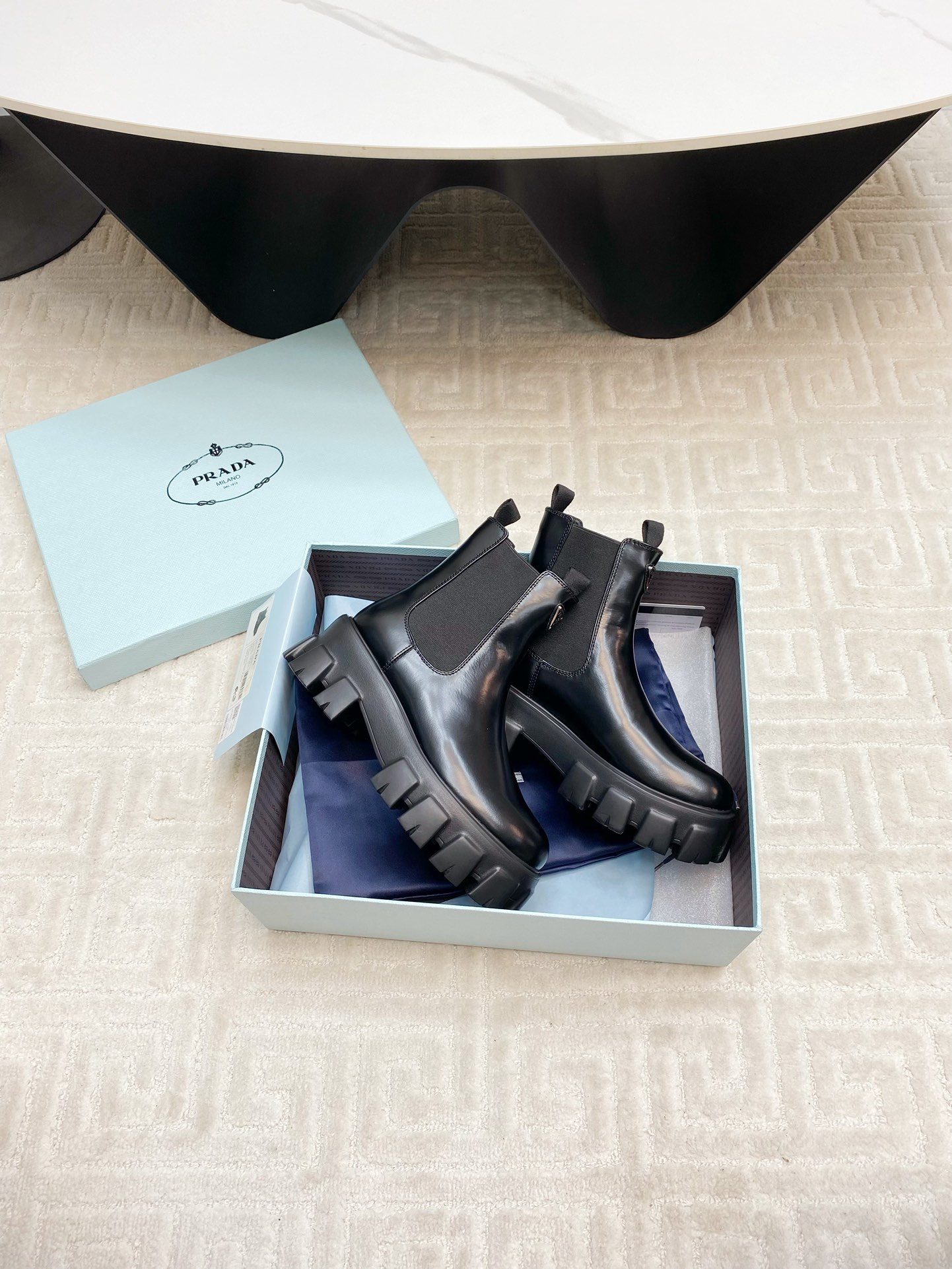 這款鞋子是AAAAA 1:1 質量(非常棒). 使用了和原版一模一樣的材料. 商標部分也保持了和普拉達/Prada一樣. 圖片拍攝是實物鞋子拍攝, 您所收到的實物保證和我們圖片一模一樣.