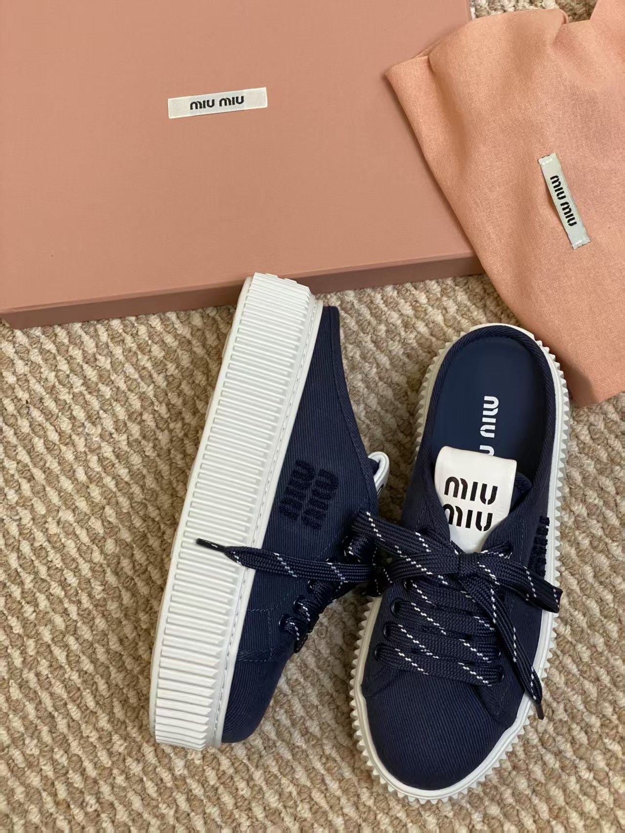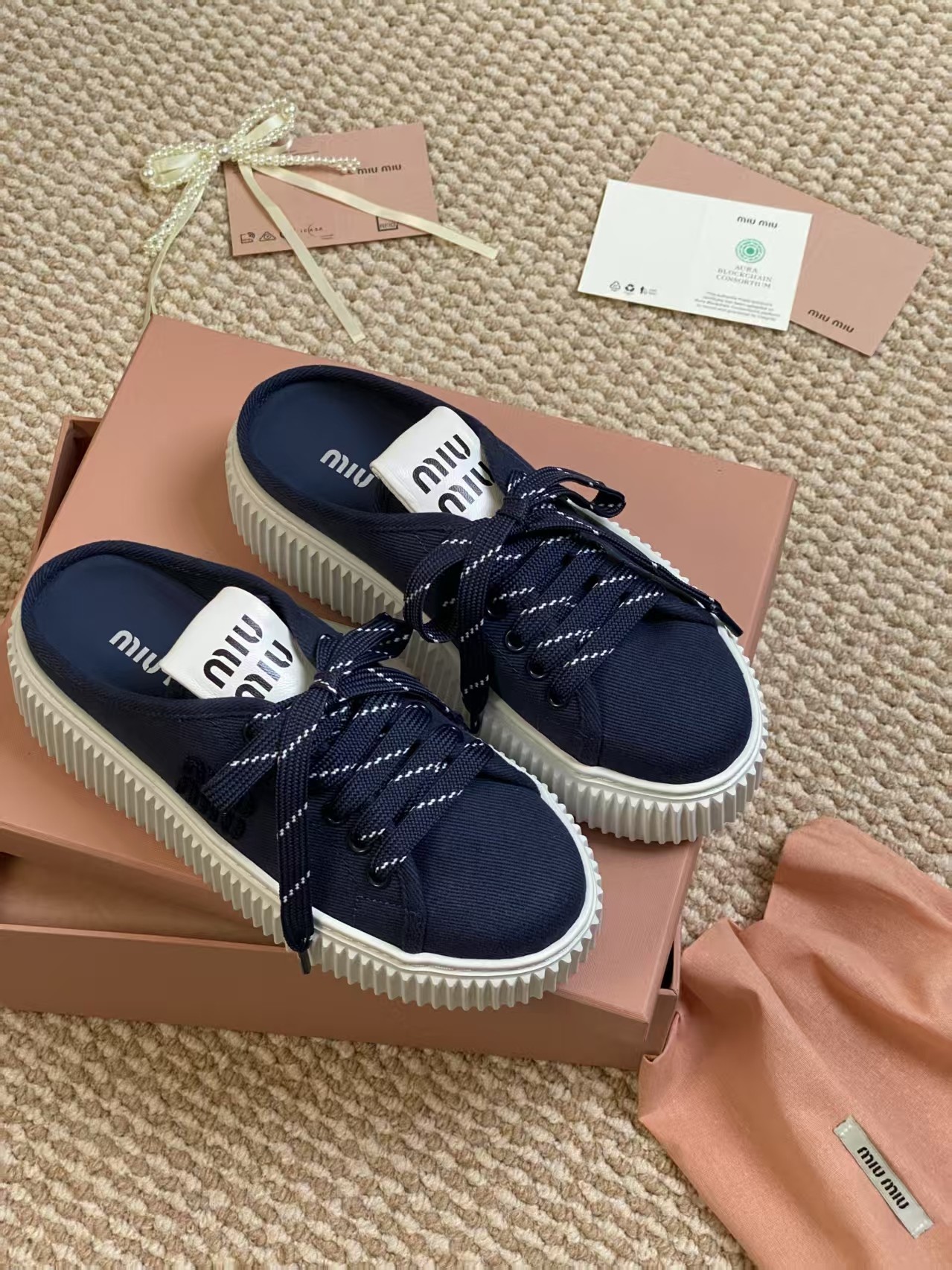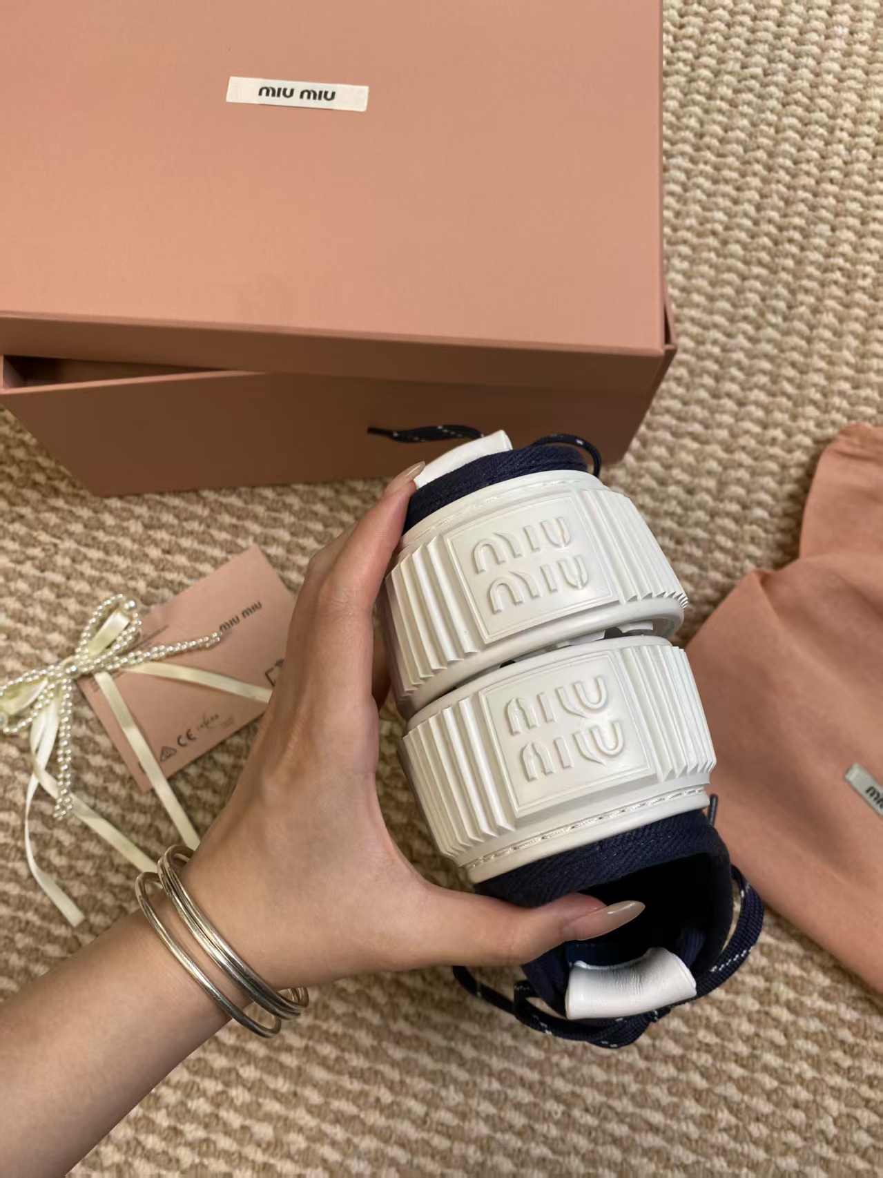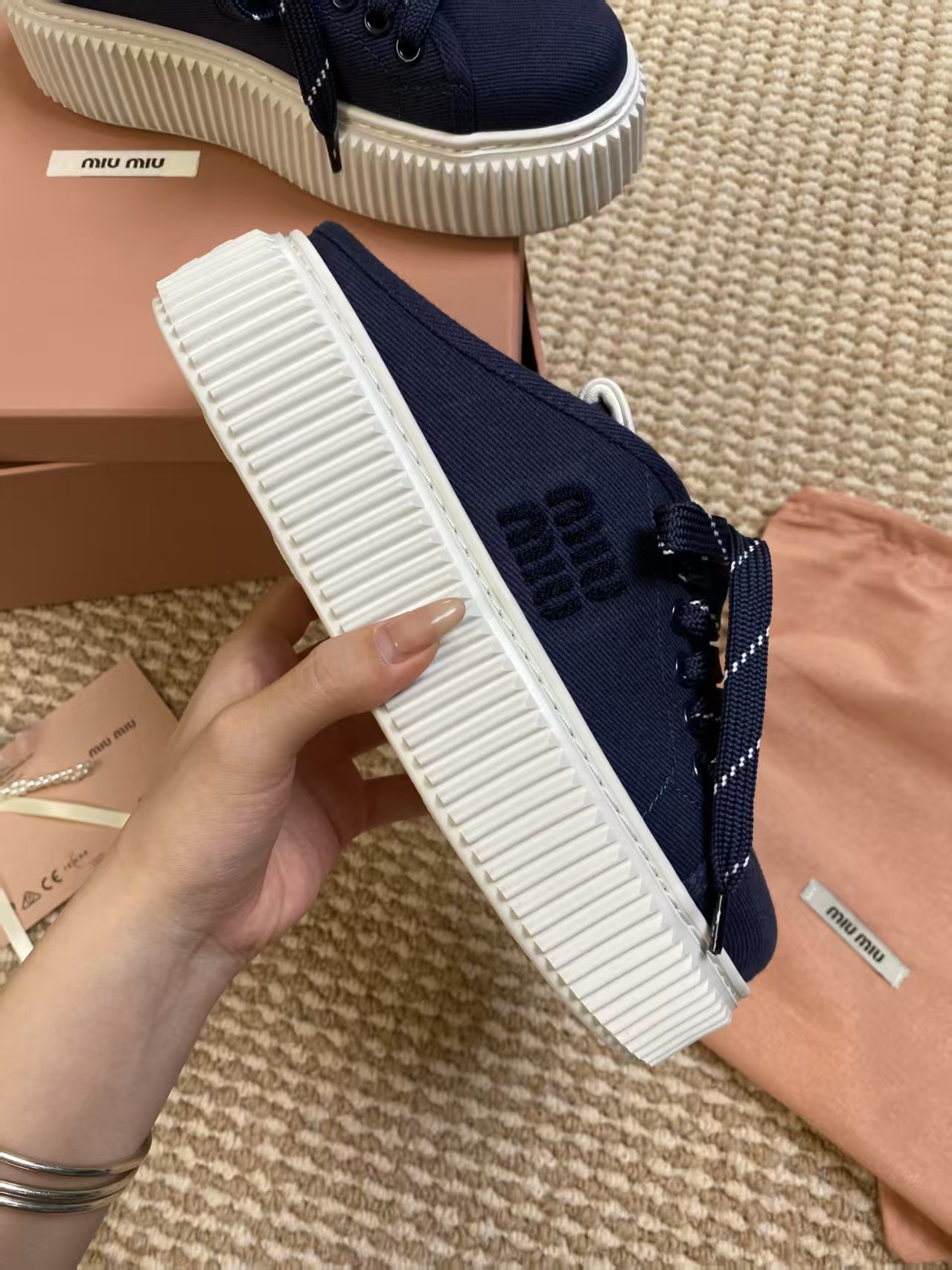 這款鞋子是AAAAA 1:1 質量(非常棒). 使用了和原版一模一樣的材料. 商標部分也保持了和繆繆/Miu Miu一樣. 圖片拍攝是實物鞋子拍攝, 您所收到的實物保證和我們圖片一模一樣.
