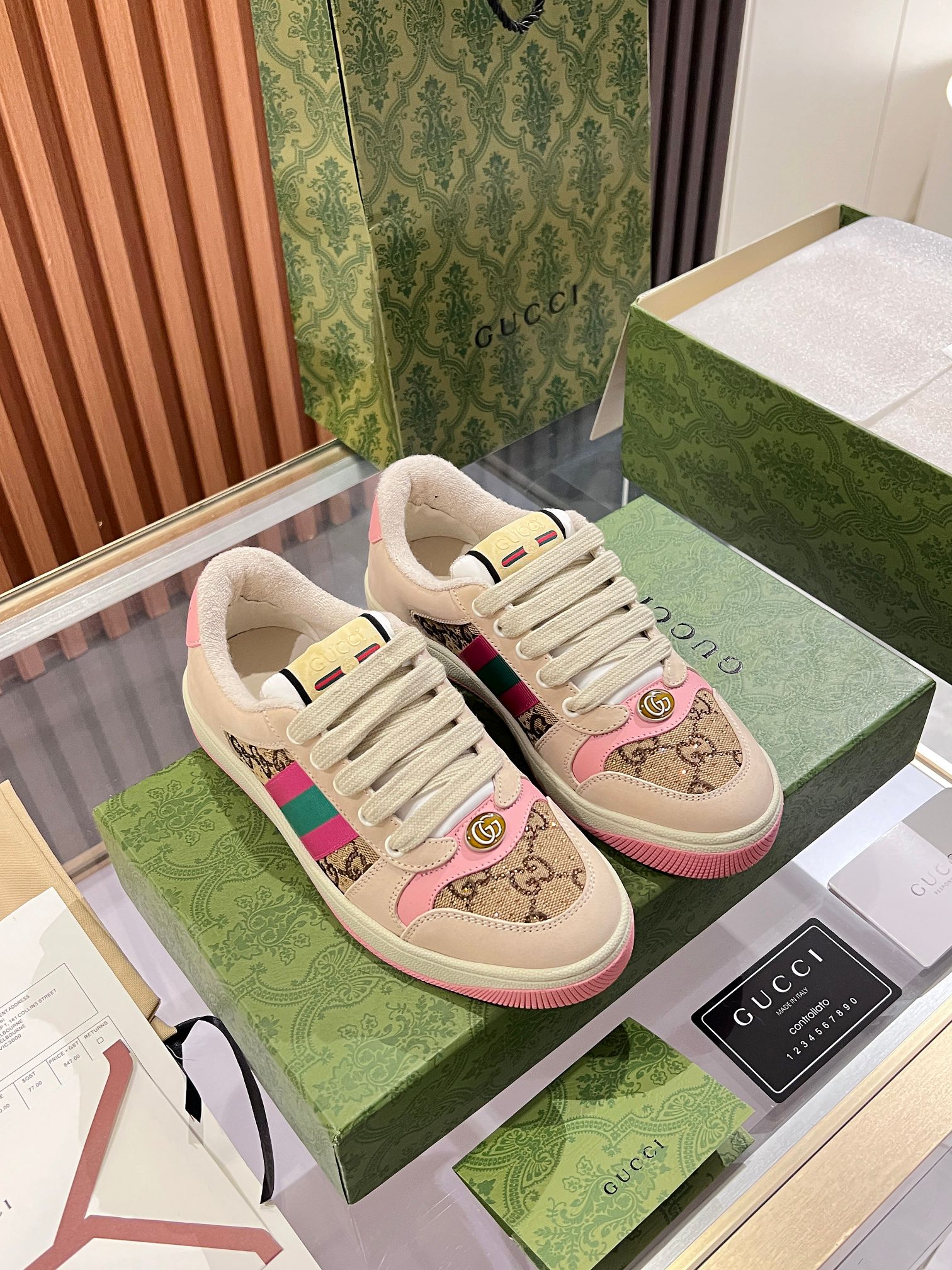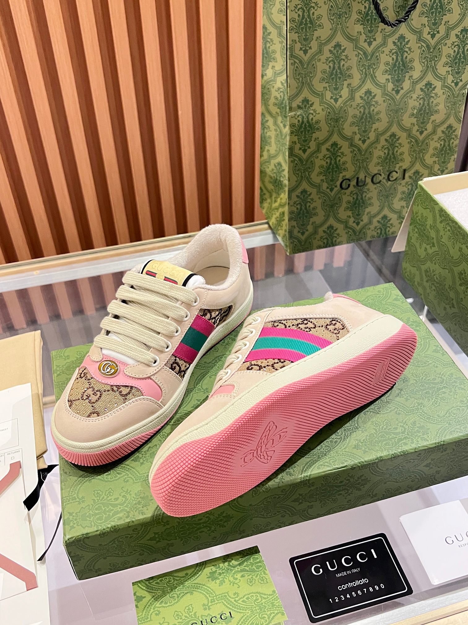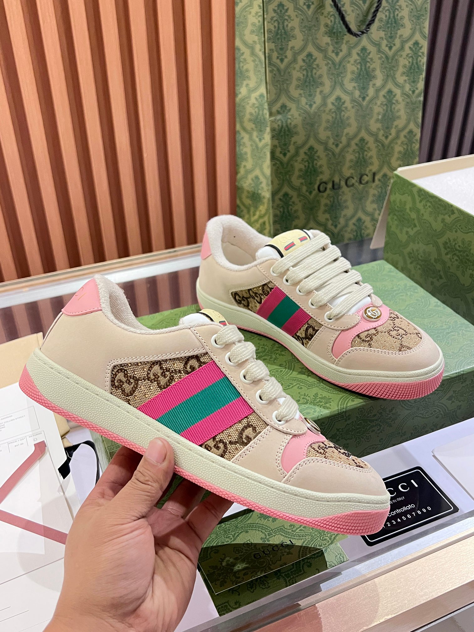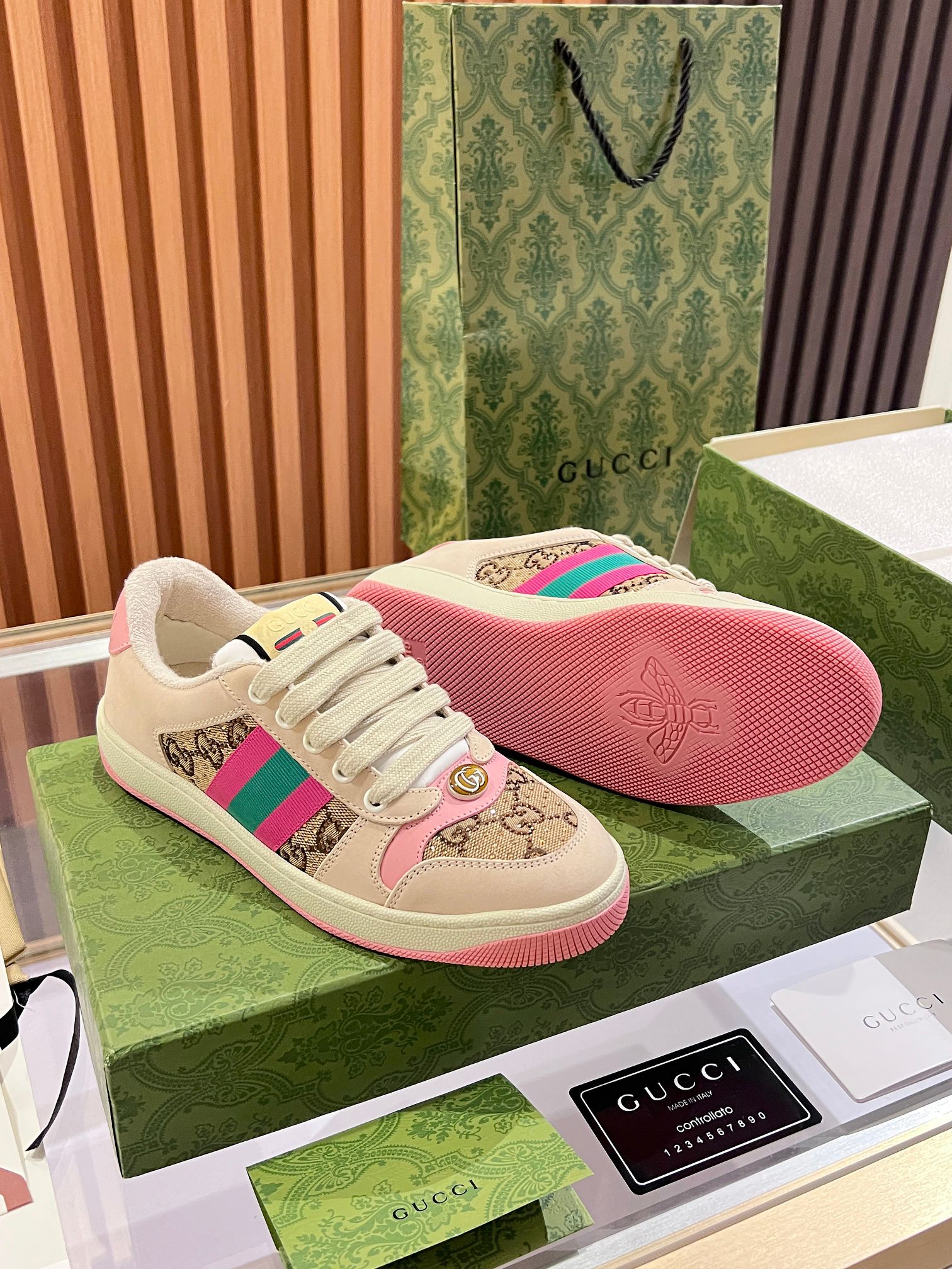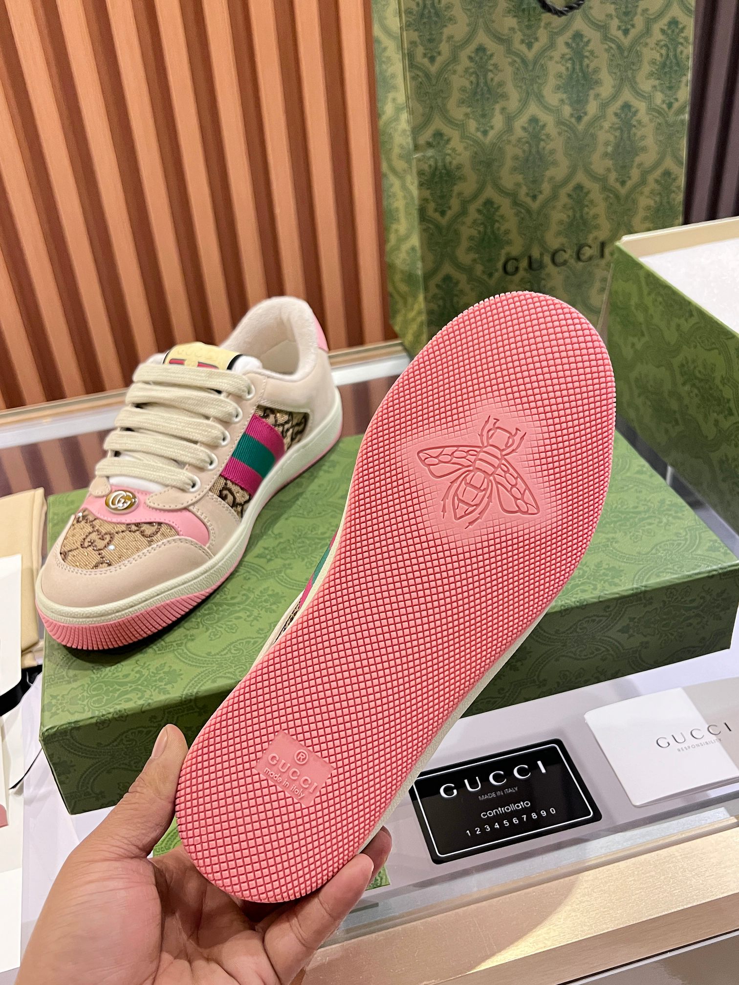 這款鞋子是AAAAA 1:1 質量(非常棒). 使用了和原版一模一樣的材料. 商標部分也保持了和古奇/Gucci一樣. 圖片拍攝是實物鞋子拍攝, 您所收到的實物保證和我們圖片一模一樣.
