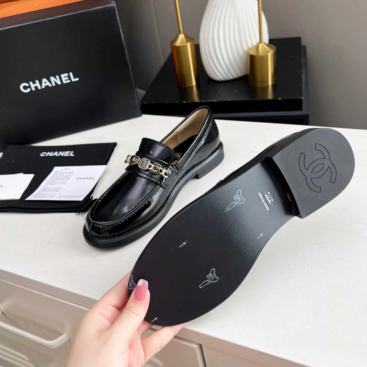 這款鞋子是AAAAA 1:1 質量(非常棒). 使用了和原版一模一樣的材料. 商標部分也保持了和香奈兒/Chanel一樣. 圖片拍攝是實物鞋子拍攝, 您所收到的實物保證和我們圖片一模一樣.