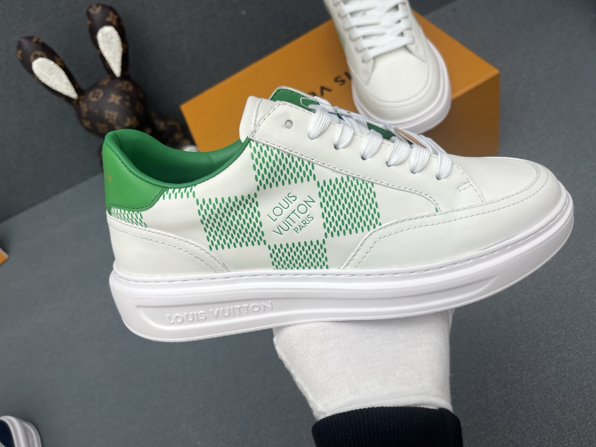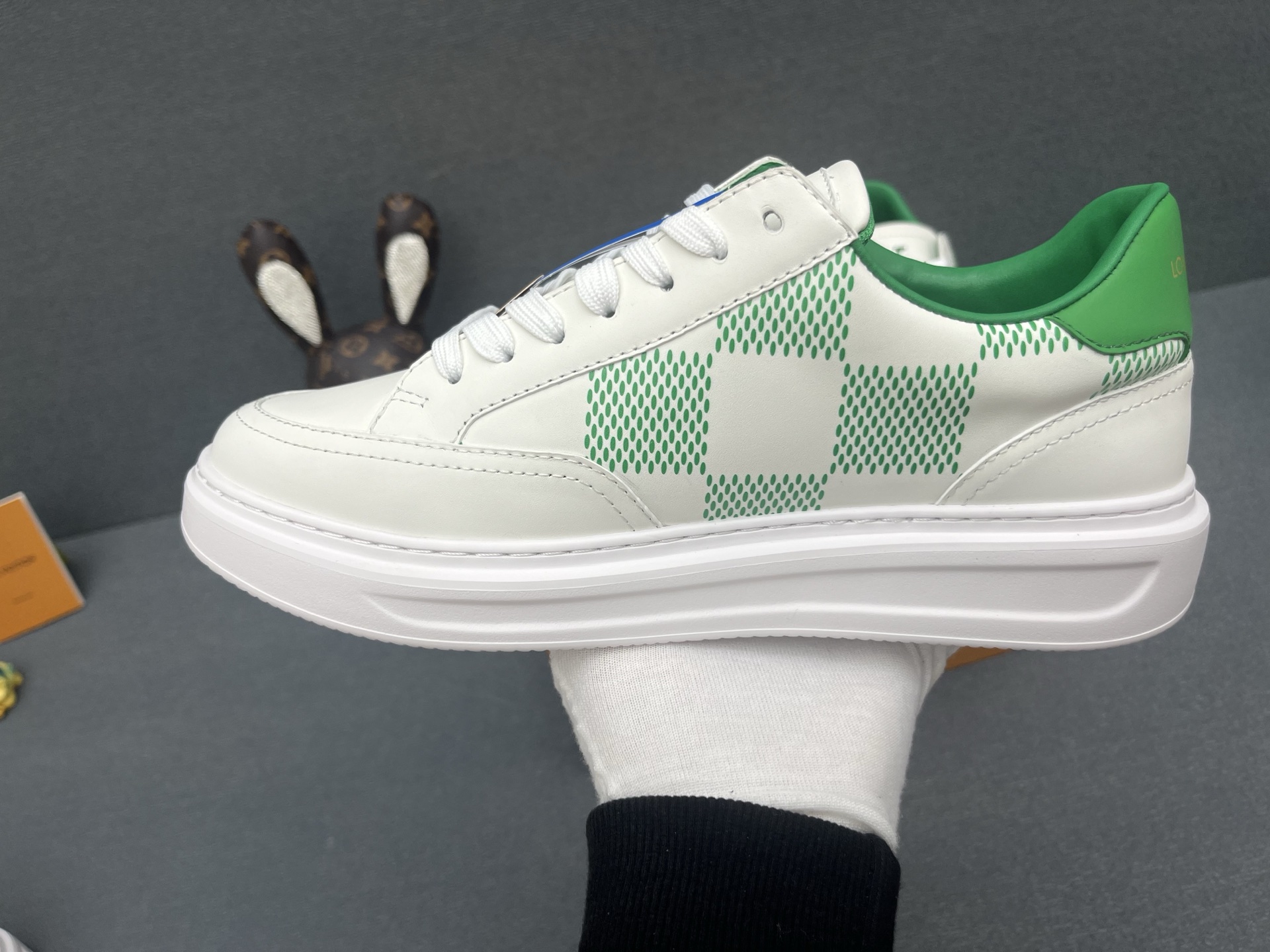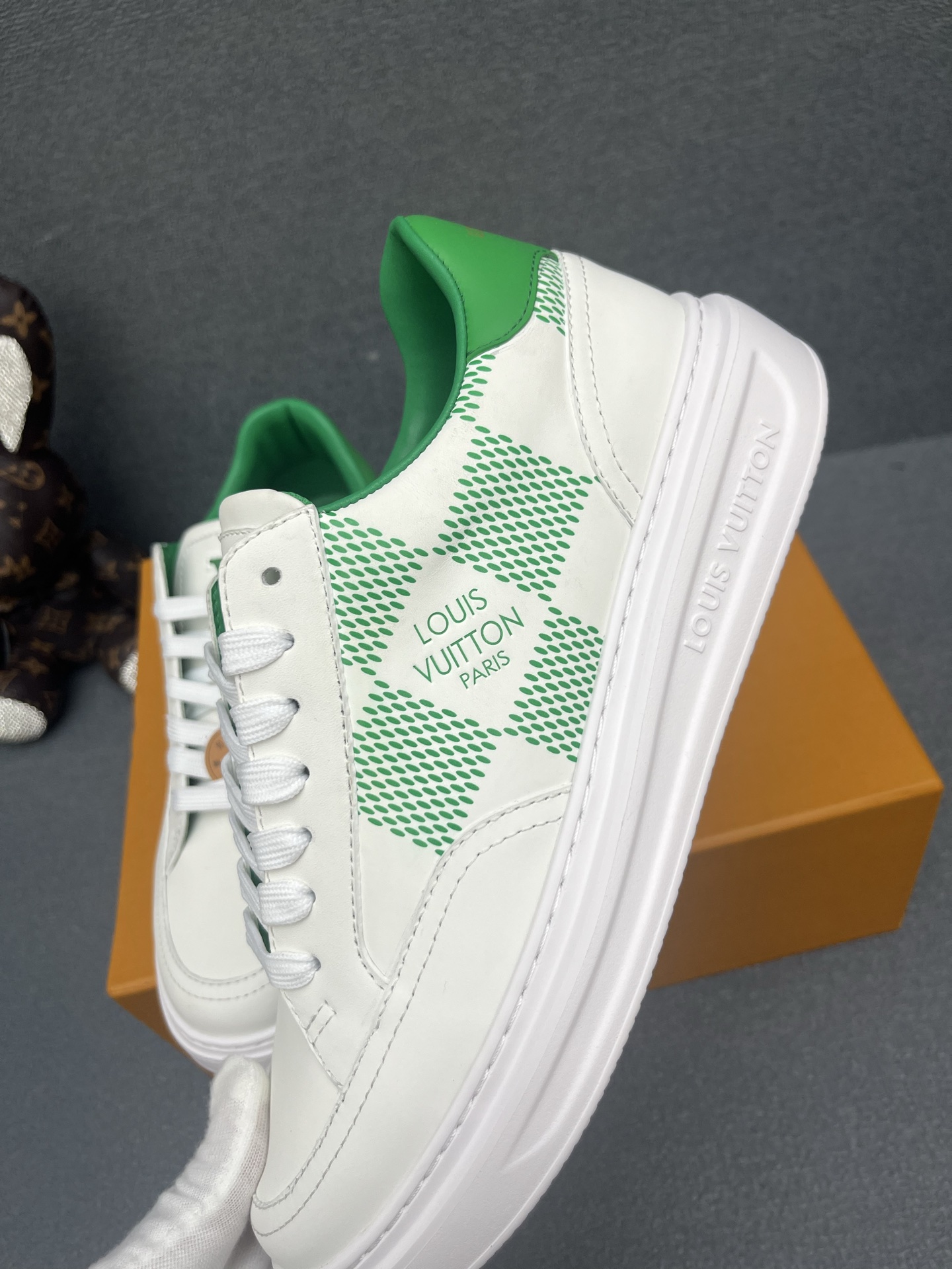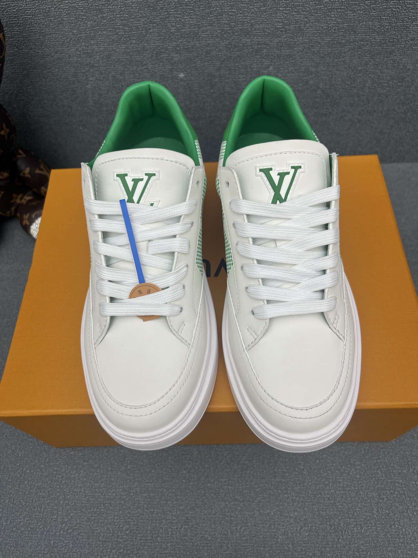 這款鞋子是AAAAA 1:1 質量(非常棒). 使用了和原版一模一樣的材料. 商標部分也保持了和路易威登/Louis Vuitton一樣. 圖片拍攝是實物鞋子拍攝, 您所收到的實物保證和我們圖片一模一樣.