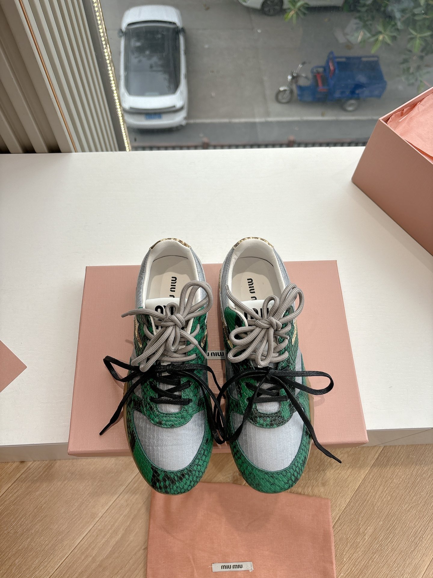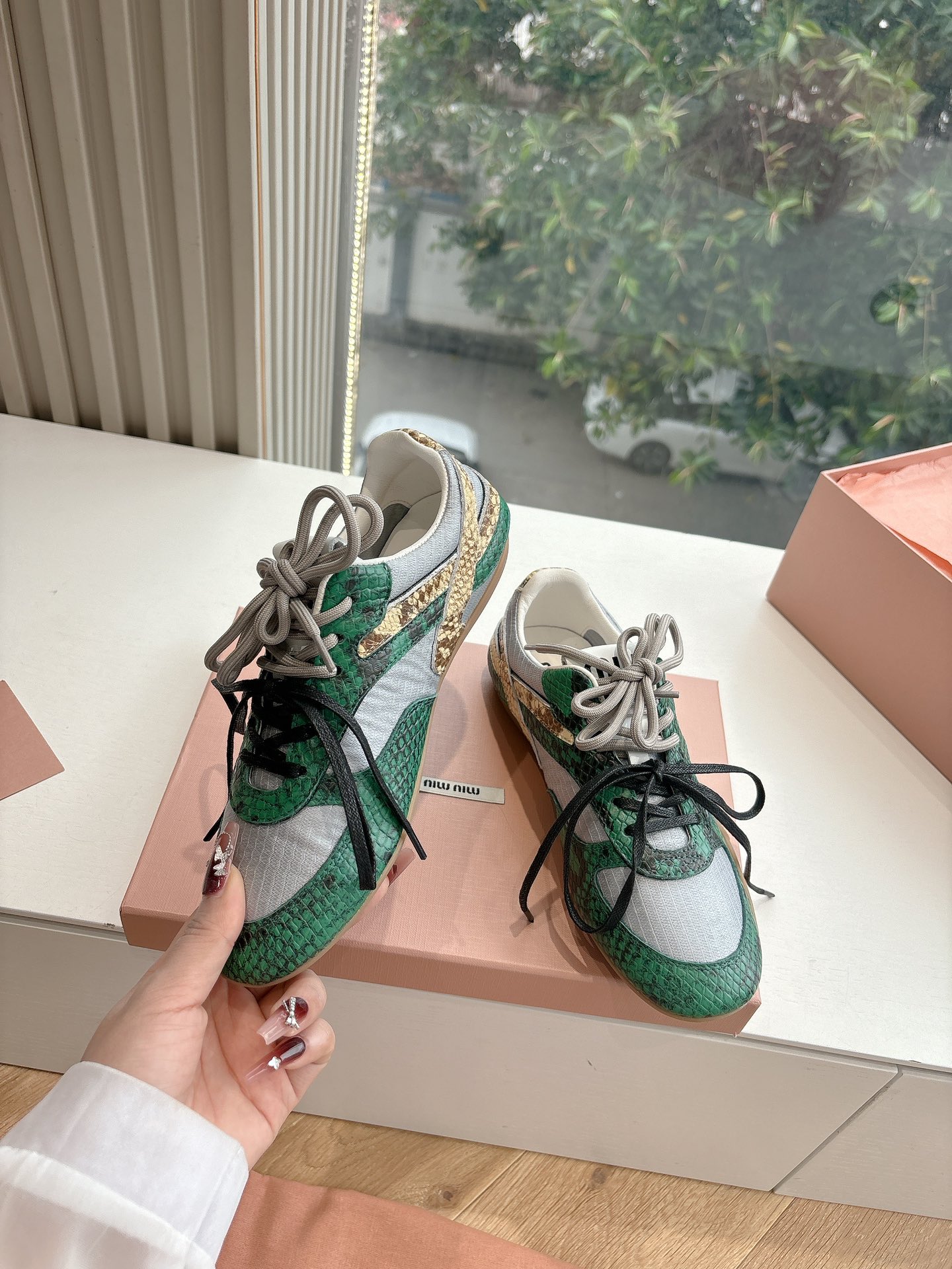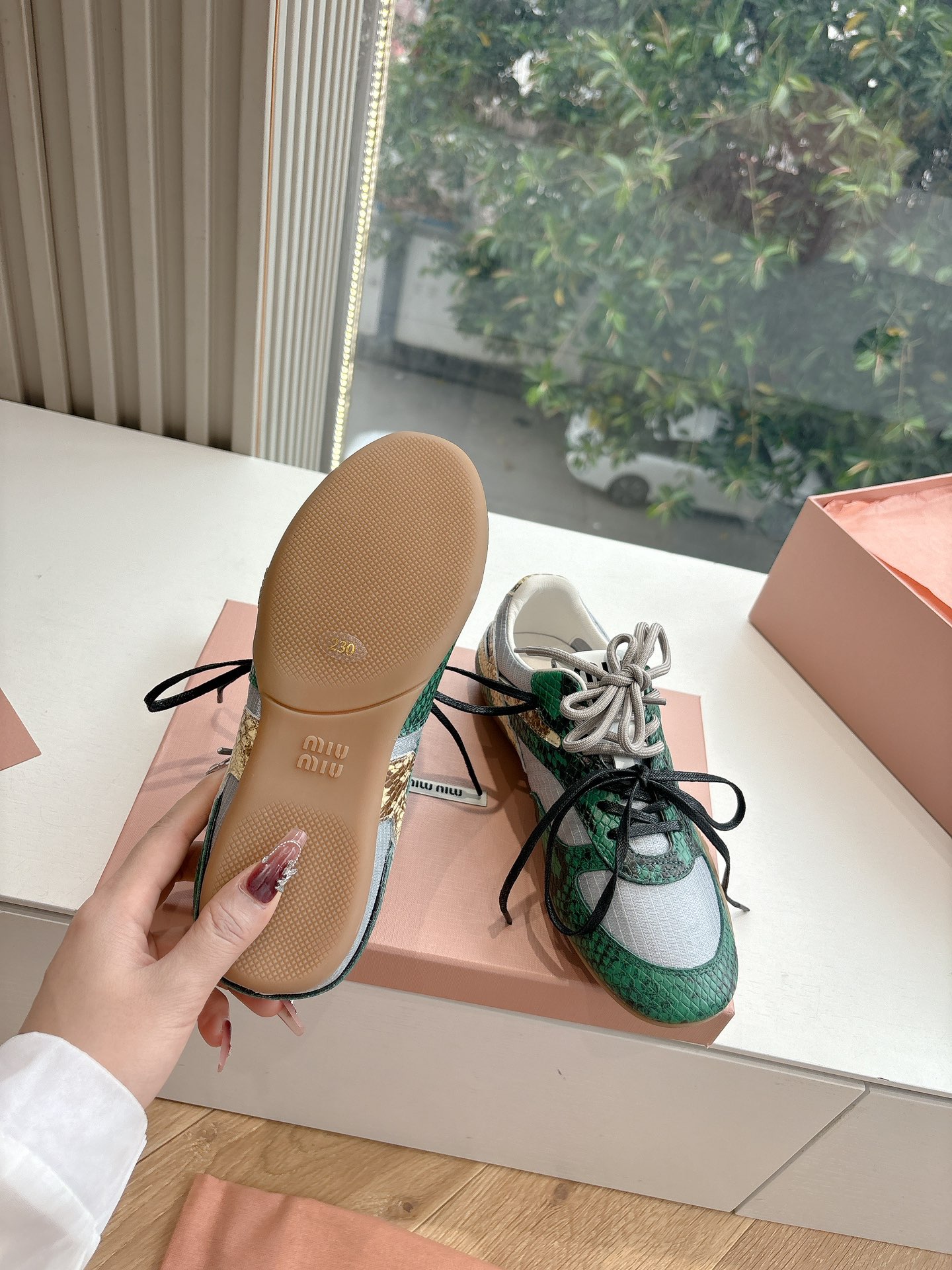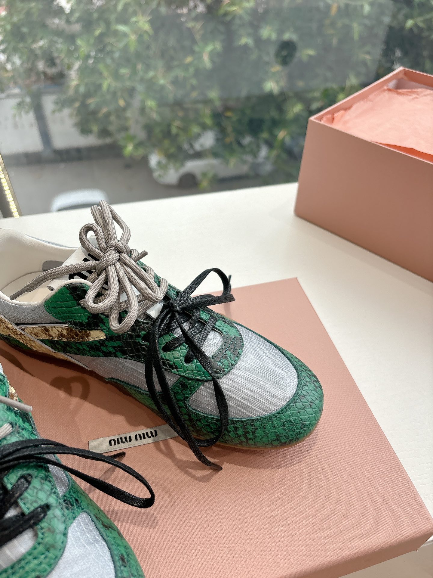 這款鞋子是AAAAA 1:1 質量(非常棒). 使用了和原版一模一樣的材料. 商標部分也保持了和繆繆/Miu Miu一樣. 圖片拍攝是實物鞋子拍攝, 您所收到的實物保證和我們圖片一模一樣.