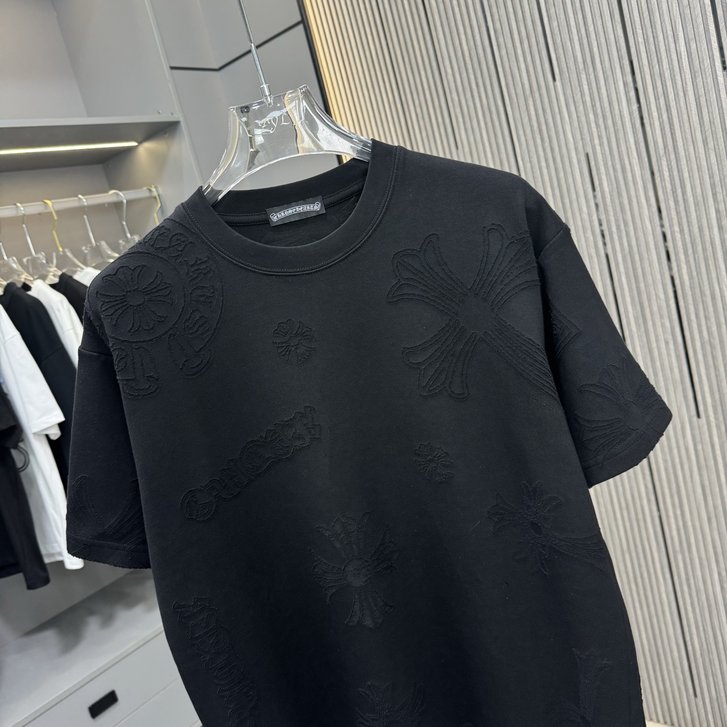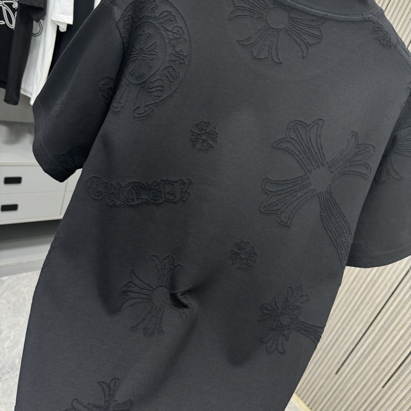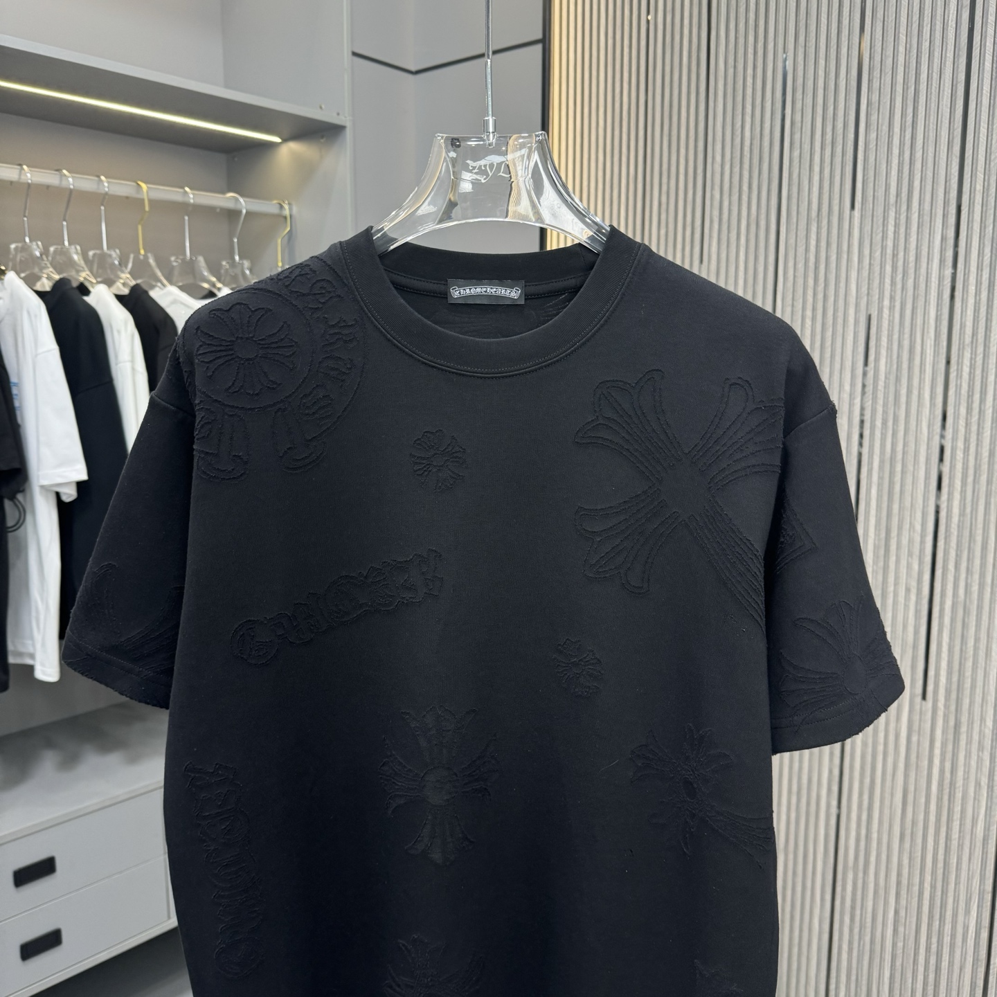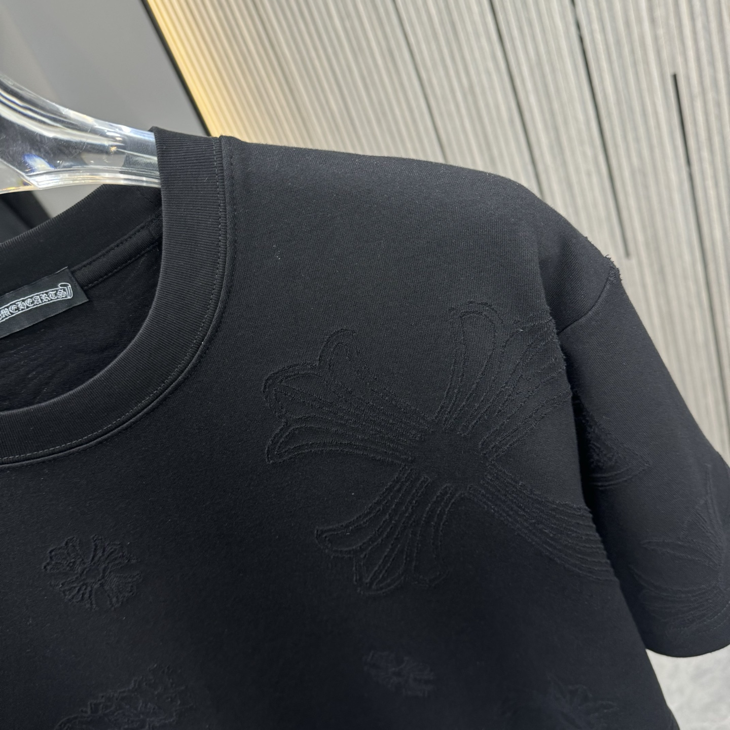這款衣服是AAAAA 1:1 質量(非常棒). 使用了和原版一模一樣的材料. 商標部分也保持了和鉻心/Chrome Hearts一樣. 圖片拍攝是實物衣服拍攝, 您所收到的實物保證和我們圖片一模一樣.