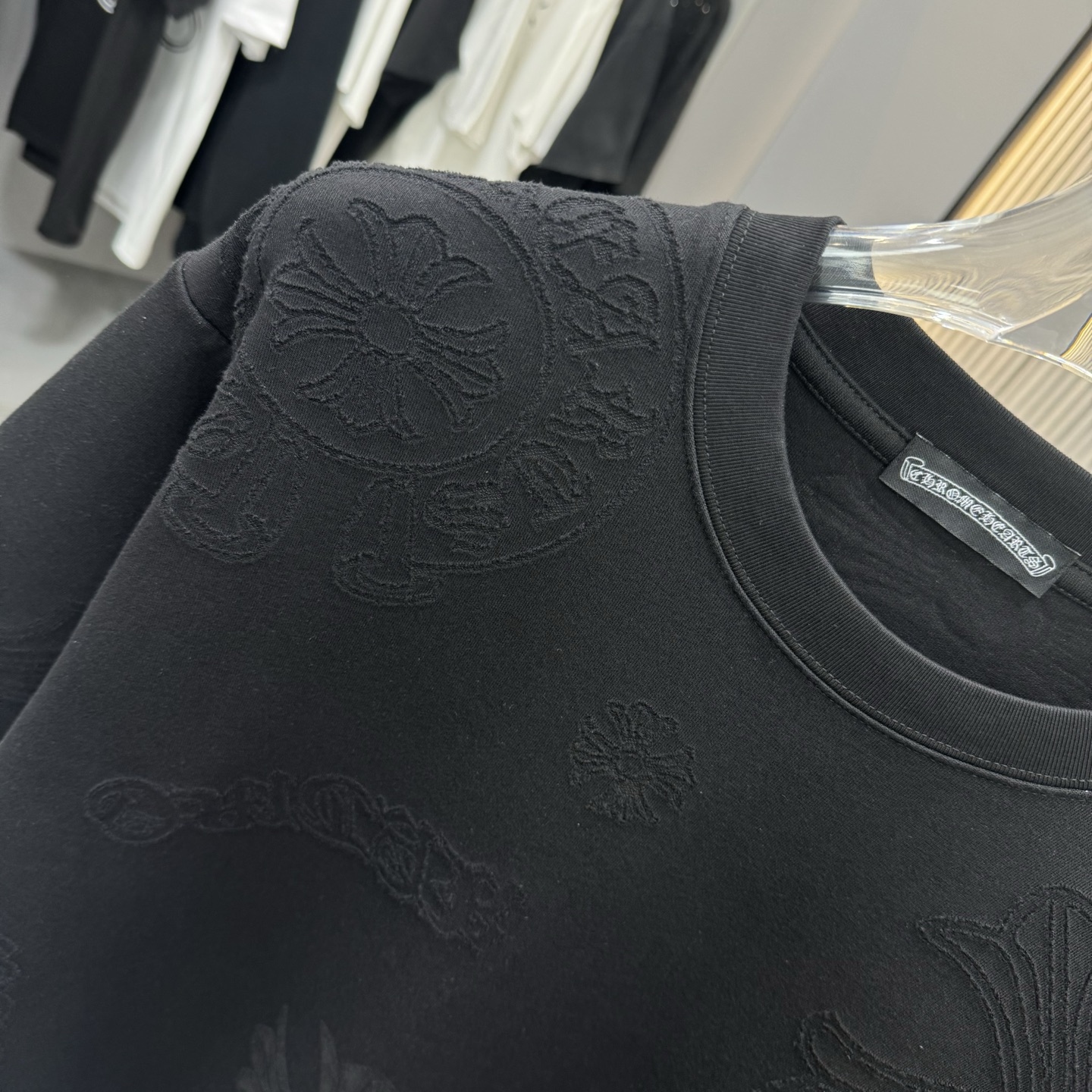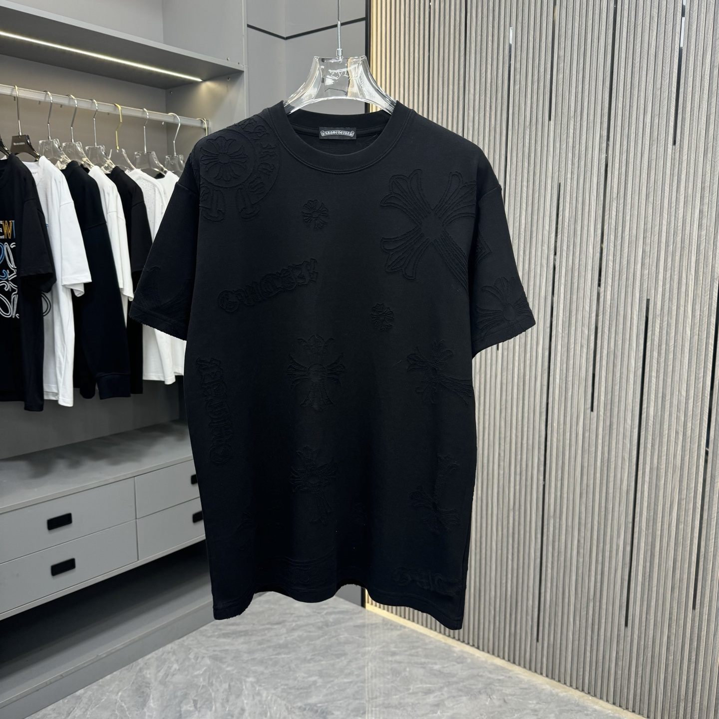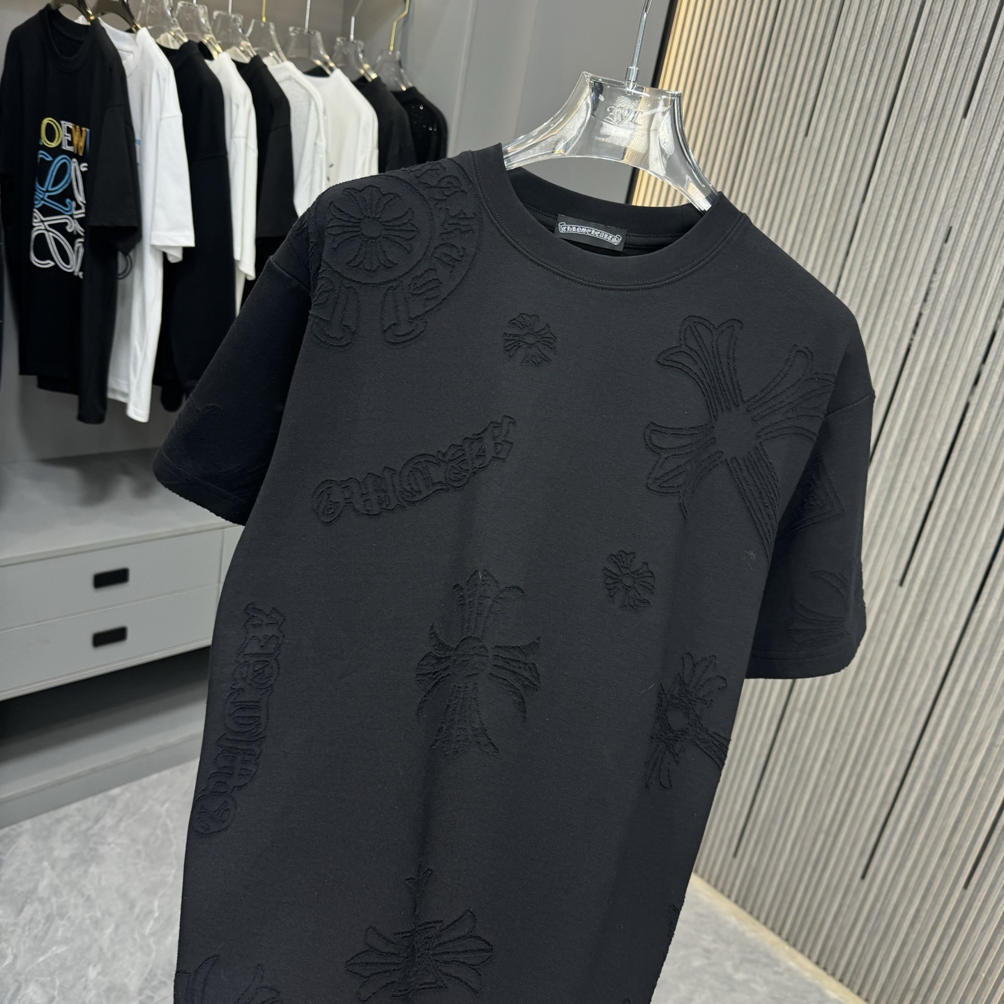 這款衣服是AAAAA 1:1 質量(非常棒). 使用了和原版一模一樣的材料. 商標部分也保持了和鉻心/Chrome Hearts一樣. 圖片拍攝是實物衣服拍攝, 您所收到的實物保證和我們圖片一模一樣.