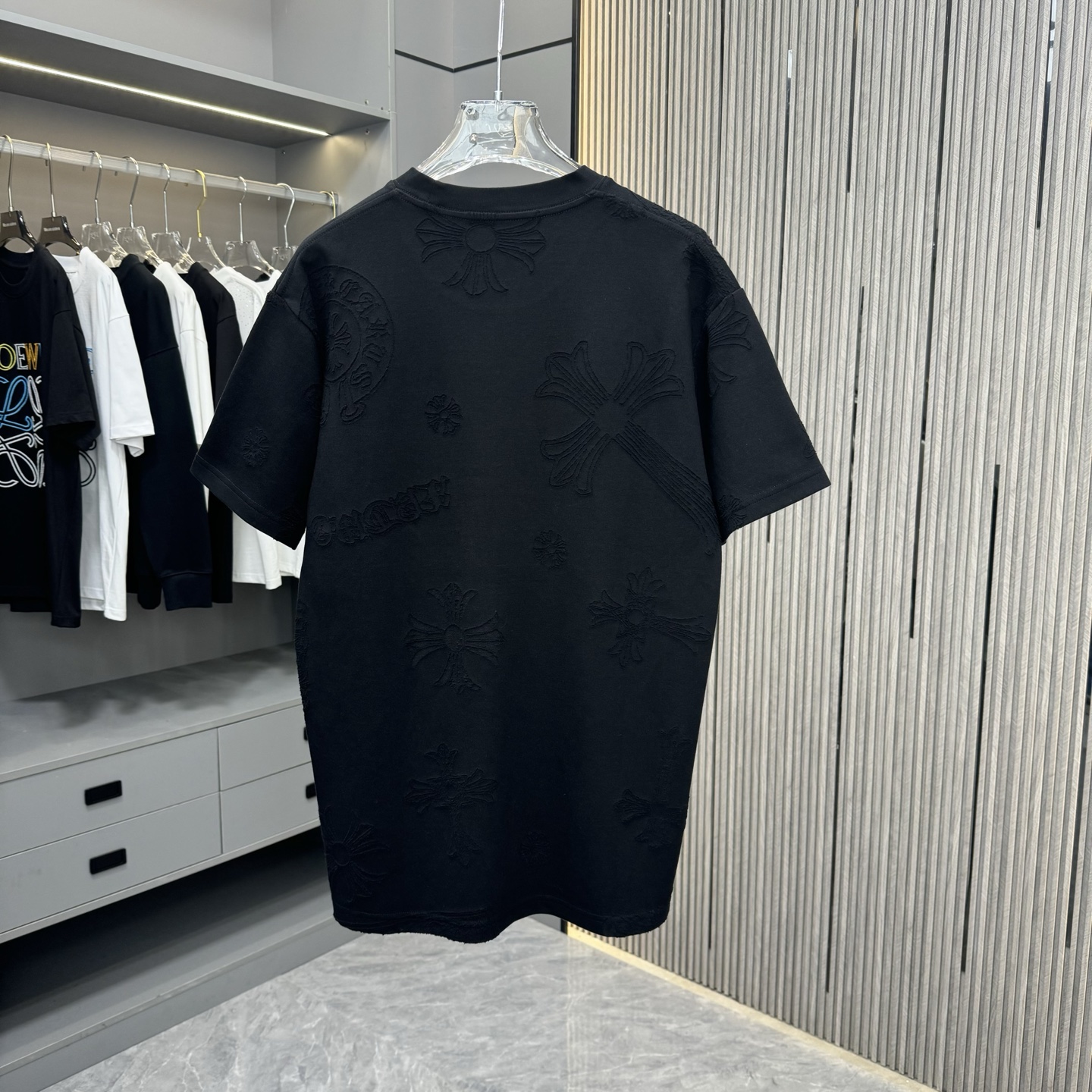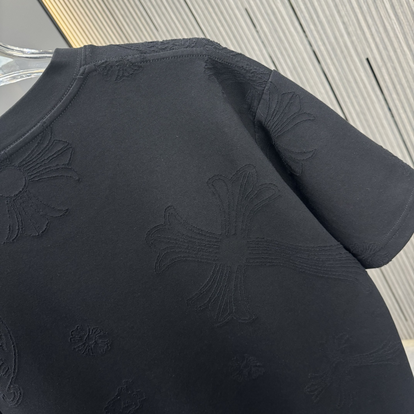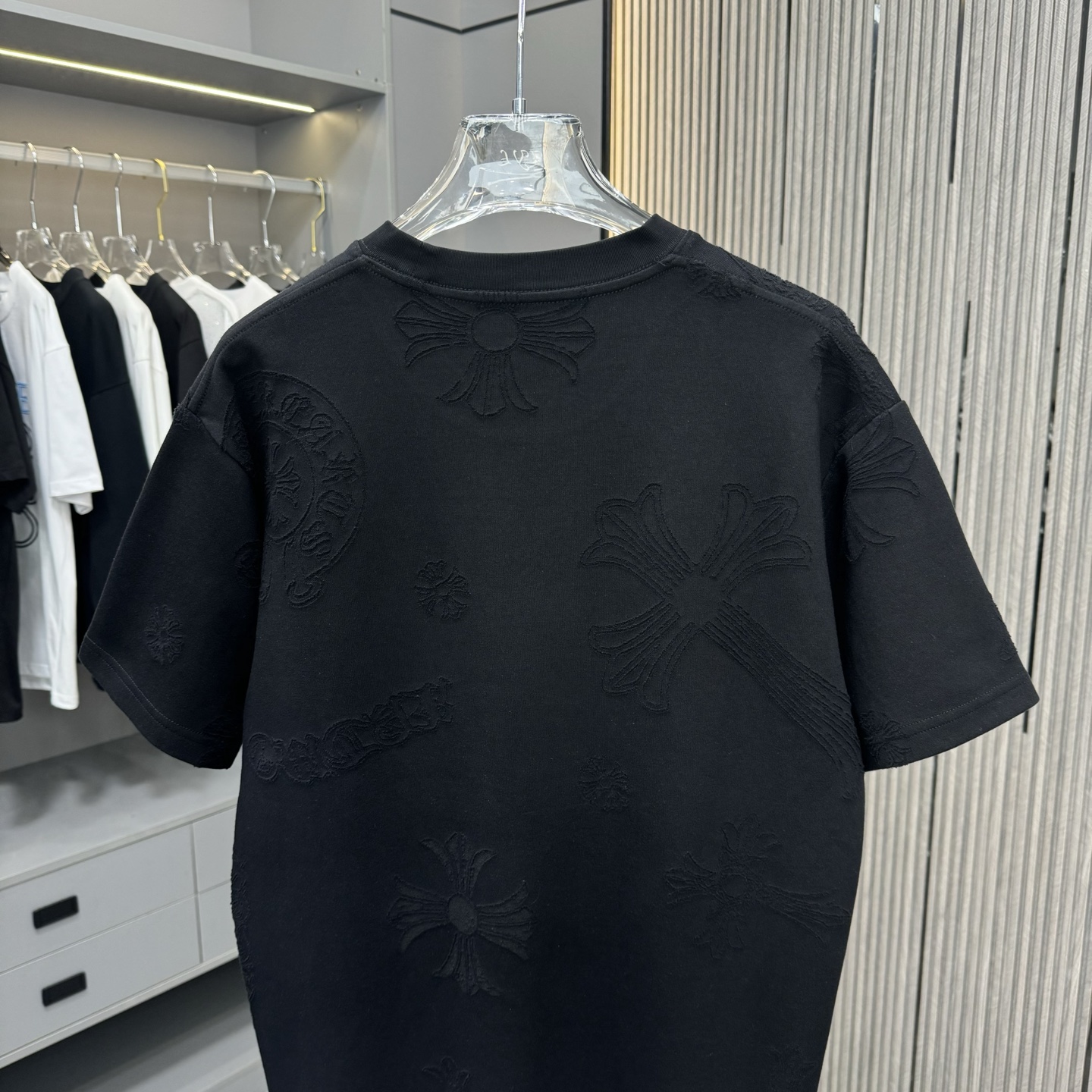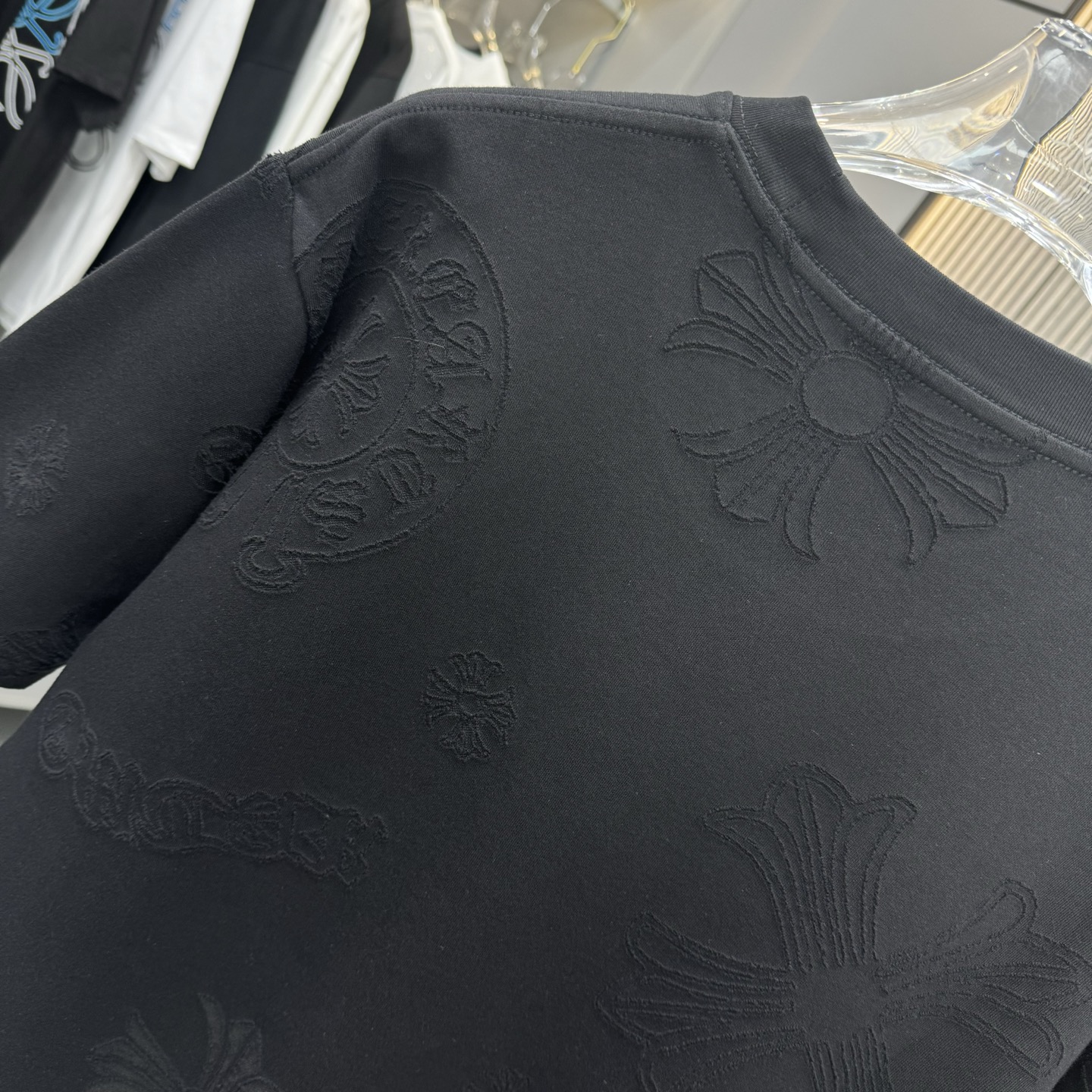 這款衣服是AAAAA 1:1 質量(非常棒). 使用了和原版一模一樣的材料. 商標部分也保持了和鉻心/Chrome Hearts一樣. 圖片拍攝是實物衣服拍攝, 您所收到的實物保證和我們圖片一模一樣.