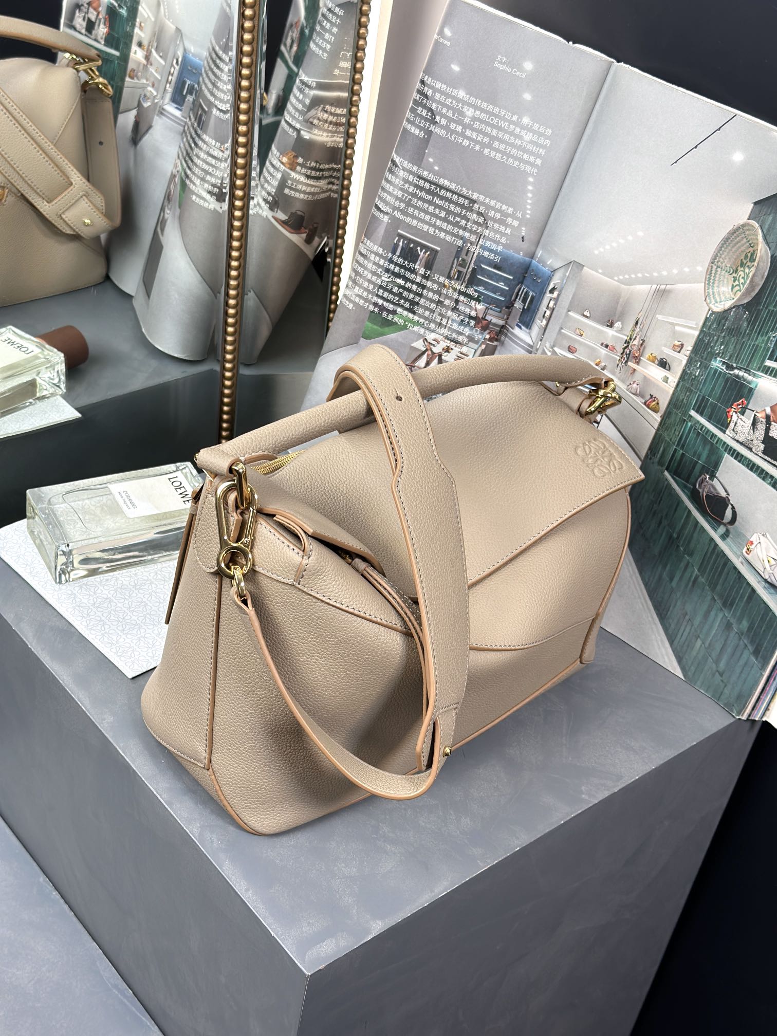 這款包包是AAAAA 1:1 質量(非常棒). 使用了和原版一模一樣的材料. 商標部分也保持了和Loewe一樣. 圖片拍攝是實物包包拍攝, 您所收到的實物保證和我們圖片一模一樣.