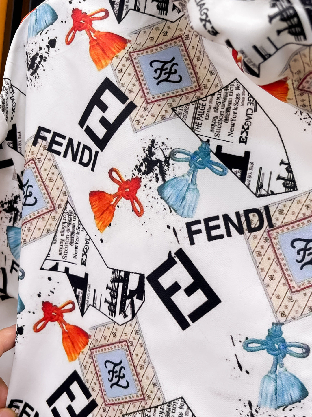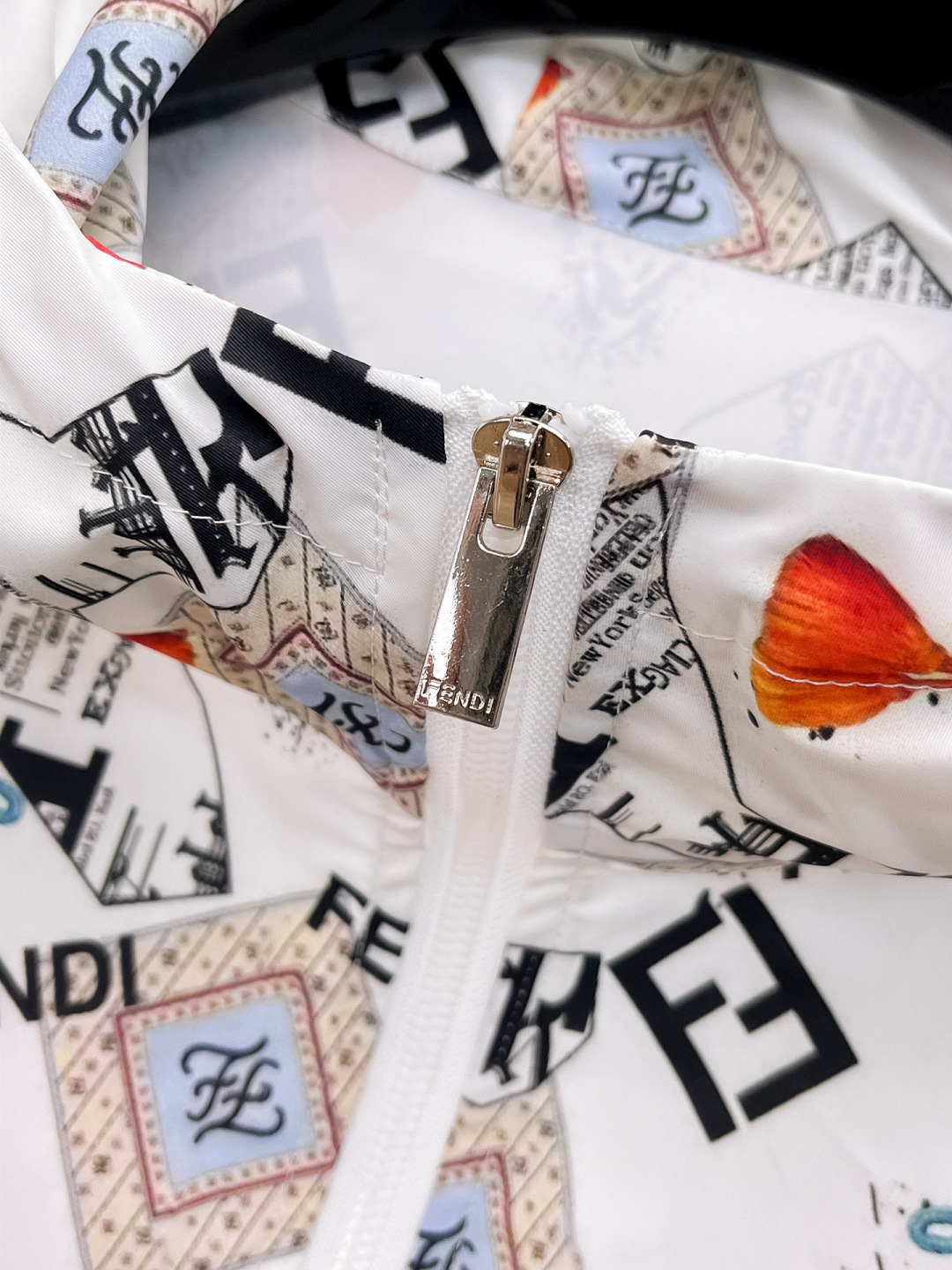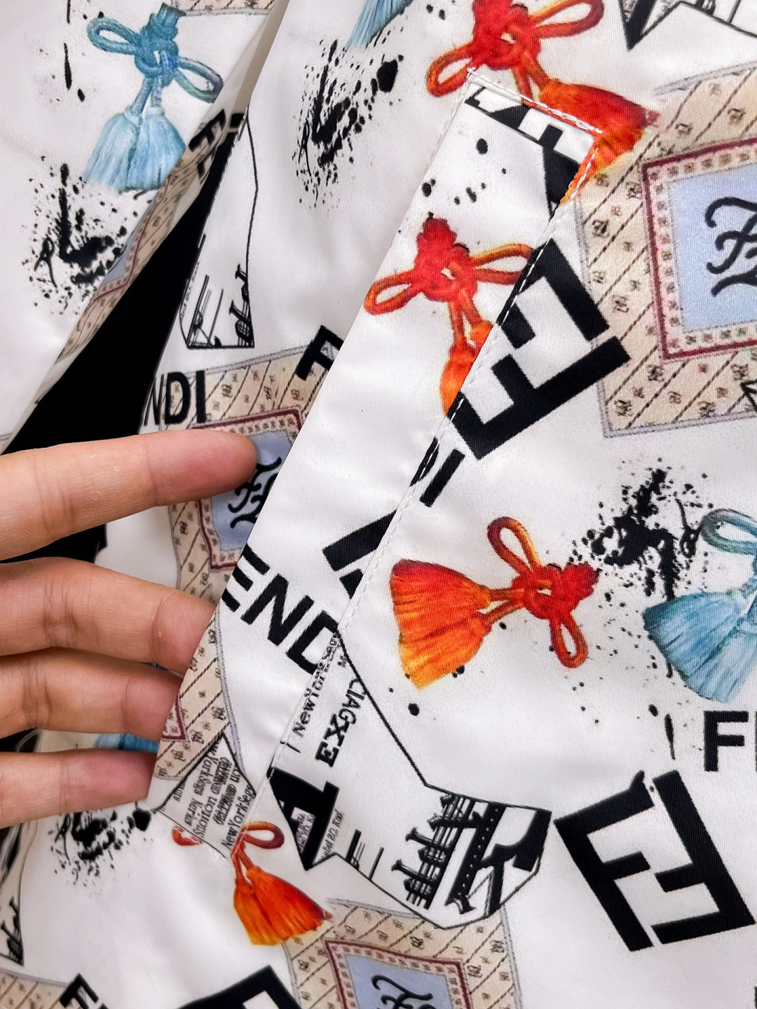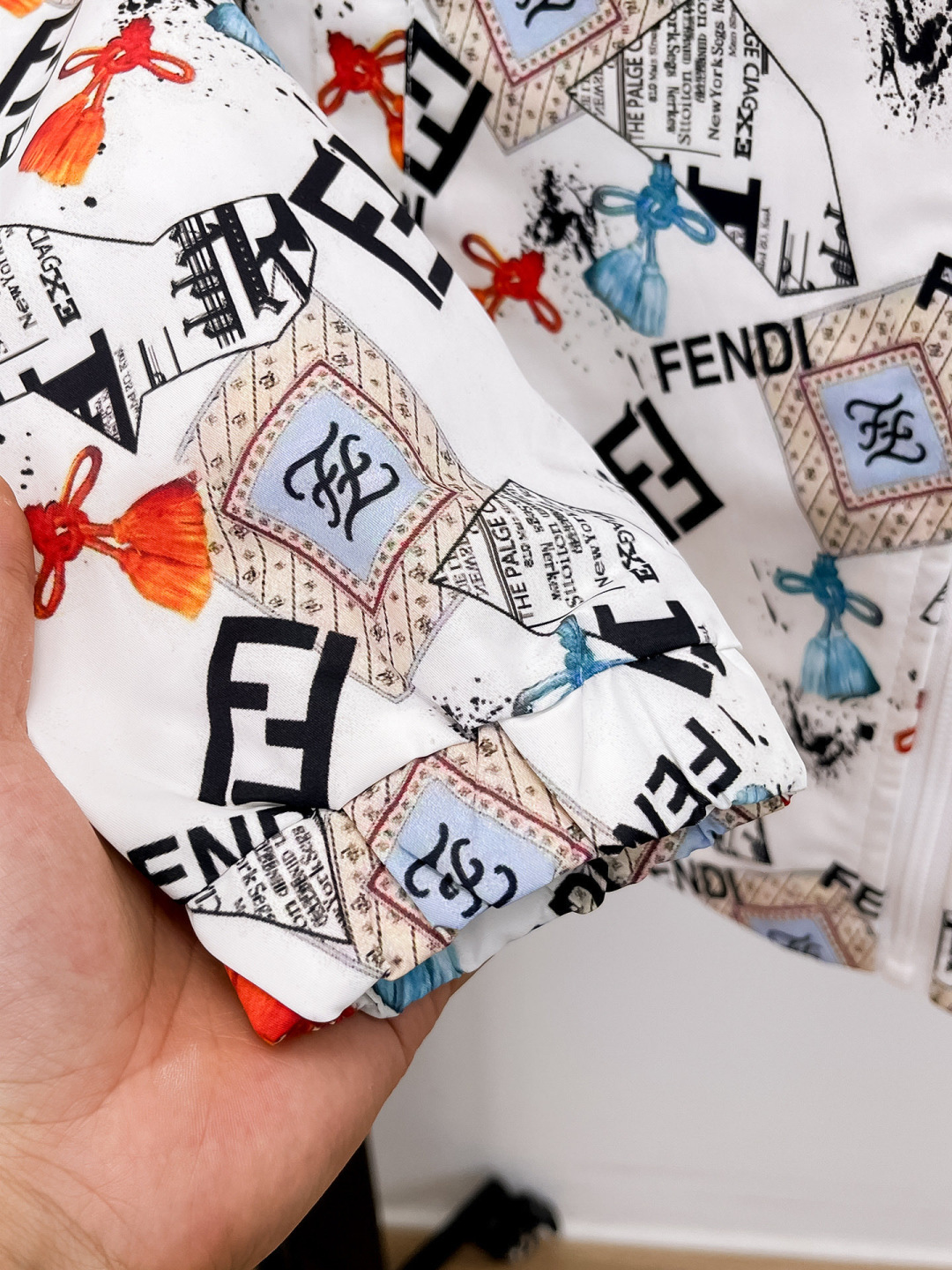 這款衣服是AAAAA 1:1 質量(非常棒). 使用了和原版一模一樣的材料. 商標部分也保持了和芬迪/Fendi一樣. 圖片拍攝是實物衣服拍攝, 您所收到的實物保證和我們圖片一模一樣.