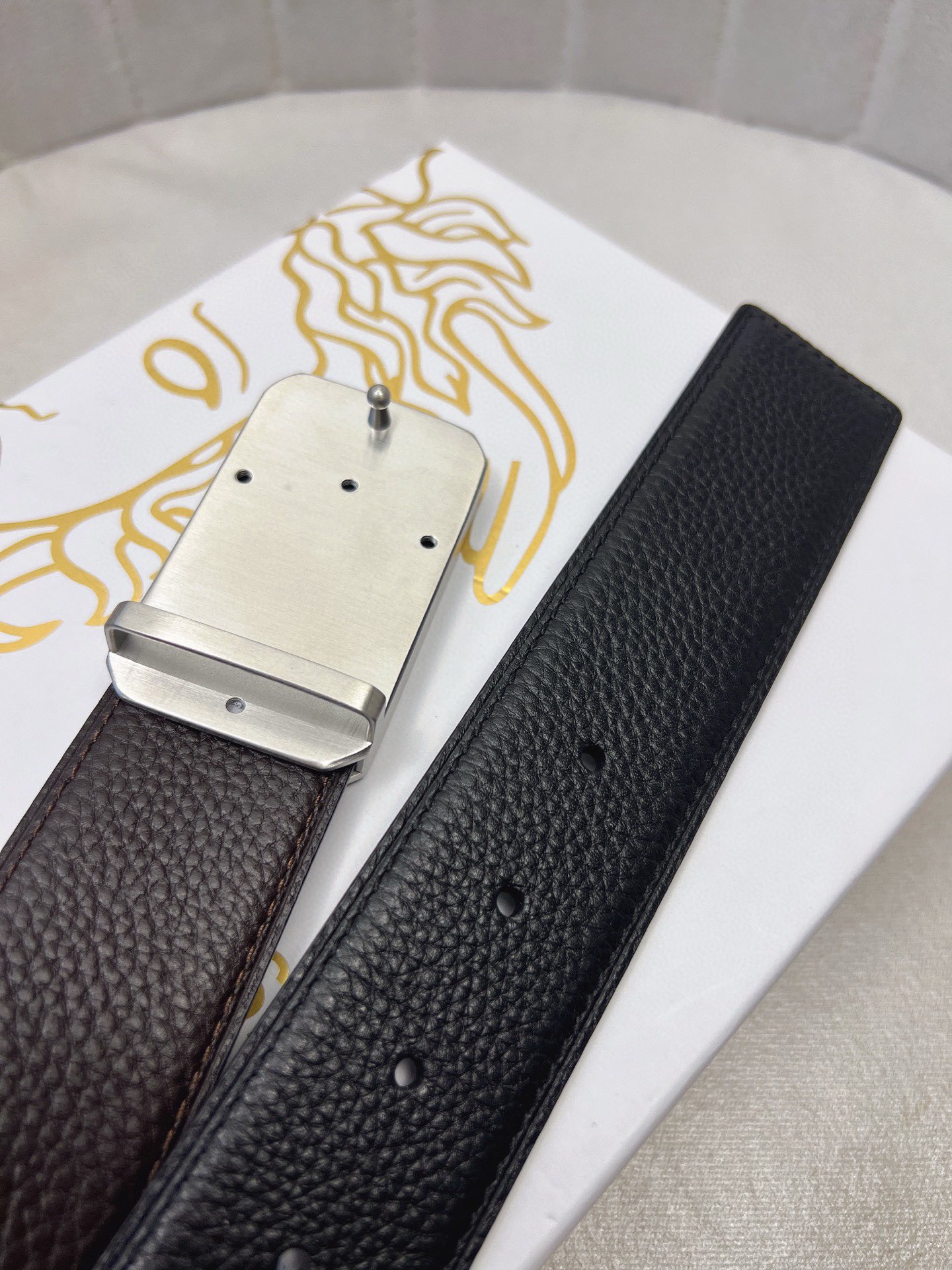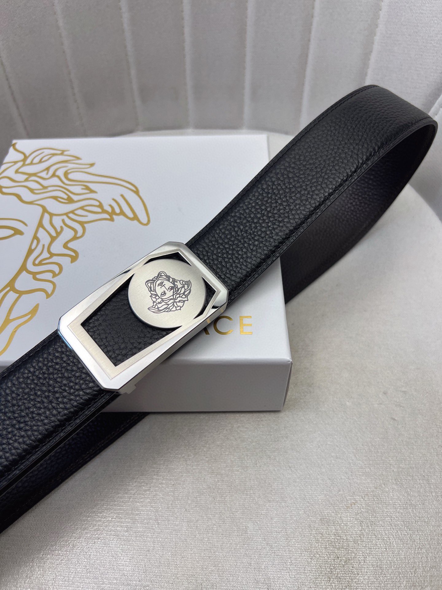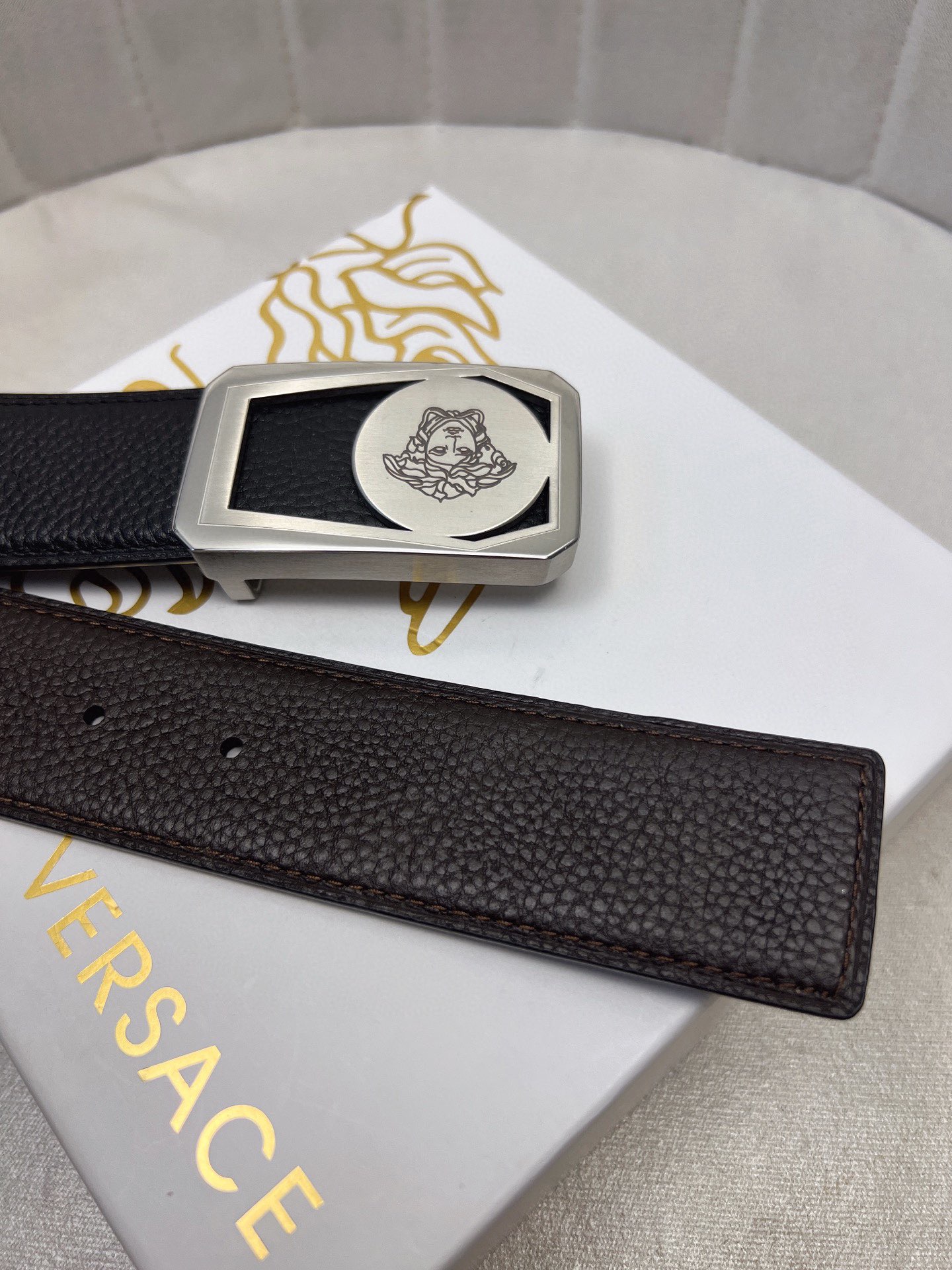 這款皮帶是AAAAA 1:1 質量(非常棒). 使用了和原版一模一樣的材料. 商標部分也保持了和范思哲/Versace一樣. 圖片拍攝是實物皮帶拍攝, 您所收到的實物保證和我們圖片一模一樣.