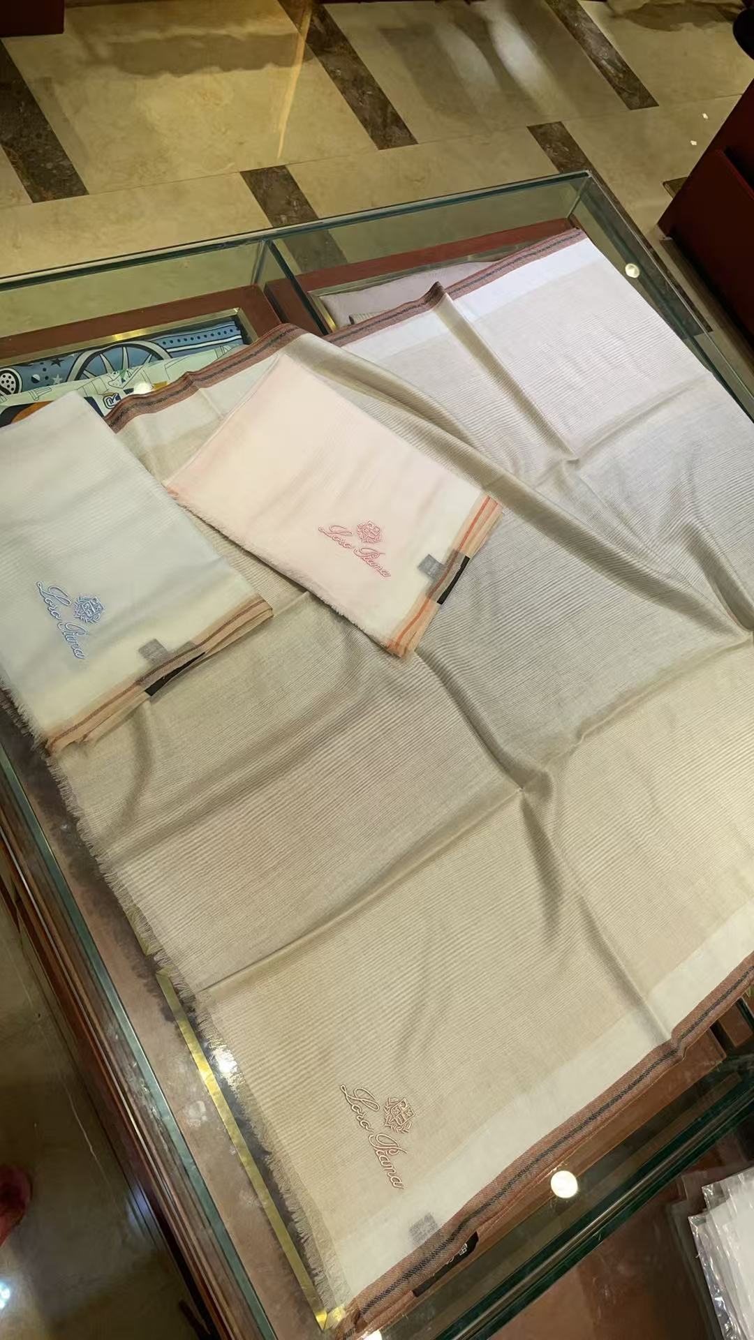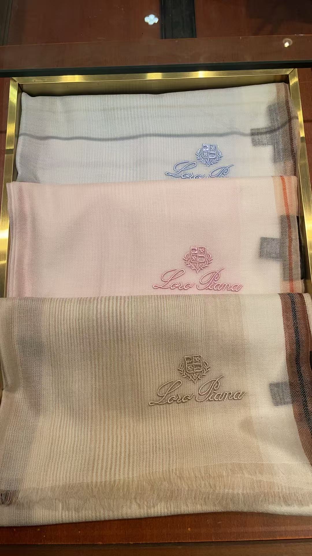 這款圍巾是AAAAA 1:1 質量(非常棒). 使用了和原版一模一樣的材料. 商標部分也保持了和Loro Piana一樣. 圖片拍攝是實物圍巾拍攝, 您所收到的實物保證和我們圖片一模一樣.