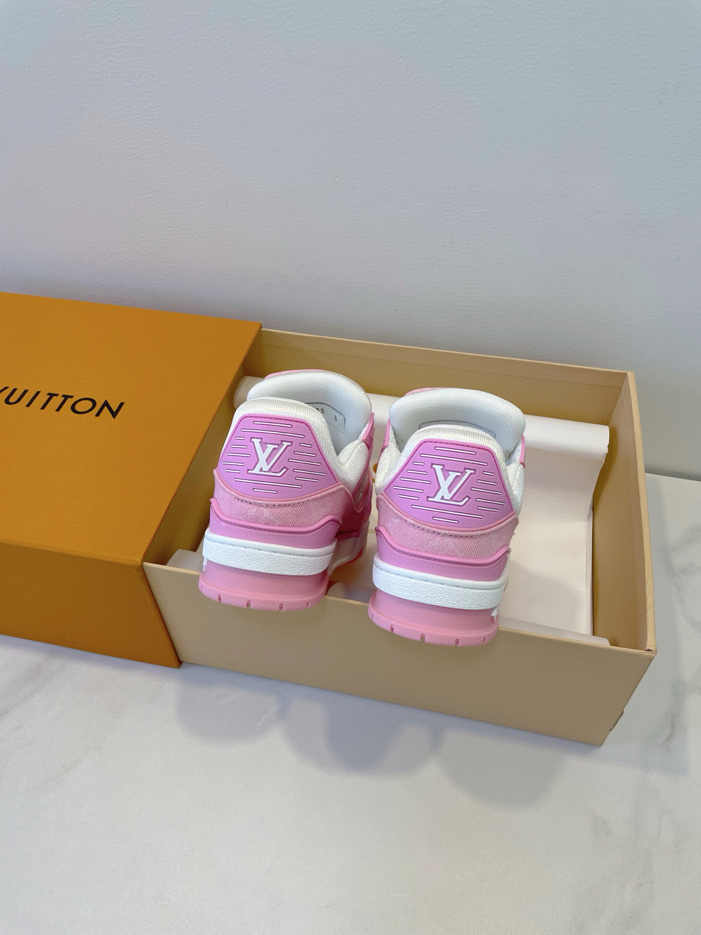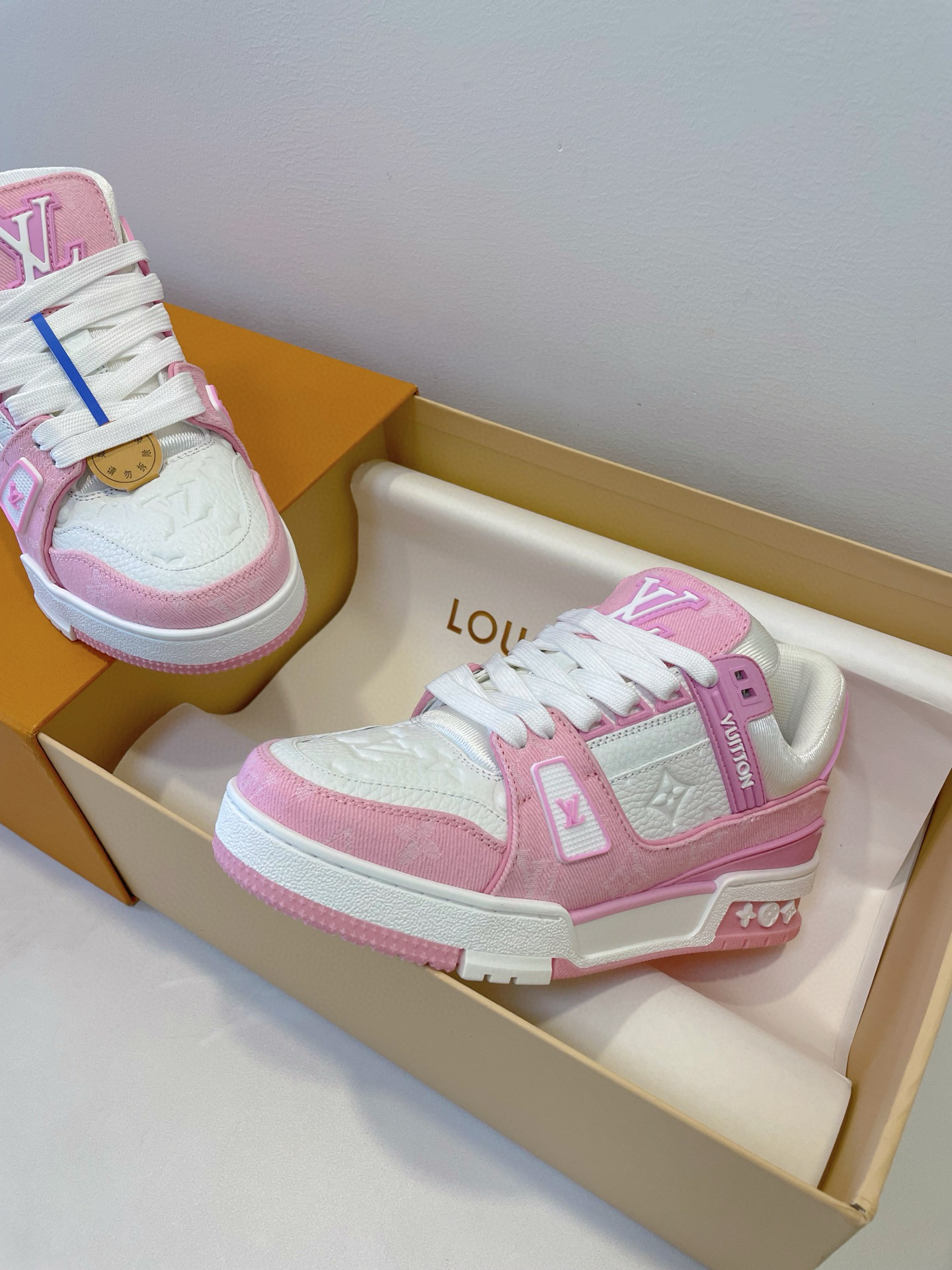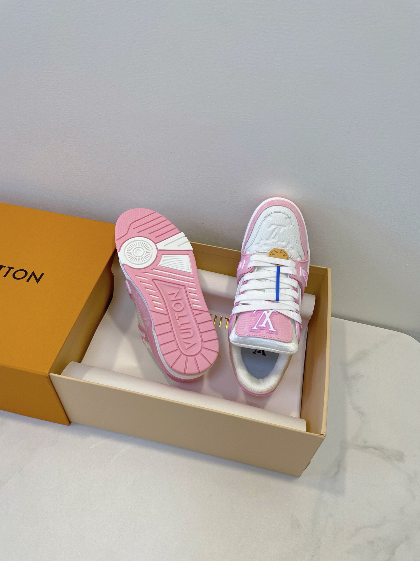 這款鞋子是AAAAA 1:1 質量(非常棒). 使用了和原版一模一樣的材料. 商標部分也保持了和路易威登/Louis Vuitton一樣. 圖片拍攝是實物鞋子拍攝, 您所收到的實物保證和我們圖片一模一樣.