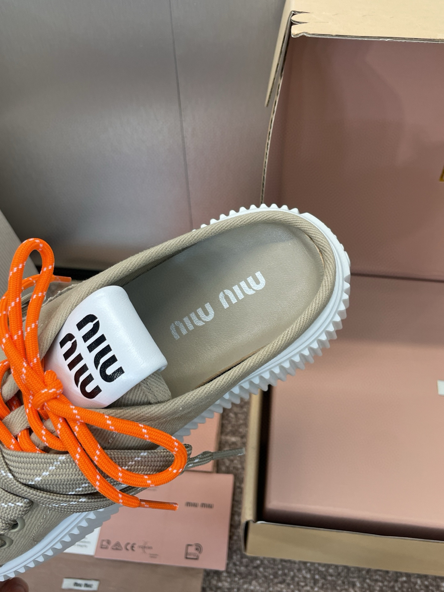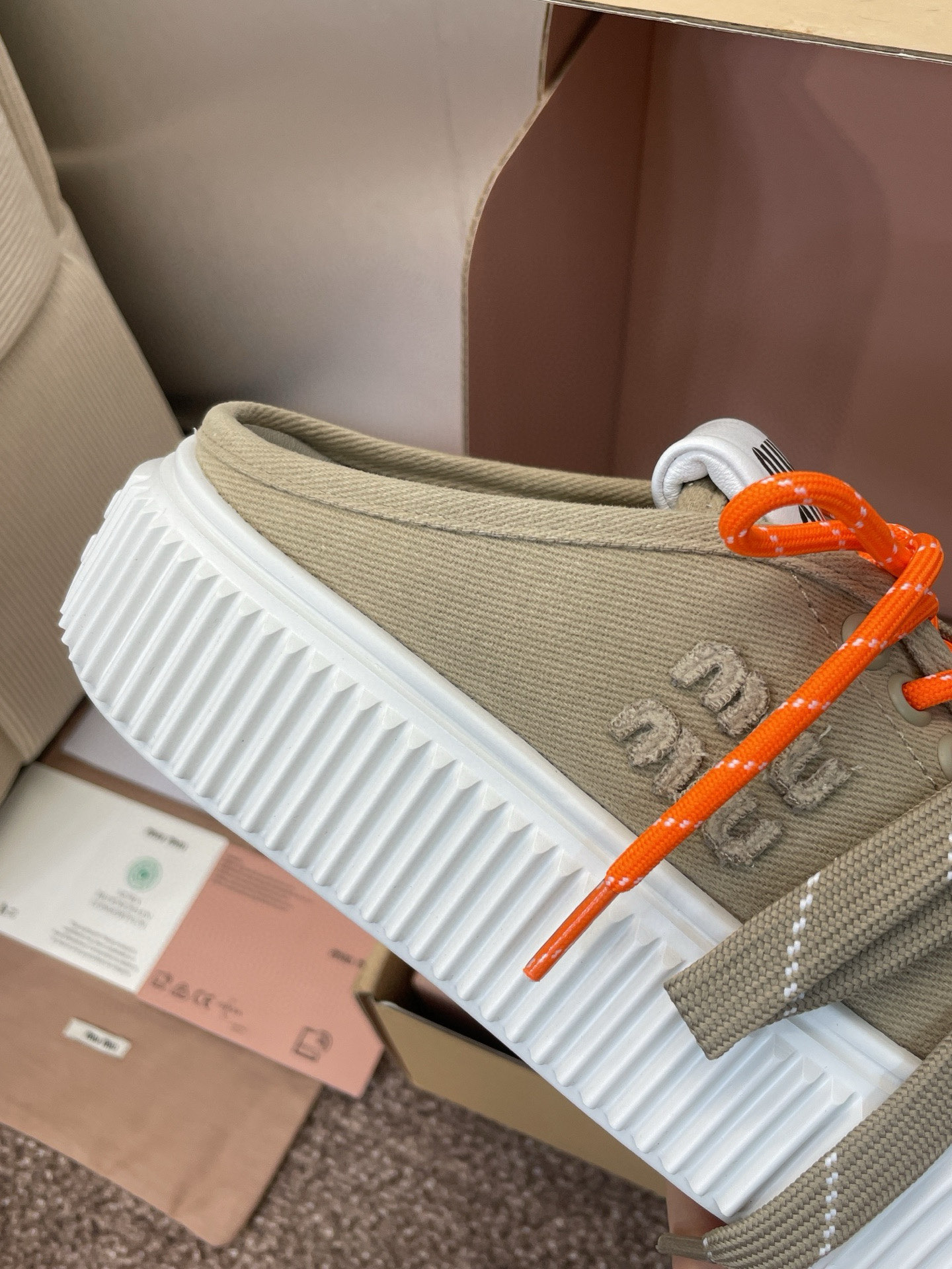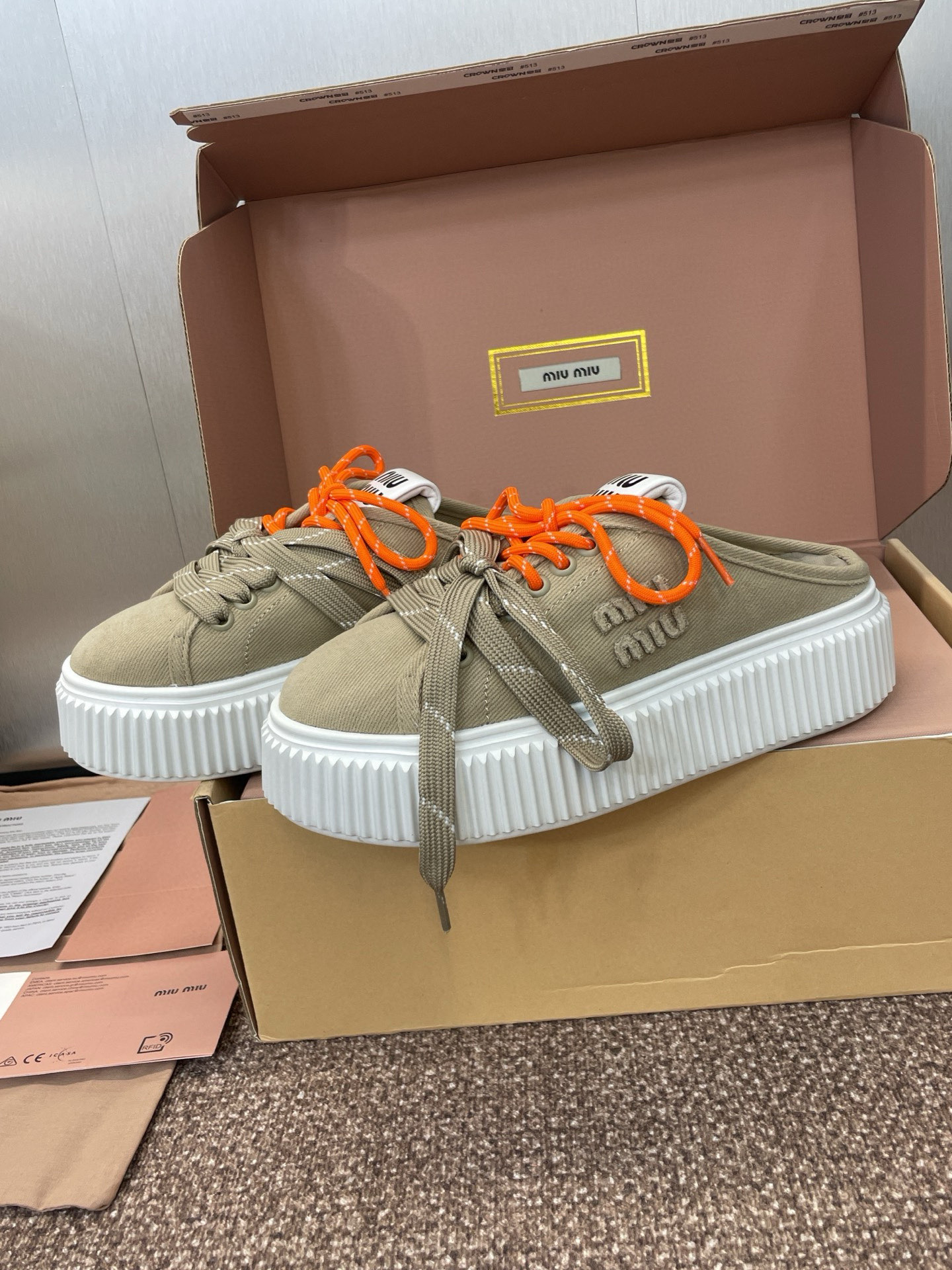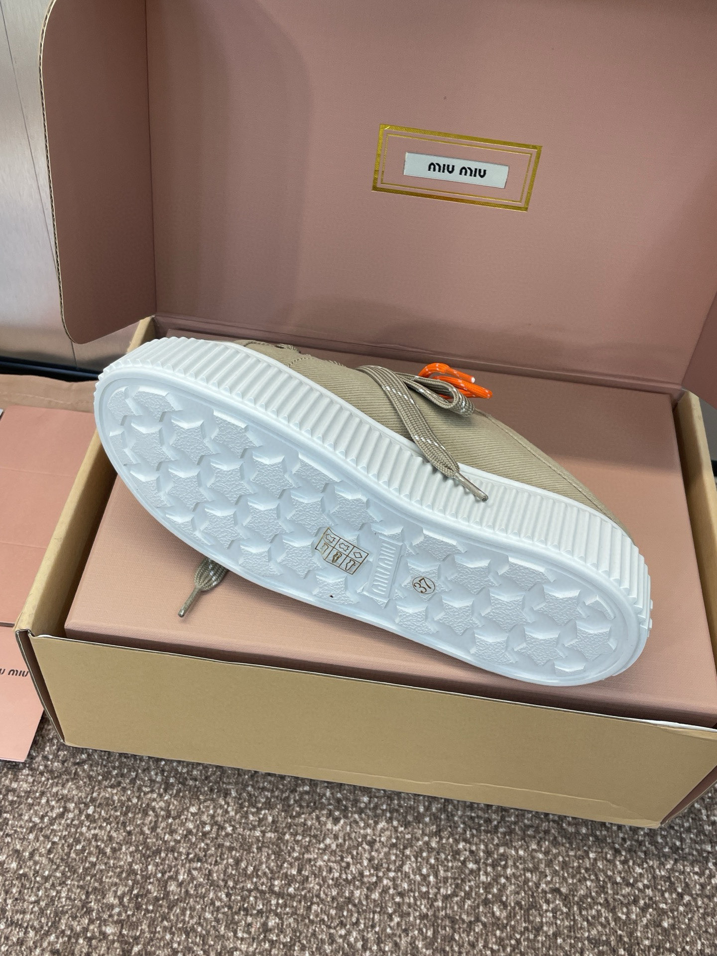 這款鞋子是AAAAA 1:1 質量(非常棒). 使用了和原版一模一樣的材料. 商標部分也保持了和繆繆/Miu Miu一樣. 圖片拍攝是實物鞋子拍攝, 您所收到的實物保證和我們圖片一模一樣.