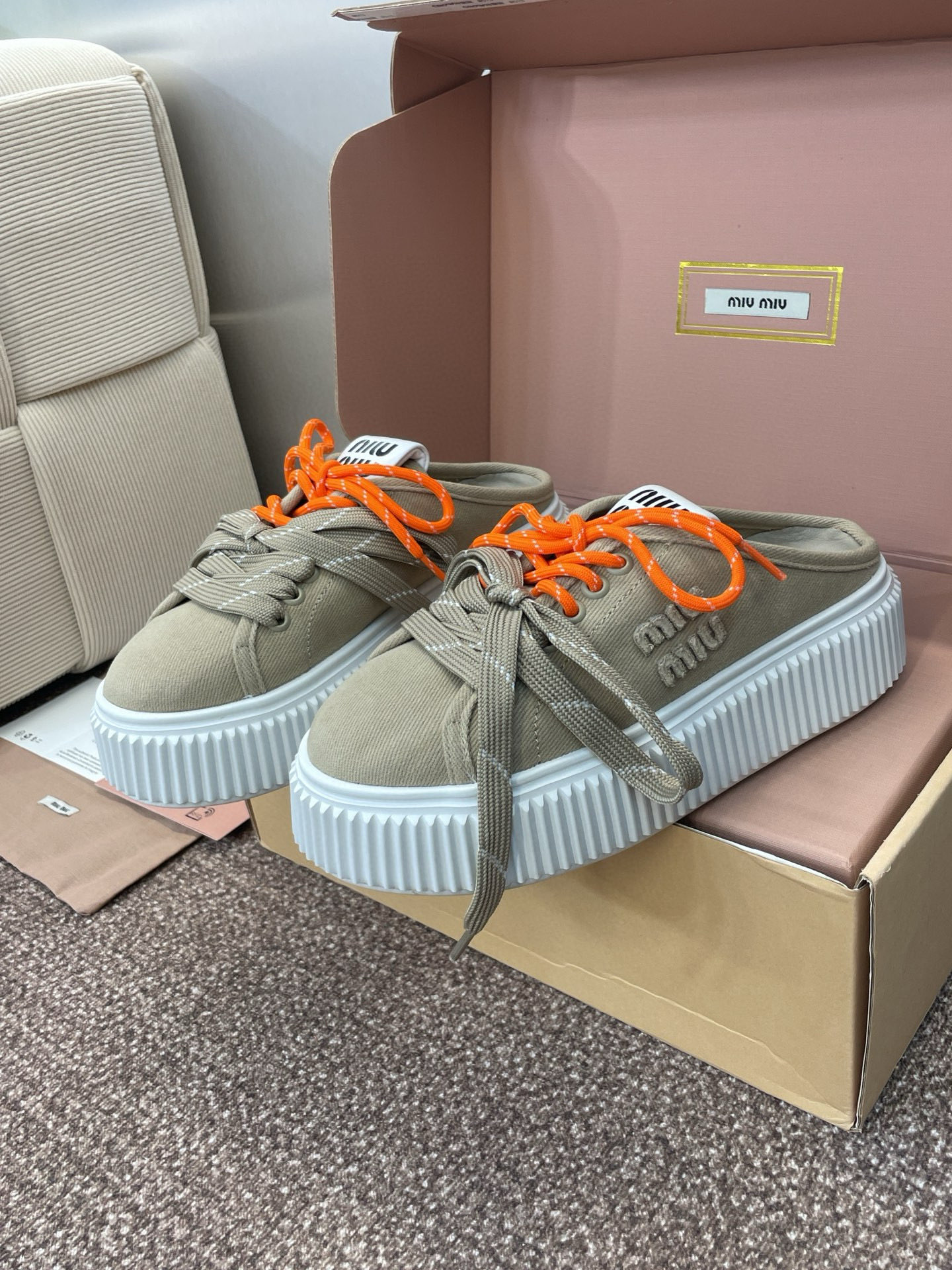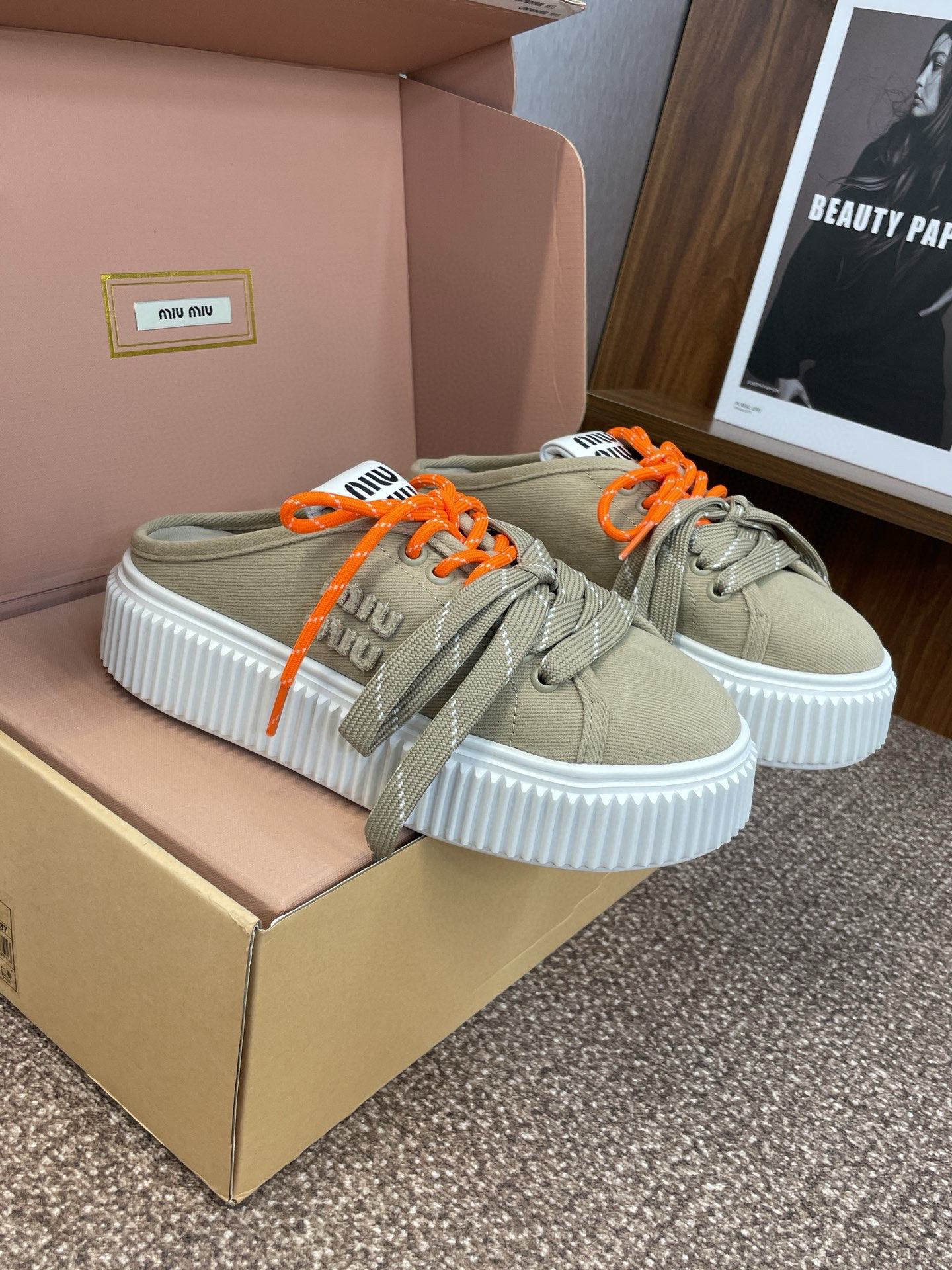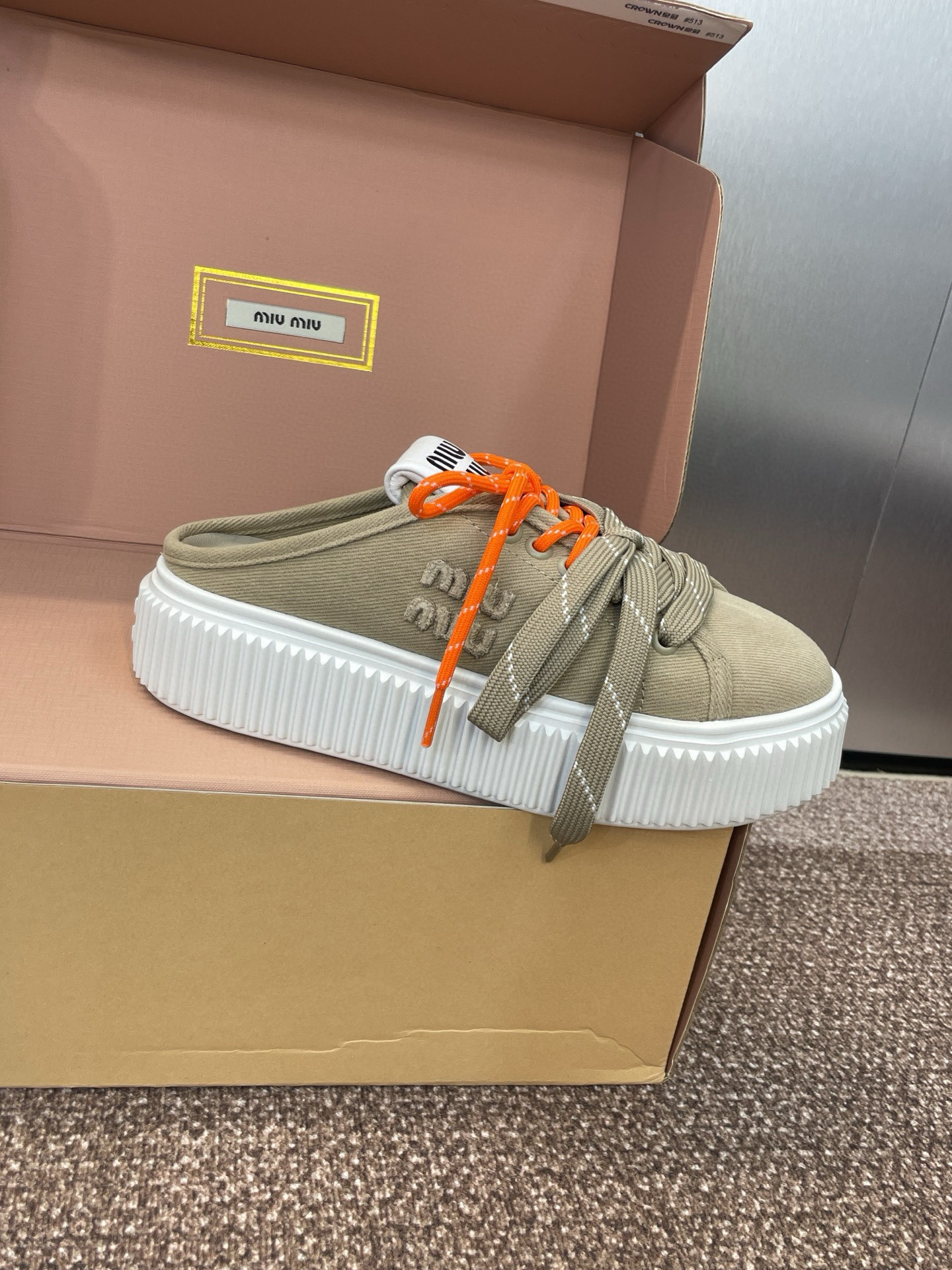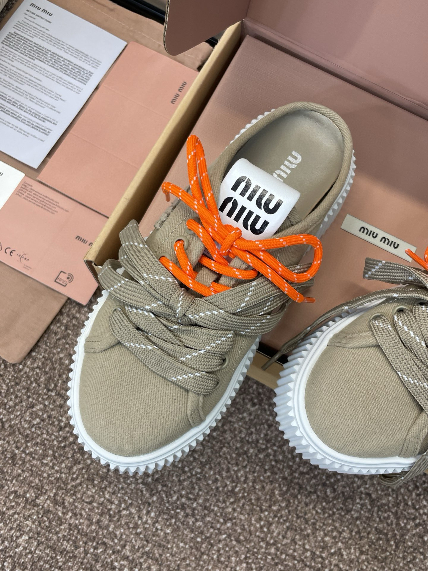 這款鞋子是AAAAA 1:1 質量(非常棒). 使用了和原版一模一樣的材料. 商標部分也保持了和繆繆/Miu Miu一樣. 圖片拍攝是實物鞋子拍攝, 您所收到的實物保證和我們圖片一模一樣.