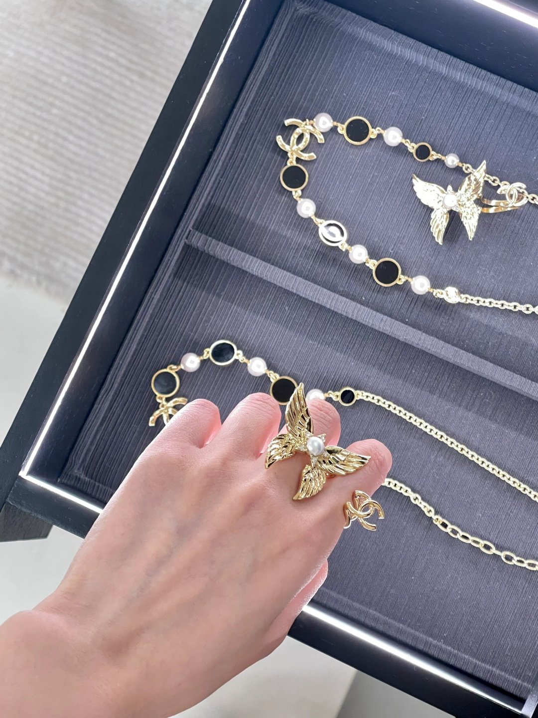 這款首飾是AAAAA 1:1 質量(非常棒). 使用了和原版一模一樣的材料. 商標部分也保持了和香奈兒/Chanel一樣. 圖片拍攝是實物首飾拍攝, 您所收到的實物保證和我們圖片一模一樣.