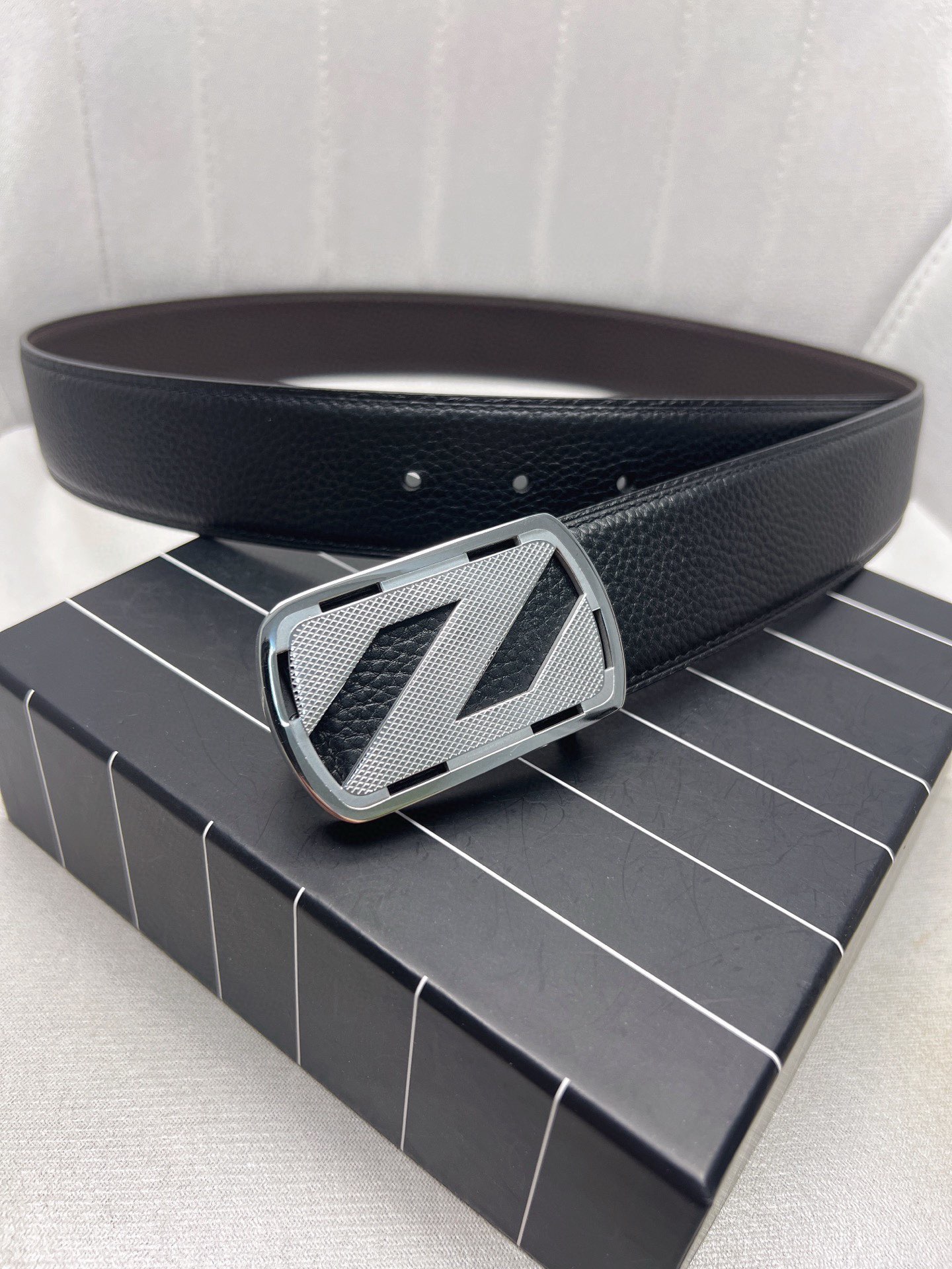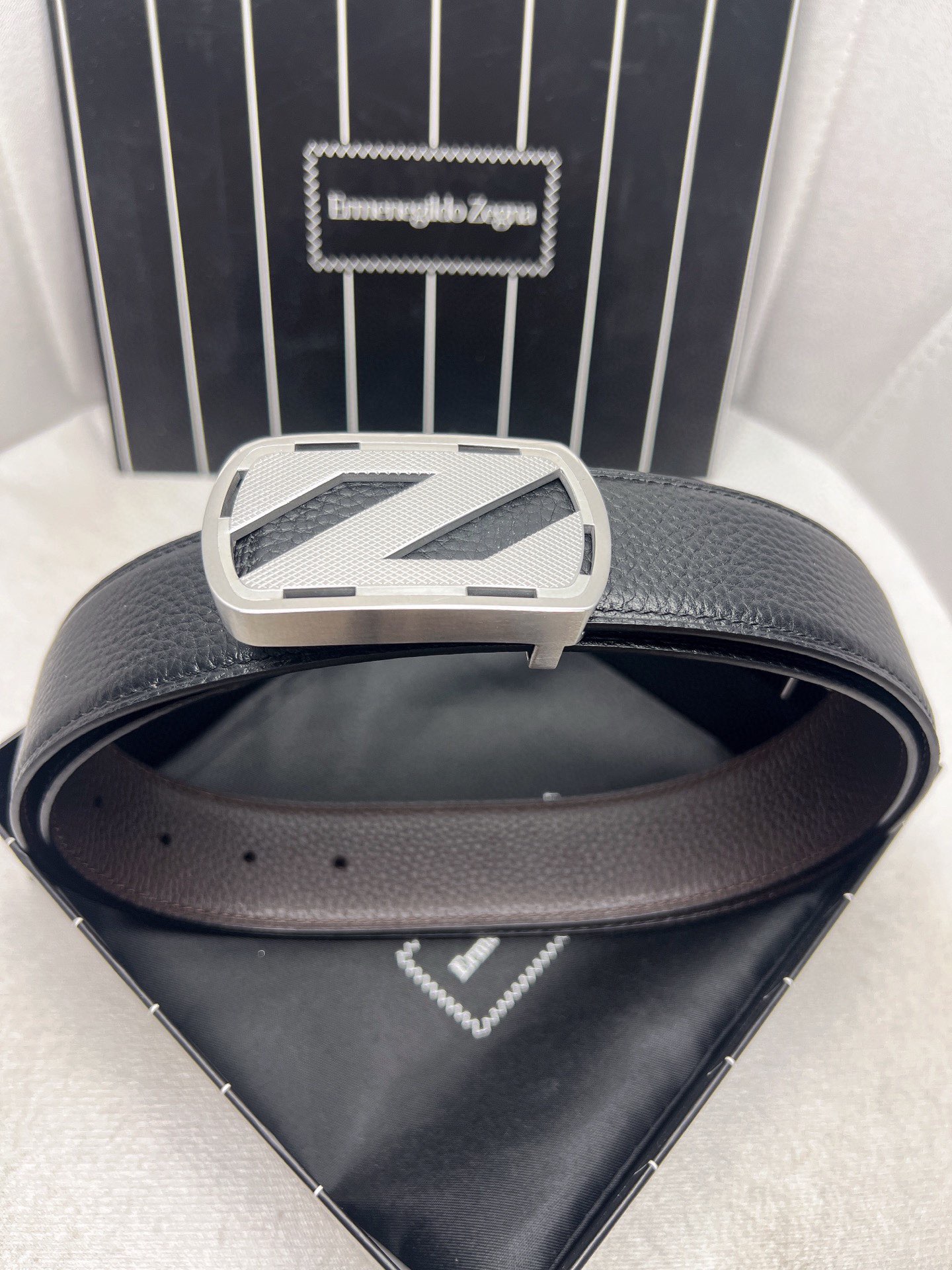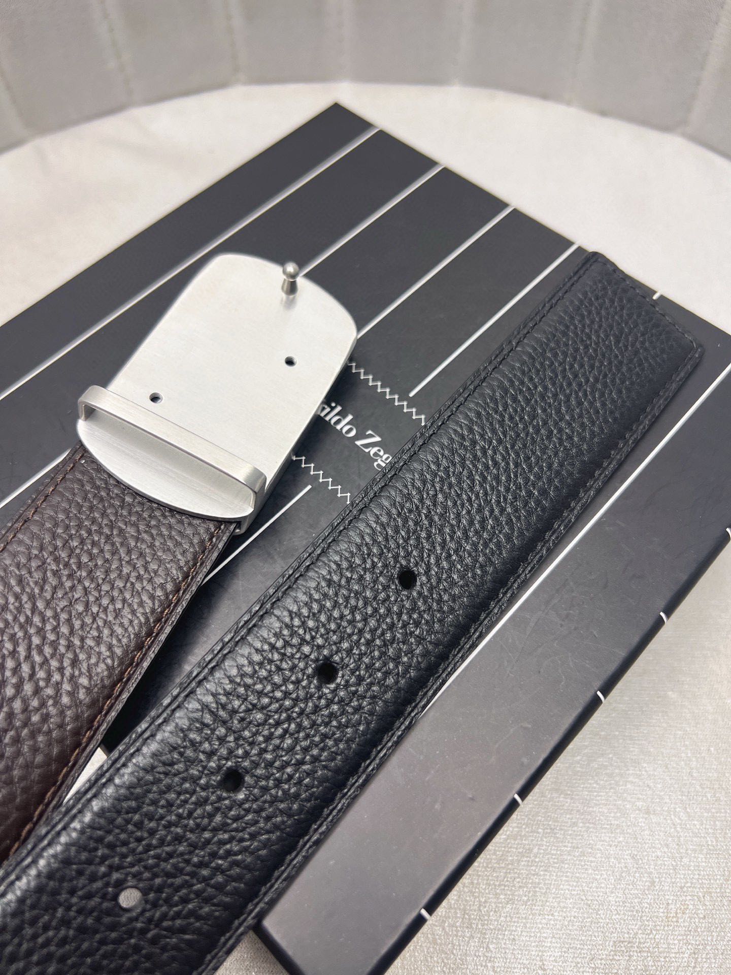 這款皮帶是AAAAA 1:1 質量(非常棒). 使用了和原版一模一樣的材料. 商標部分也保持了和Zegna一樣. 圖片拍攝是實物皮帶拍攝, 您所收到的實物保證和我們圖片一模一樣.
