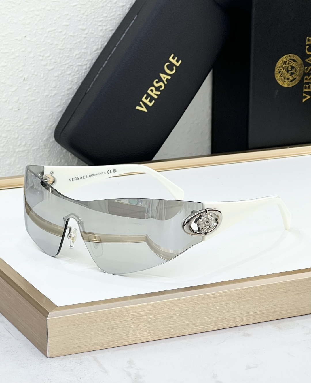 這款太陽眼鏡是AAAAA 1:1 質量(非常棒). 使用了和原版一模一樣的材料. 商標部分也保持了和范思哲/Versace一樣. 圖片拍攝是實物太陽眼鏡拍攝, 您所收到的實物保證和我們圖片一模一樣.