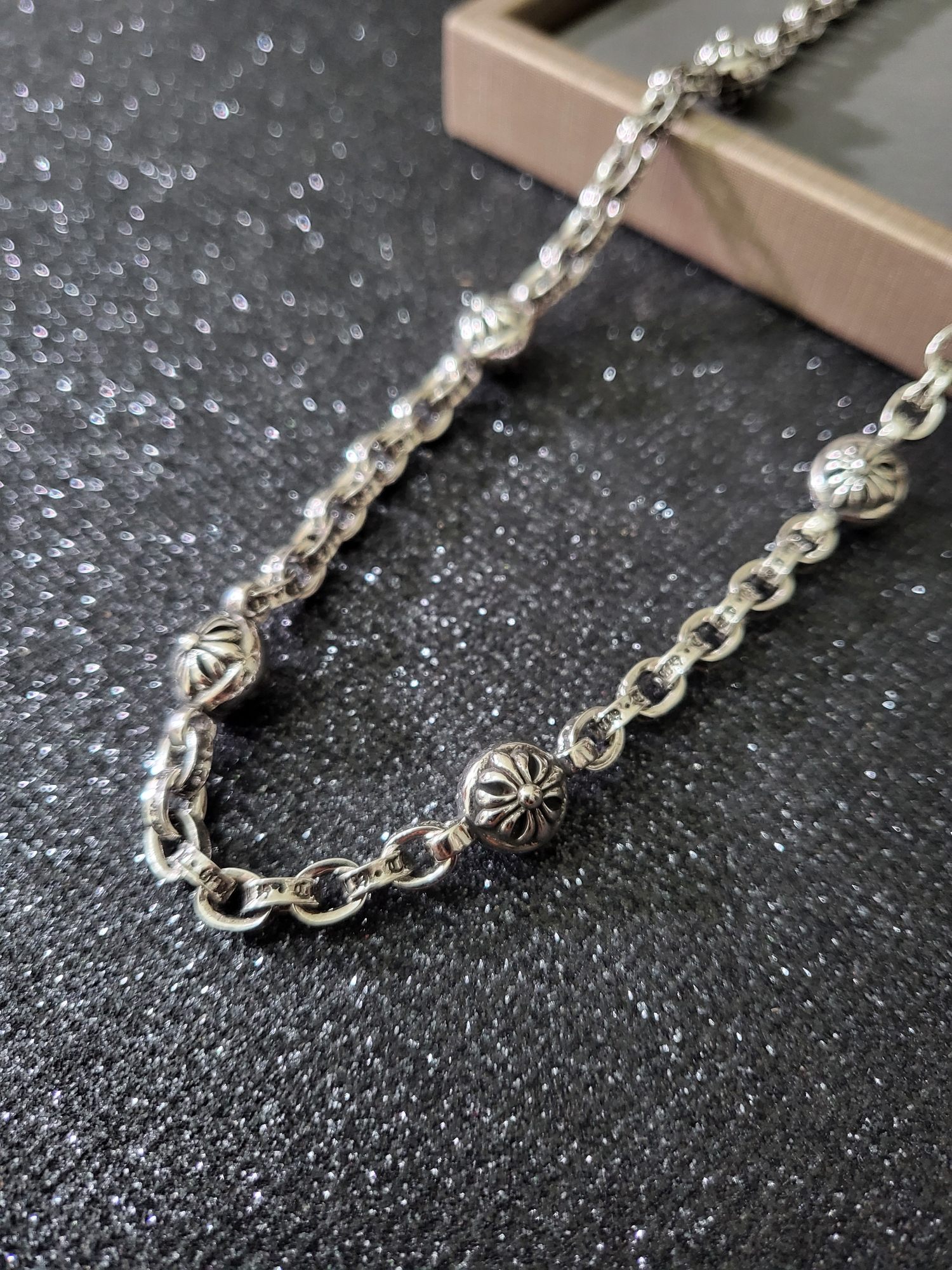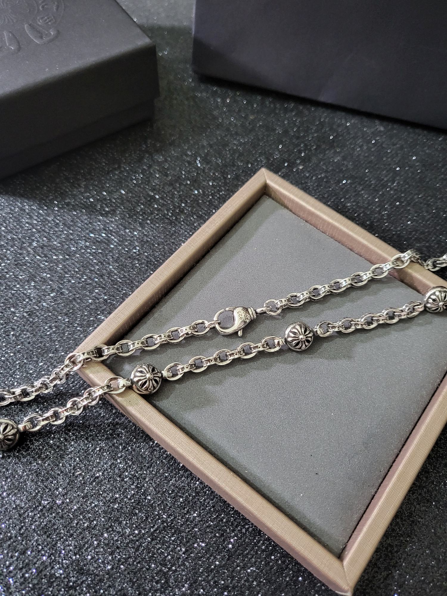 這款首飾是AAAAA 1:1 質量(非常棒). 使用了和原版一模一樣的材料. 商標部分也保持了和鉻心/Chrome Hearts一樣. 圖片拍攝是實物首飾拍攝, 您所收到的實物保證和我們圖片一模一樣.