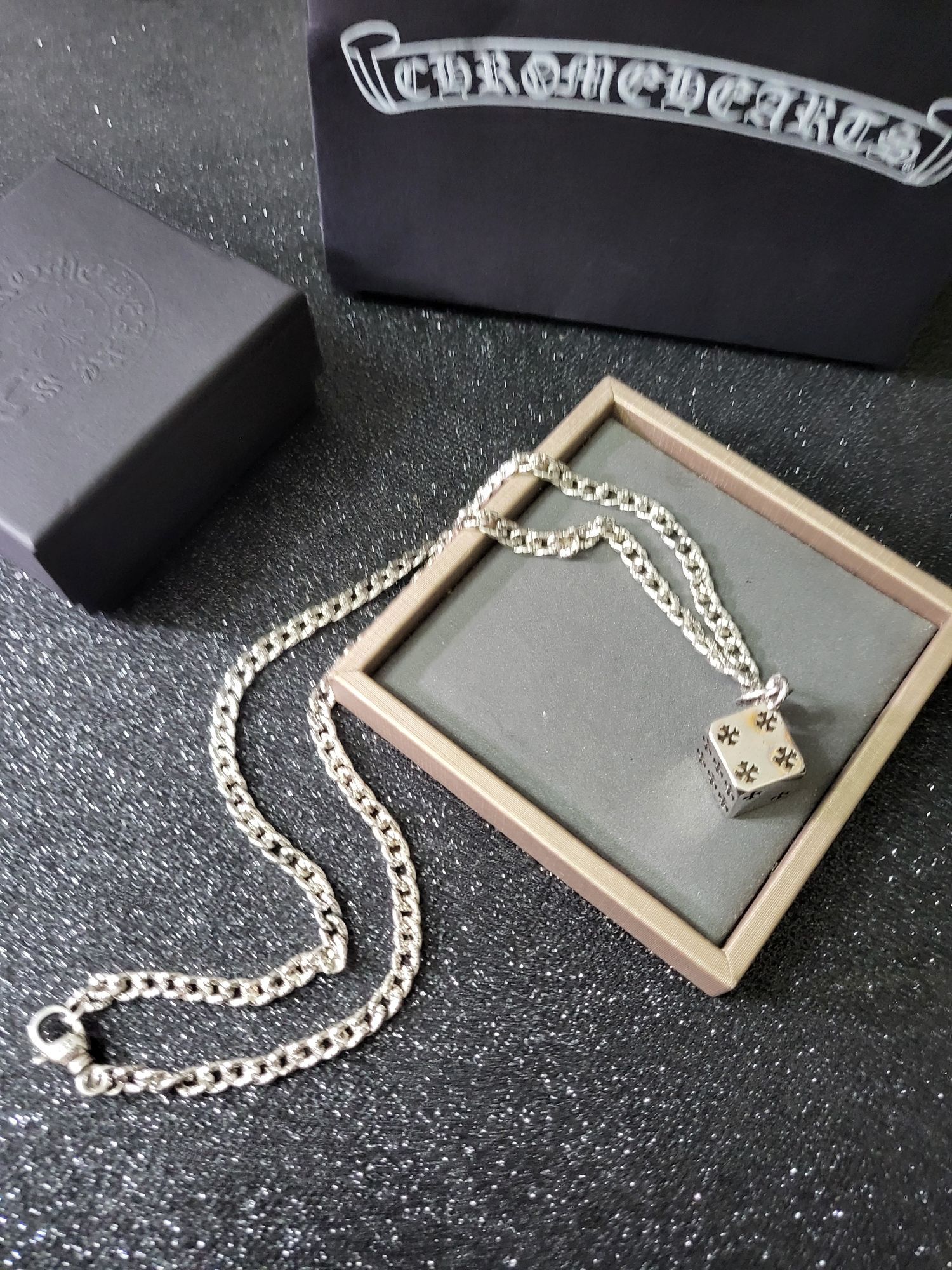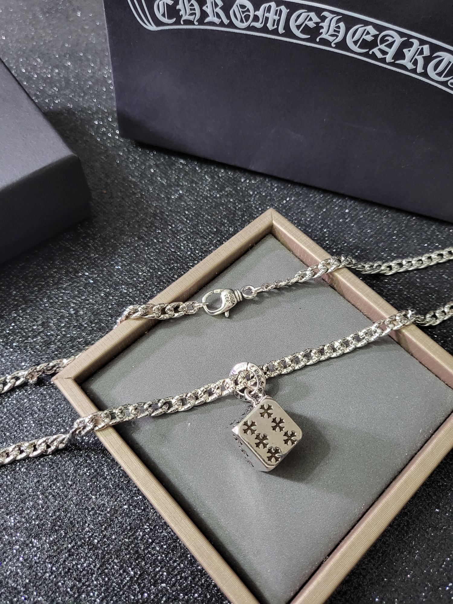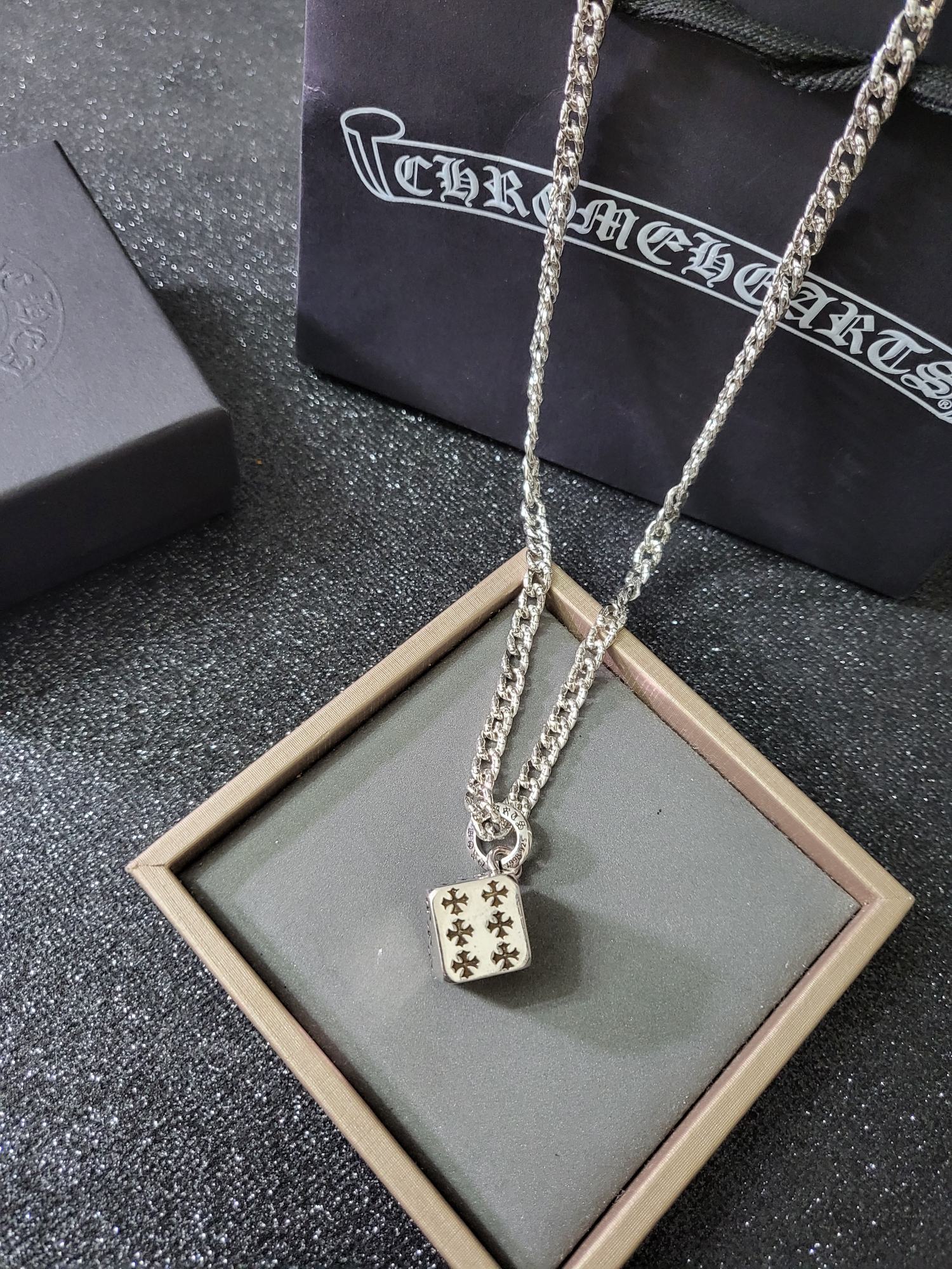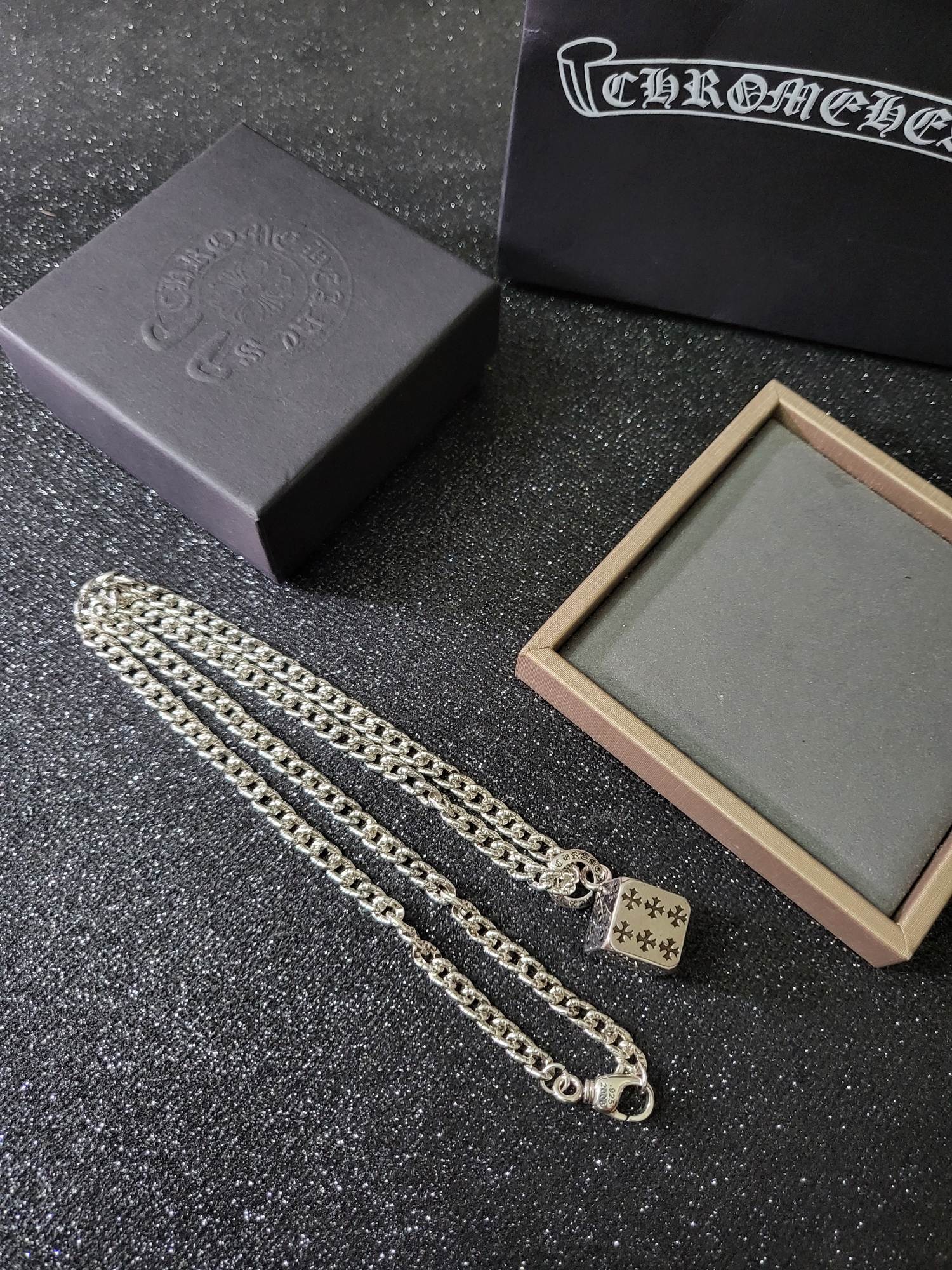 這款首飾是AAAAA 1:1 質量(非常棒). 使用了和原版一模一樣的材料. 商標部分也保持了和鉻心/Chrome Hearts一樣. 圖片拍攝是實物首飾拍攝, 您所收到的實物保證和我們圖片一模一樣.