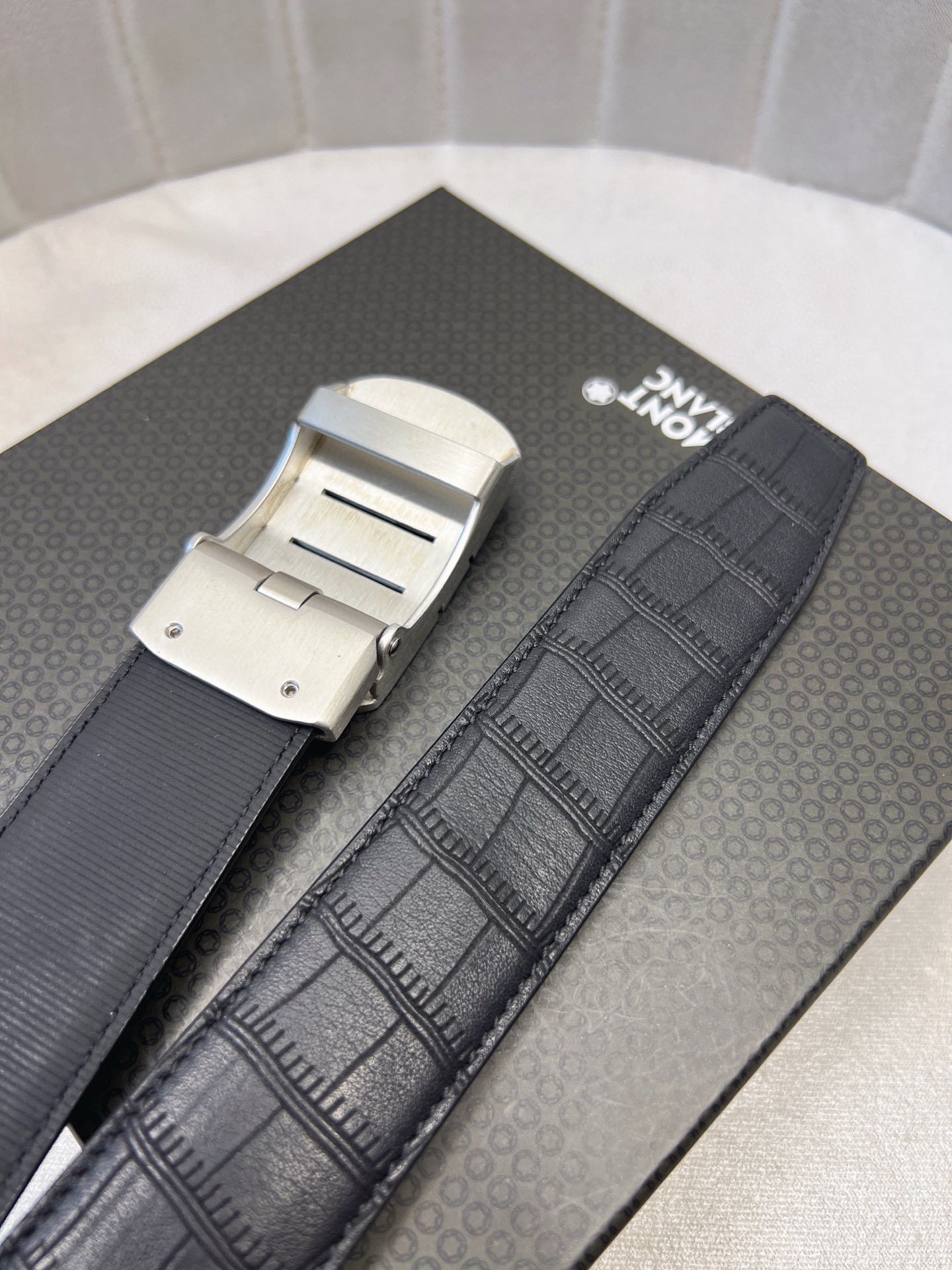 這款皮帶是AAAAA 1:1 質量(非常棒). 使用了和原版一模一樣的材料. 商標部分也保持了和萬寶龍/Montblanc一樣. 圖片拍攝是實物皮帶拍攝, 您所收到的實物保證和我們圖片一模一樣.