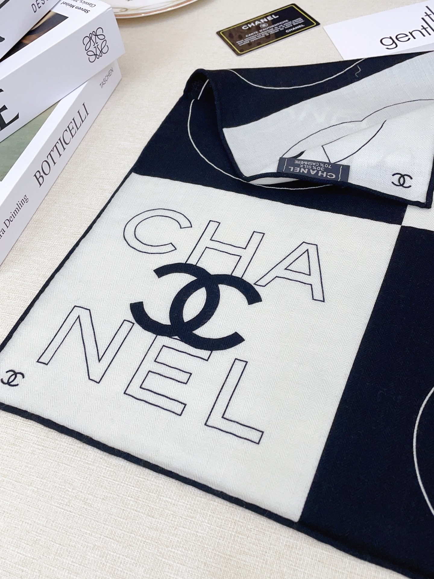 這款圍巾是AAAAA 1:1 質量(非常棒). 使用了和原版一模一樣的材料. 商標部分也保持了和香奈兒/Chanel一樣. 圖片拍攝是實物圍巾拍攝, 您所收到的實物保證和我們圖片一模一樣.