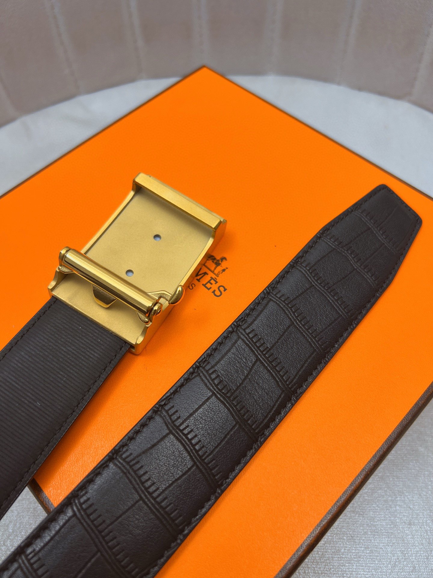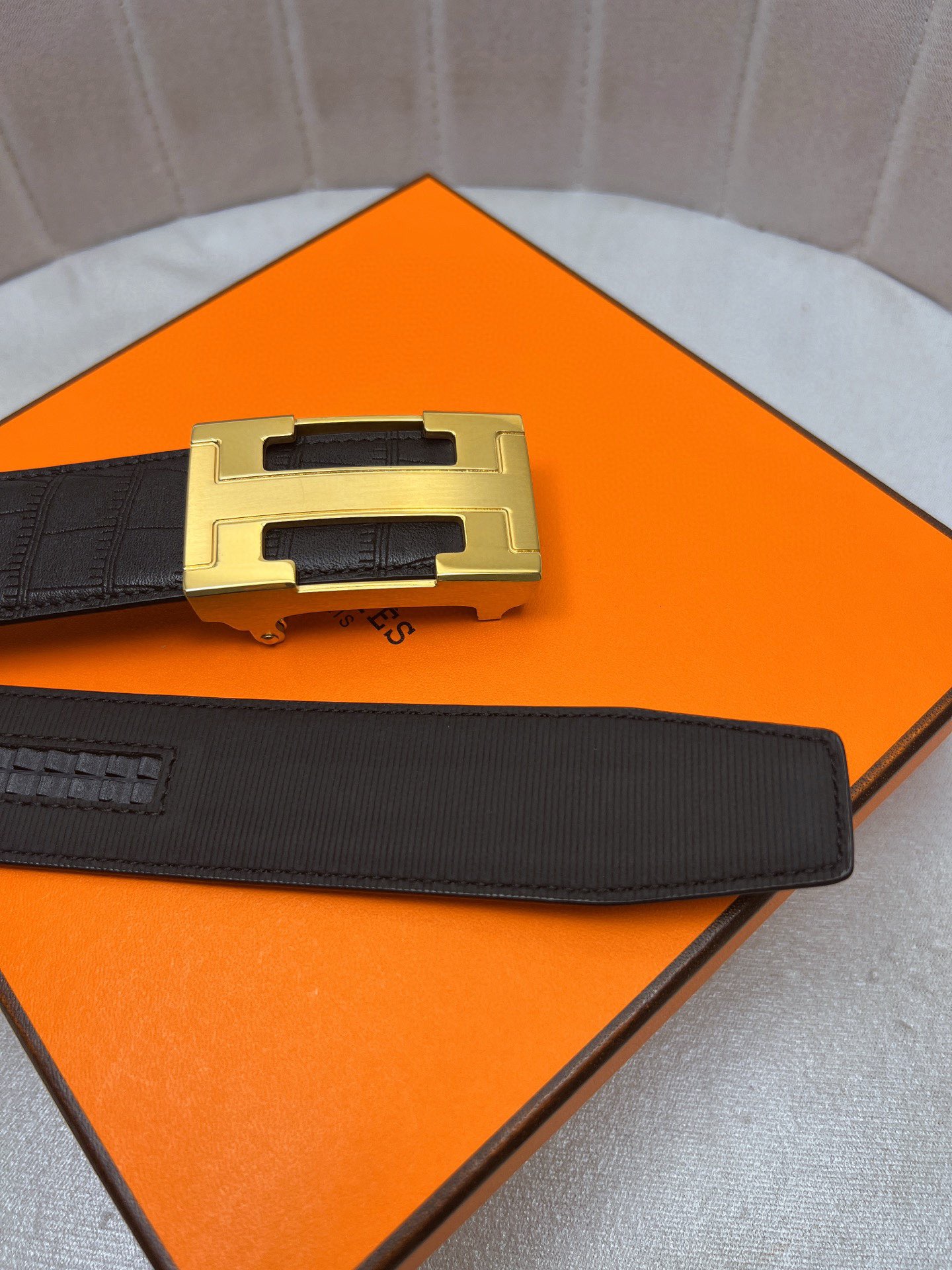 這款皮帶是AAAAA 1:1 質量(非常棒). 使用了和原版一模一樣的材料. 商標部分也保持了和愛馬仕/Hermes一樣. 圖片拍攝是實物皮帶拍攝, 您所收到的實物保證和我們圖片一模一樣.