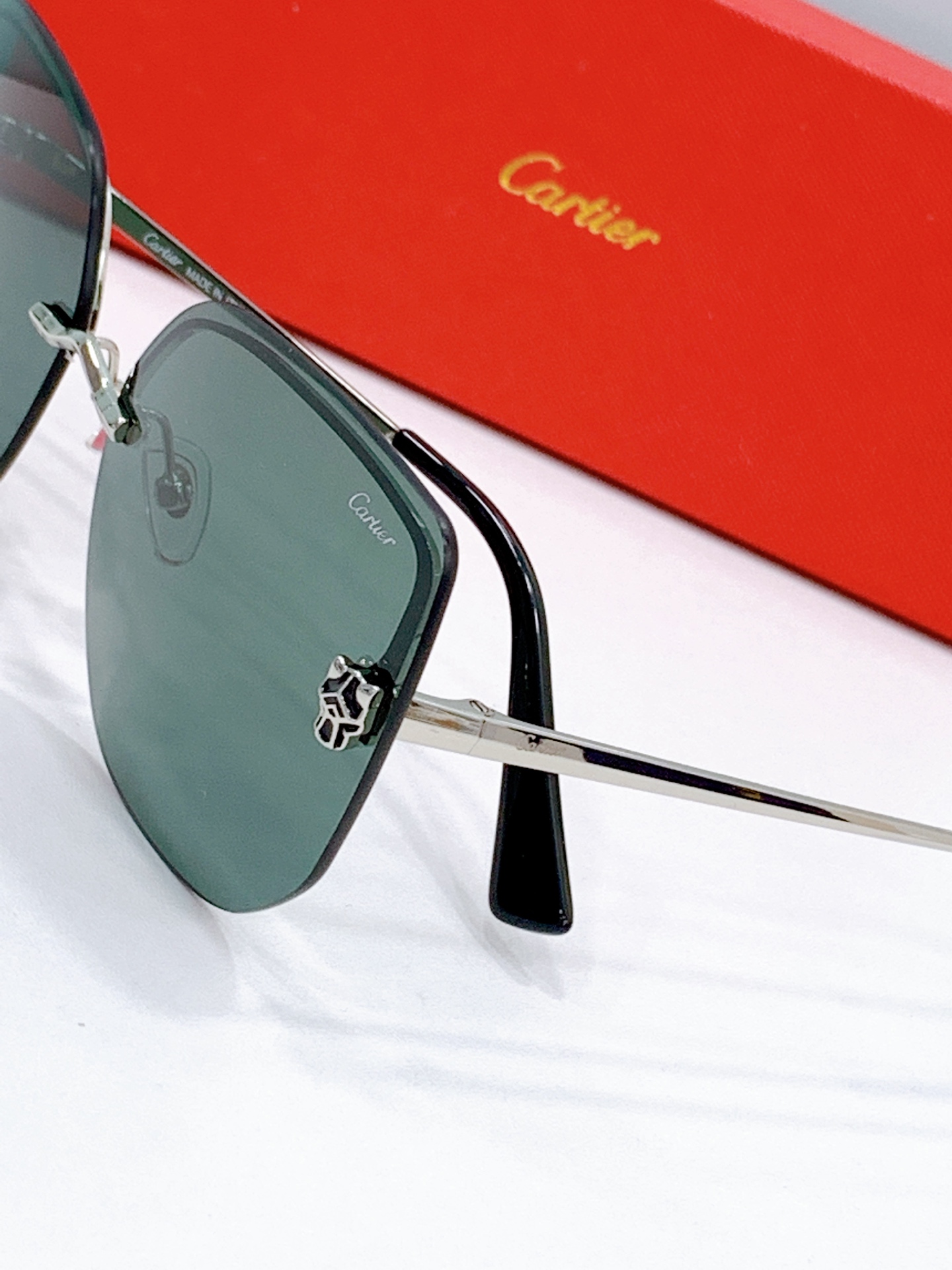 這款太陽眼鏡是AAAAA 1:1 質量(非常棒). 使用了和原版一模一樣的材料. 商標部分也保持了和卡地亞/Cartier一樣. 圖片拍攝是實物太陽眼鏡拍攝, 您所收到的實物保證和我們圖片一模一樣.