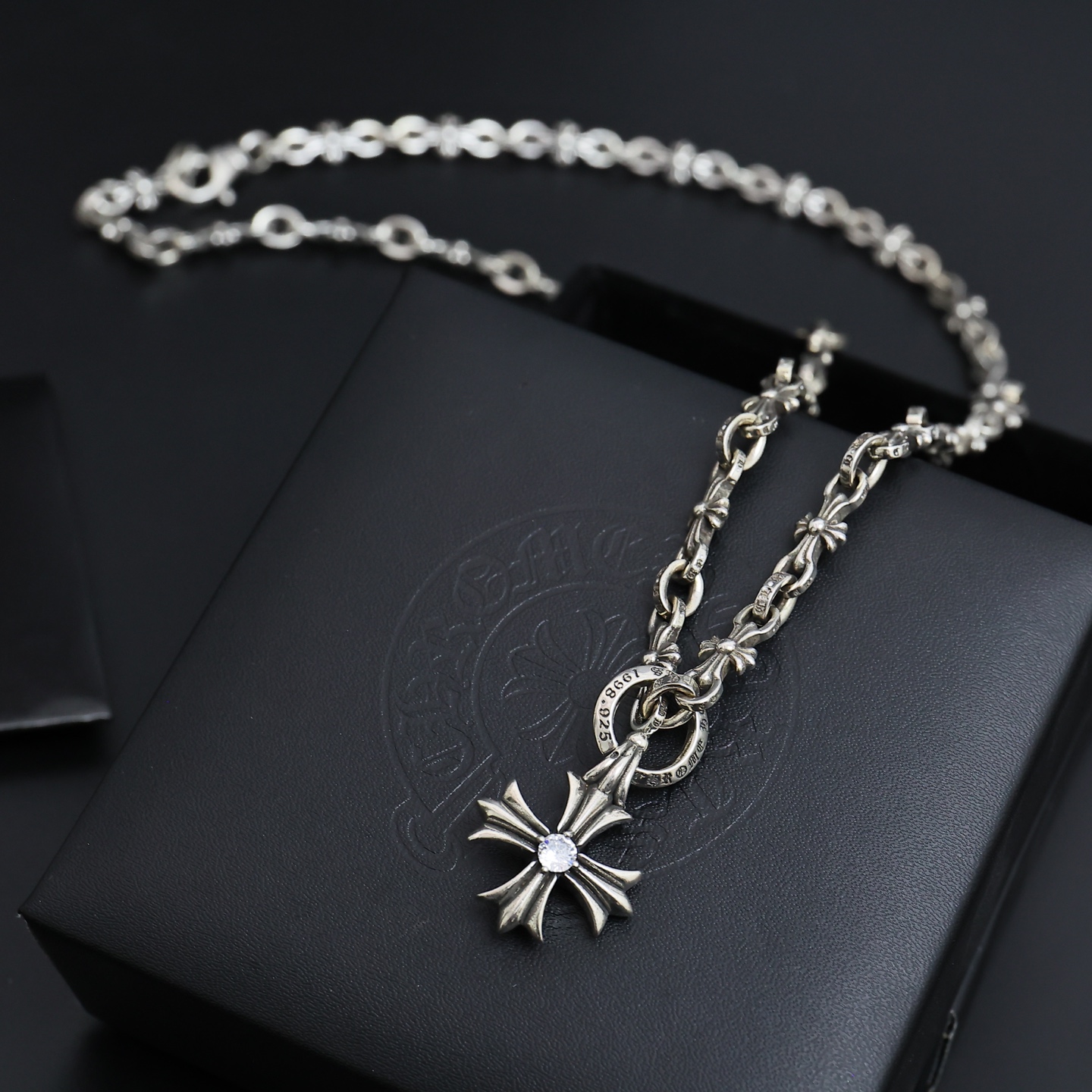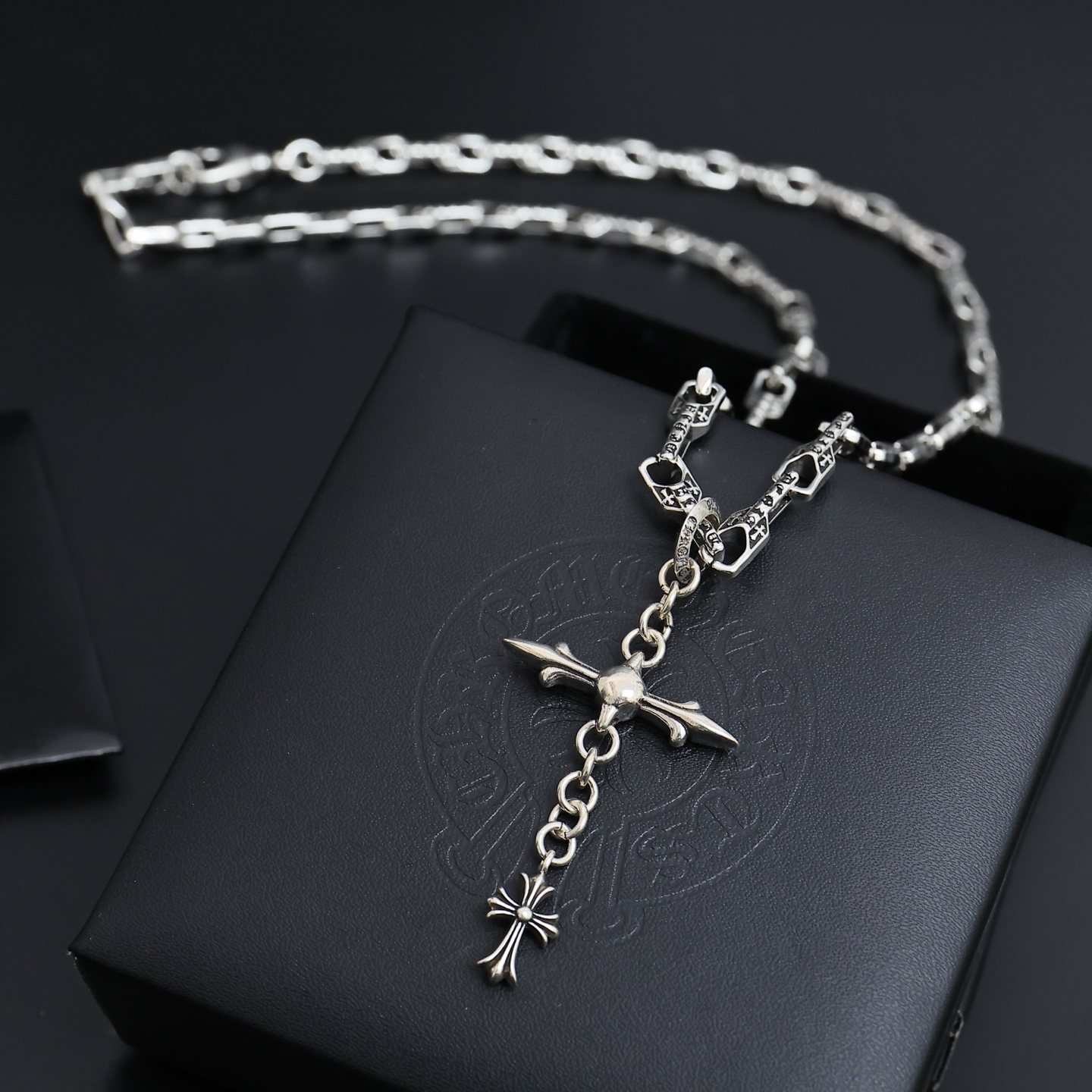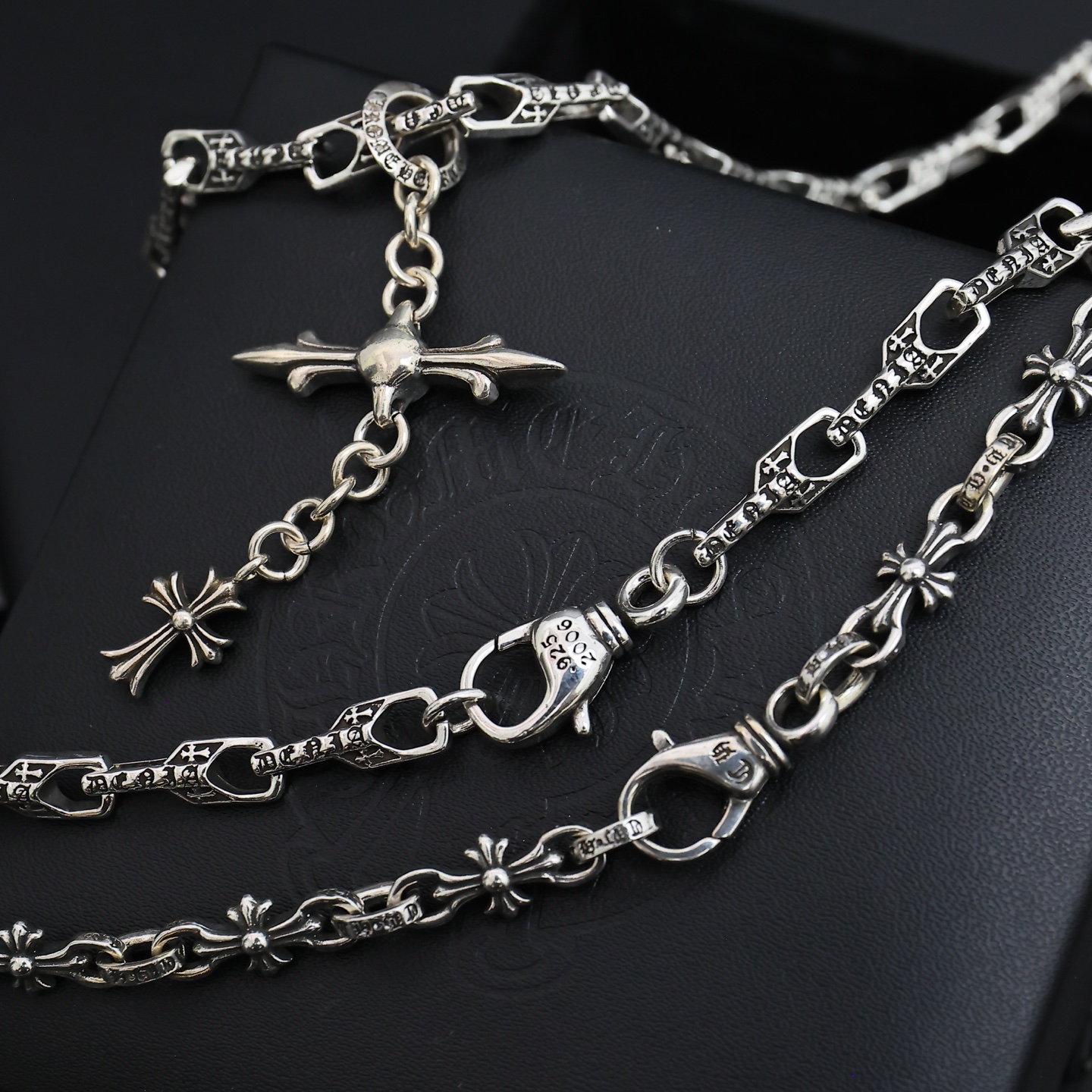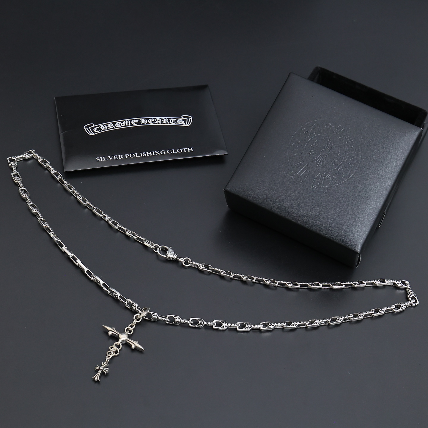 這款首飾是AAAAA 1:1 質量(非常棒). 使用了和原版一模一樣的材料. 商標部分也保持了和鉻心/Chrome Hearts一樣. 圖片拍攝是實物首飾拍攝, 您所收到的實物保證和我們圖片一模一樣.