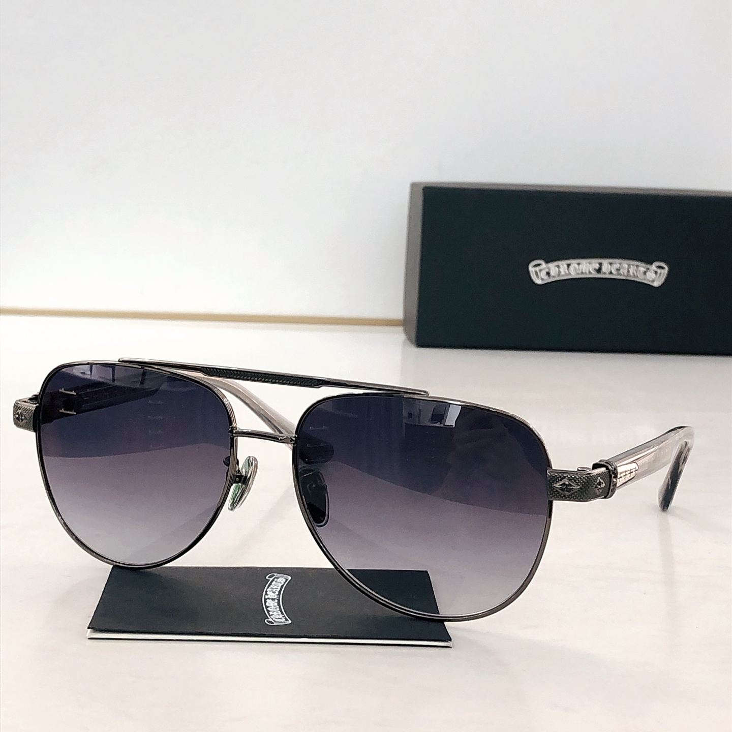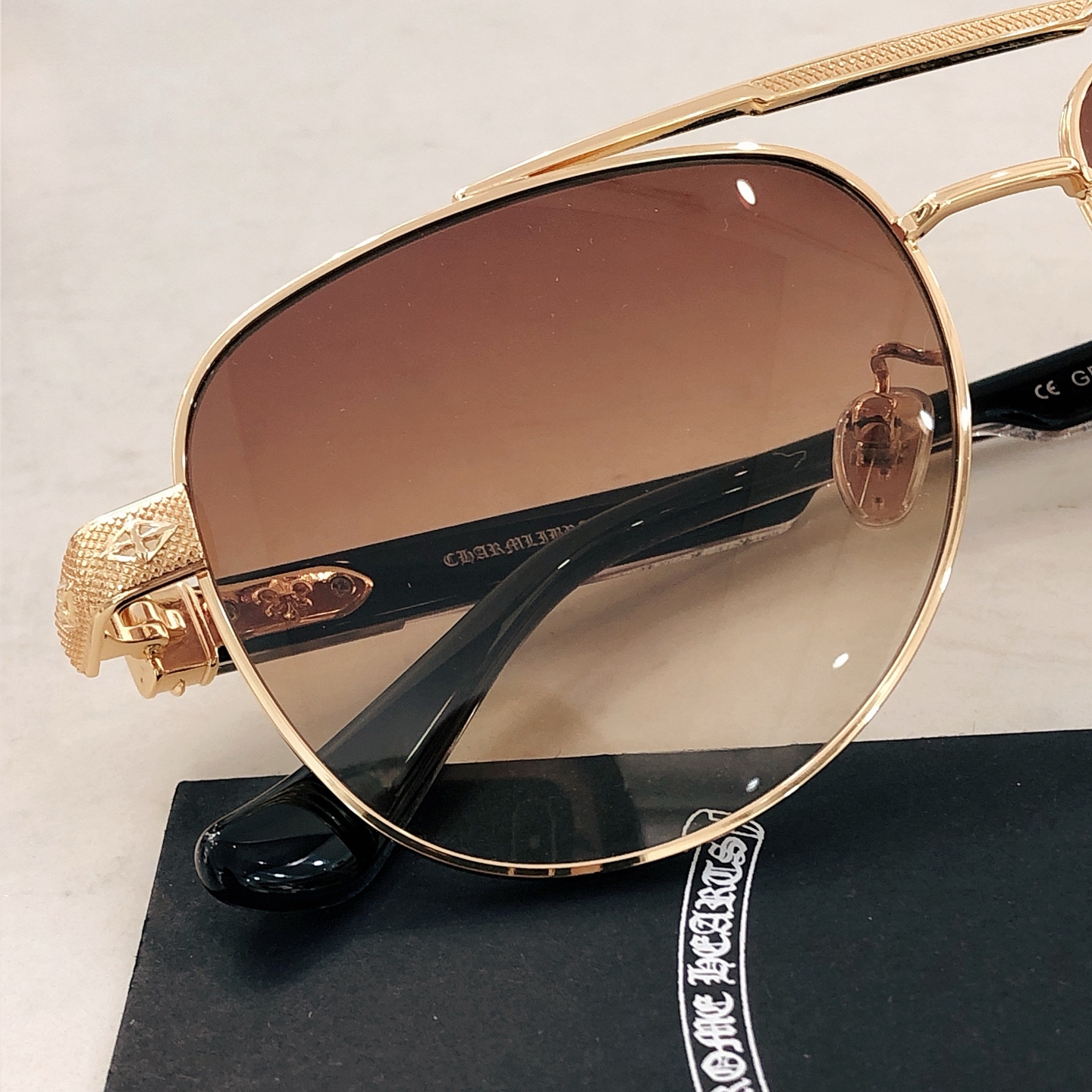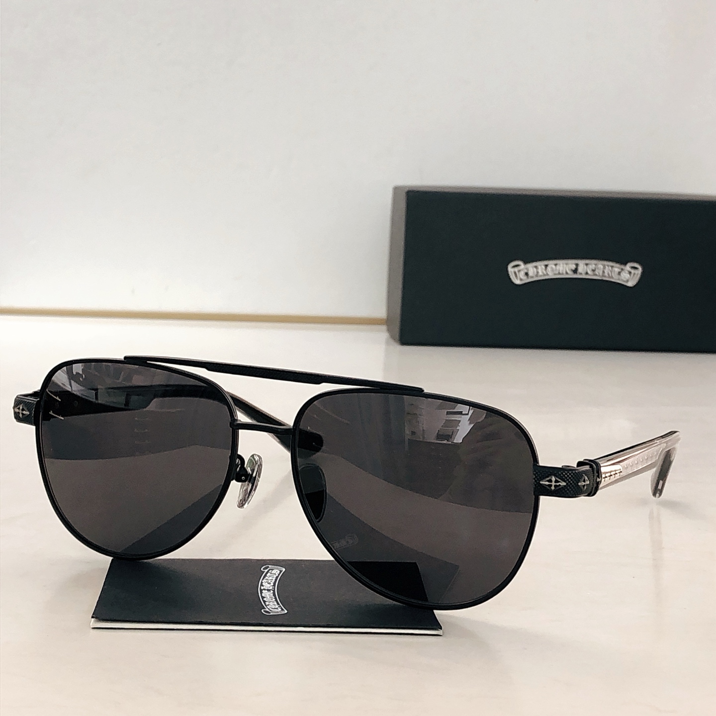 這款太陽眼鏡是AAAAA 1:1 質量(非常棒). 使用了和原版一模一樣的材料. 商標部分也保持了和鉻心/Chrome Hearts一樣. 圖片拍攝是實物太陽眼鏡拍攝, 您所收到的實物保證和我們圖片一模一樣.