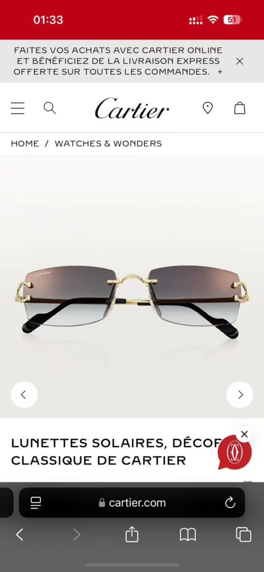 NO:3241104. 這款太陽眼鏡是來自於卡地亞/Cartier的設計師.