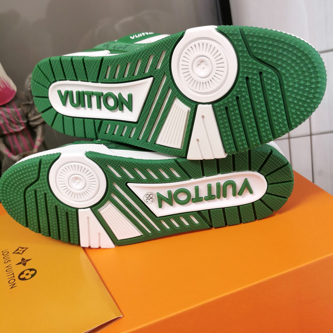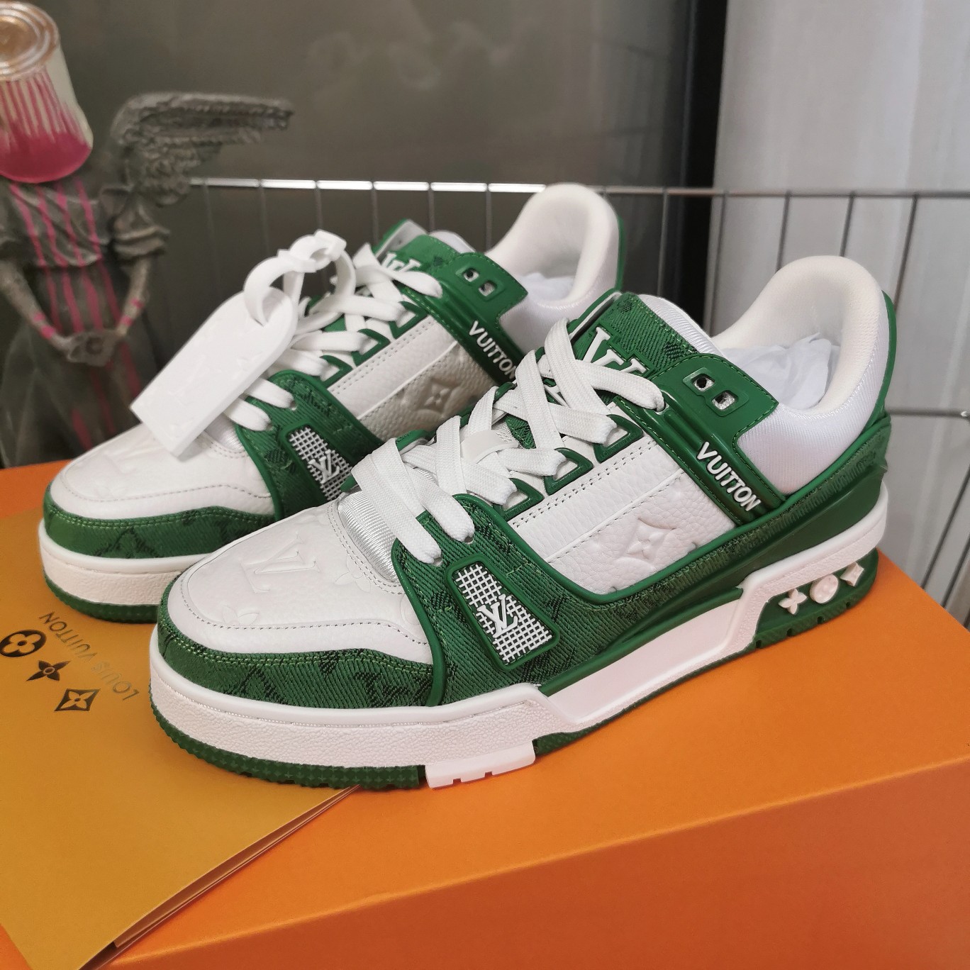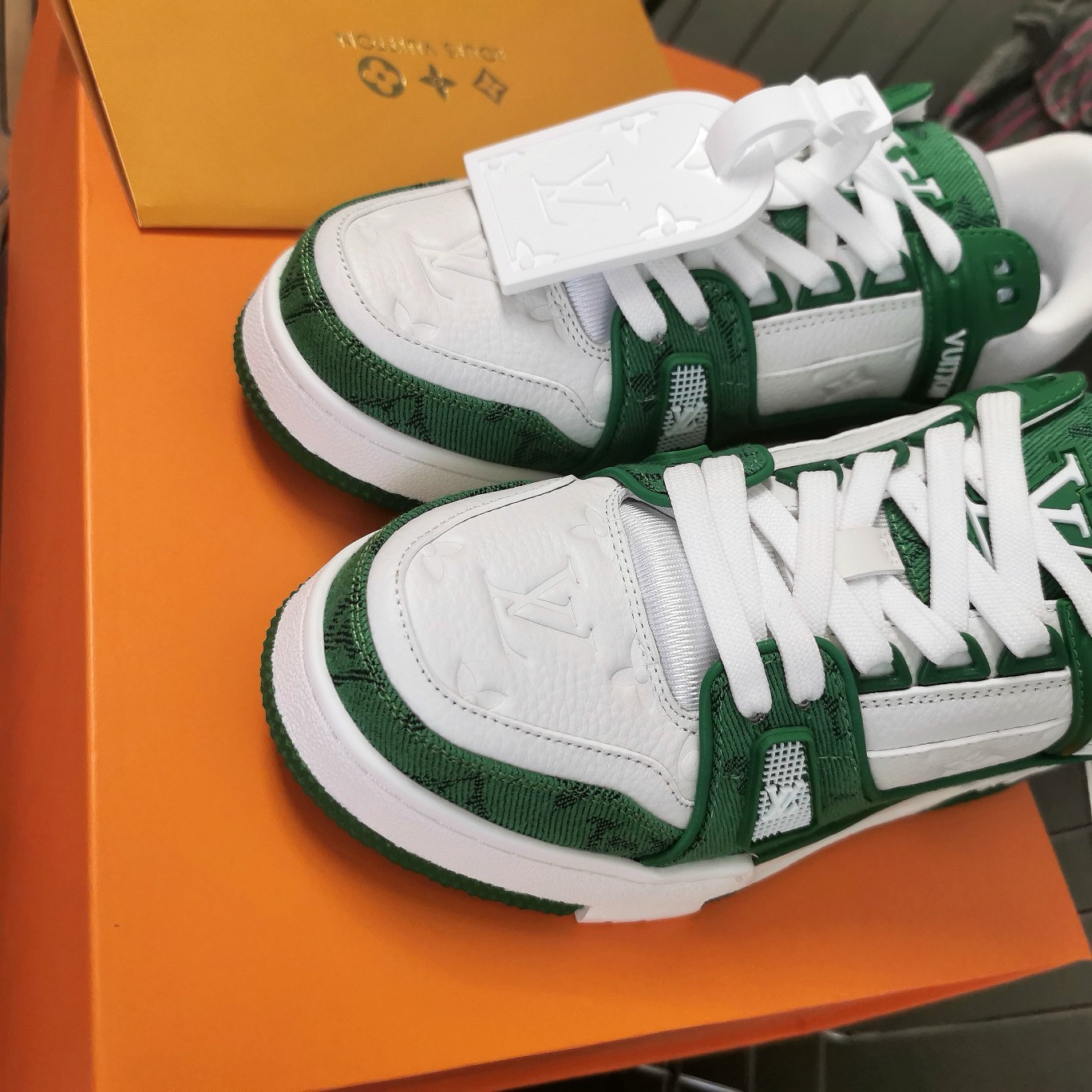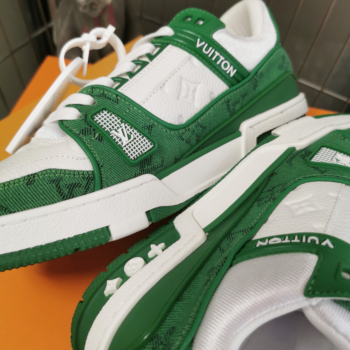 這款鞋子是AAAAA 1:1 質量(非常棒). 使用了和原版一模一樣的材料. 商標部分也保持了和路易威登/Louis Vuitton一樣. 圖片拍攝是實物鞋子拍攝, 您所收到的實物保證和我們圖片一模一樣.