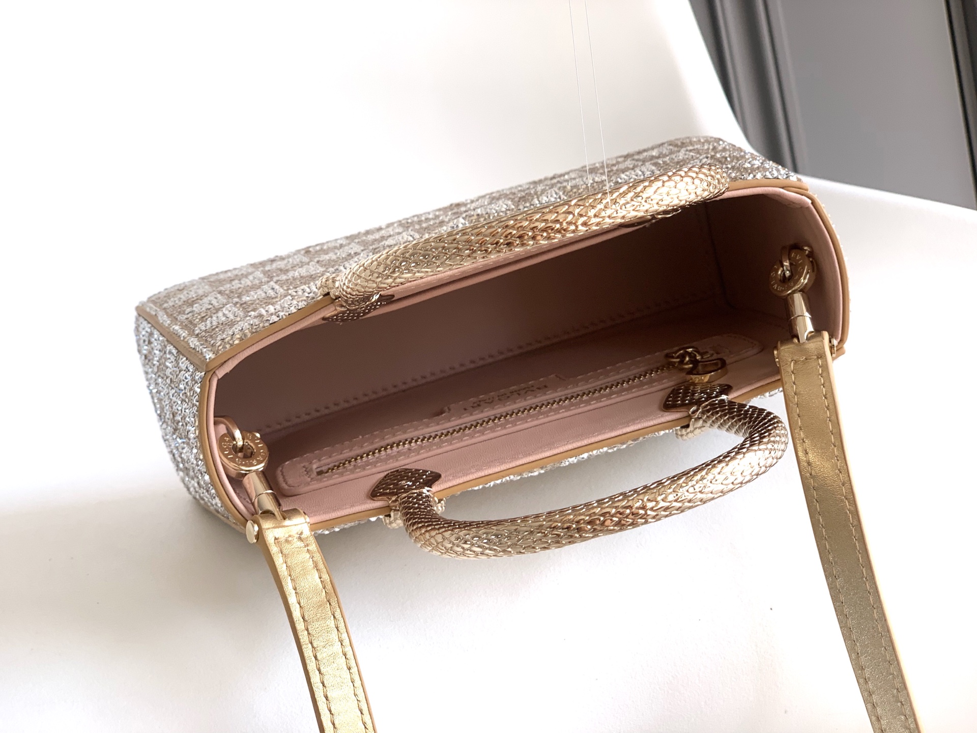 這款包包是AAAAA 1:1 質量(非常棒). 使用了和原版一模一樣的材料. 商標部分也保持了和寶格麗/Bulgari一樣. 圖片拍攝是實物包包拍攝, 您所收到的實物保證和我們圖片一模一樣.