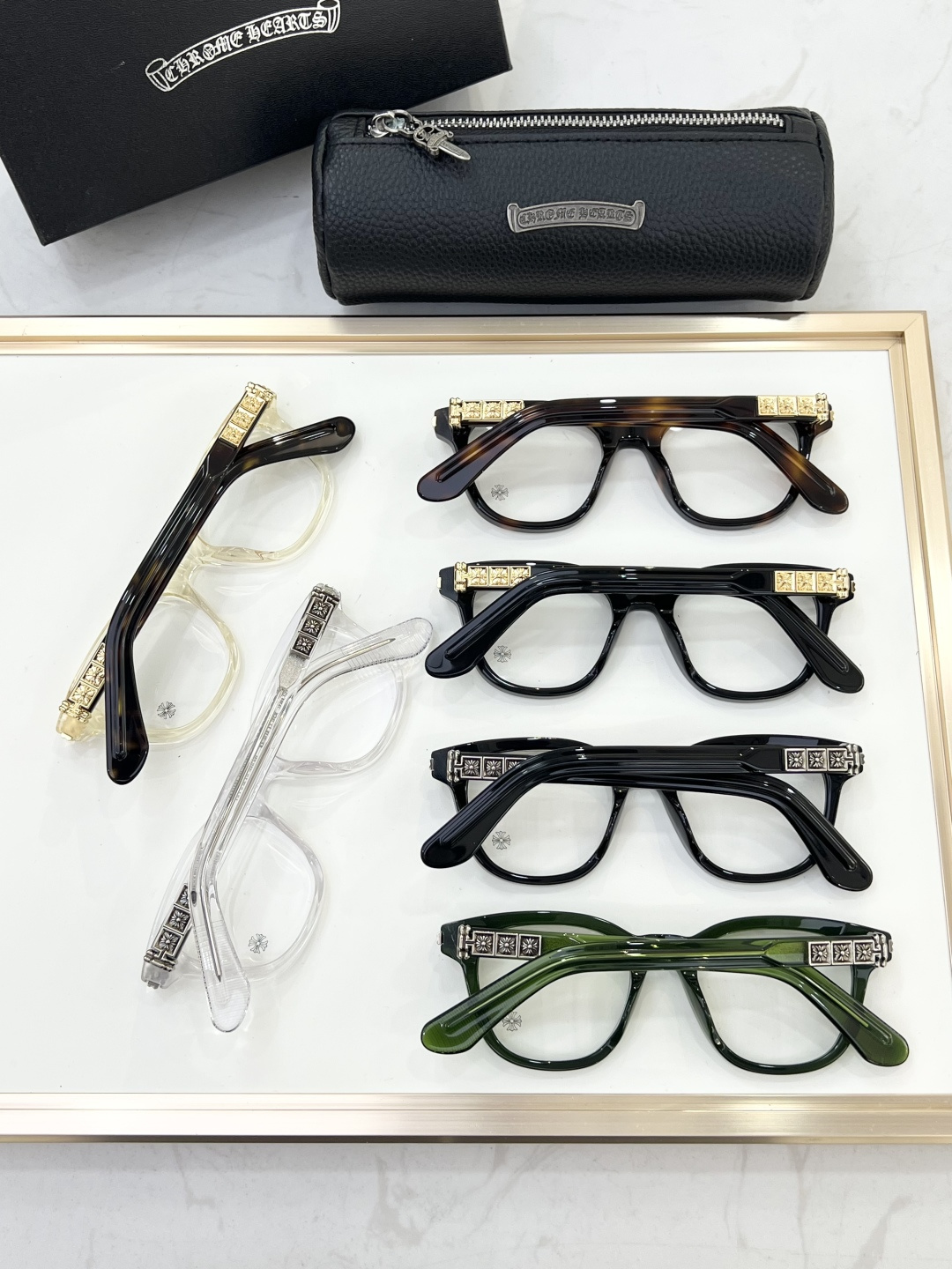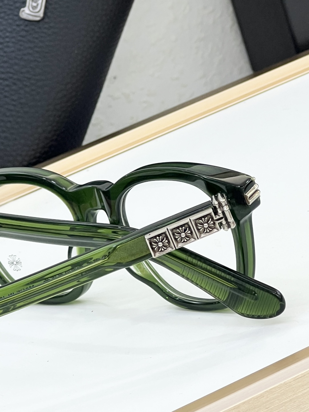 這款太陽眼鏡是AAAAA 1:1 質量(非常棒). 使用了和原版一模一樣的材料. 商標部分也保持了和鉻心/Chrome Hearts一樣. 圖片拍攝是實物太陽眼鏡拍攝, 您所收到的實物保證和我們圖片一模一樣.