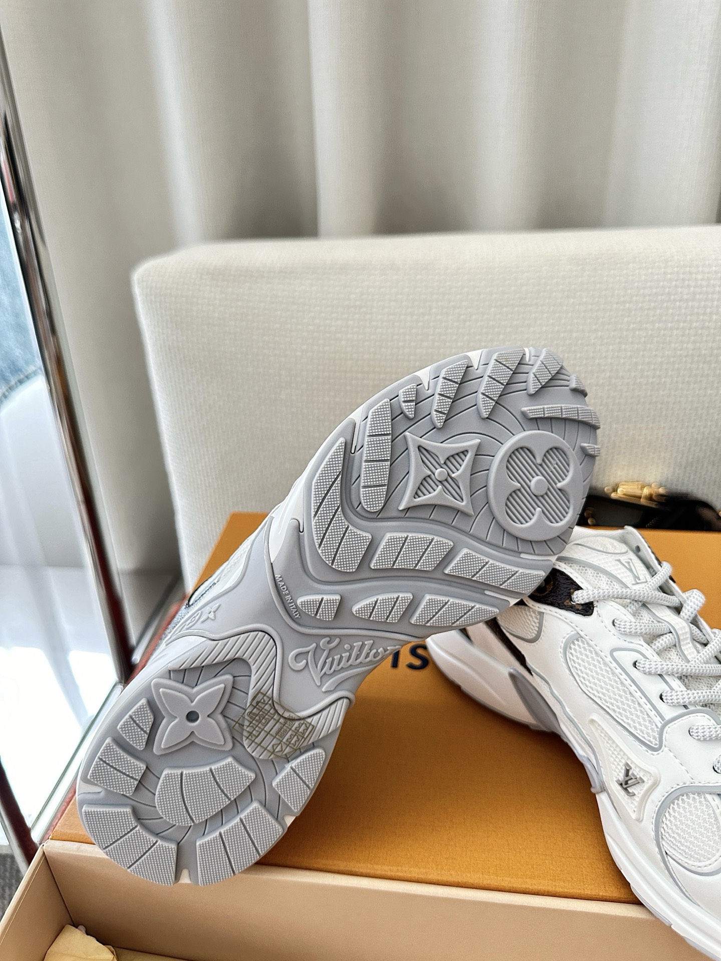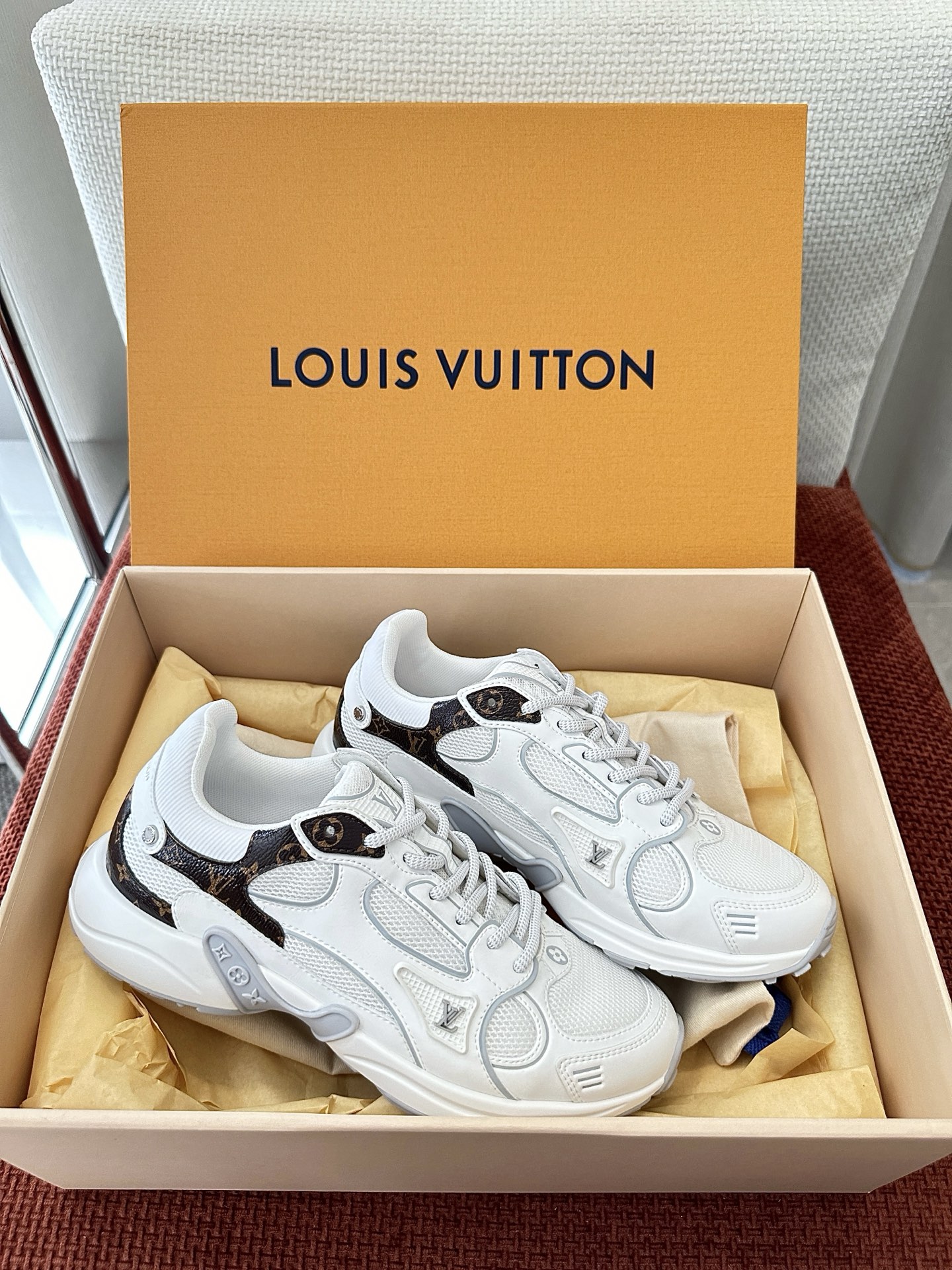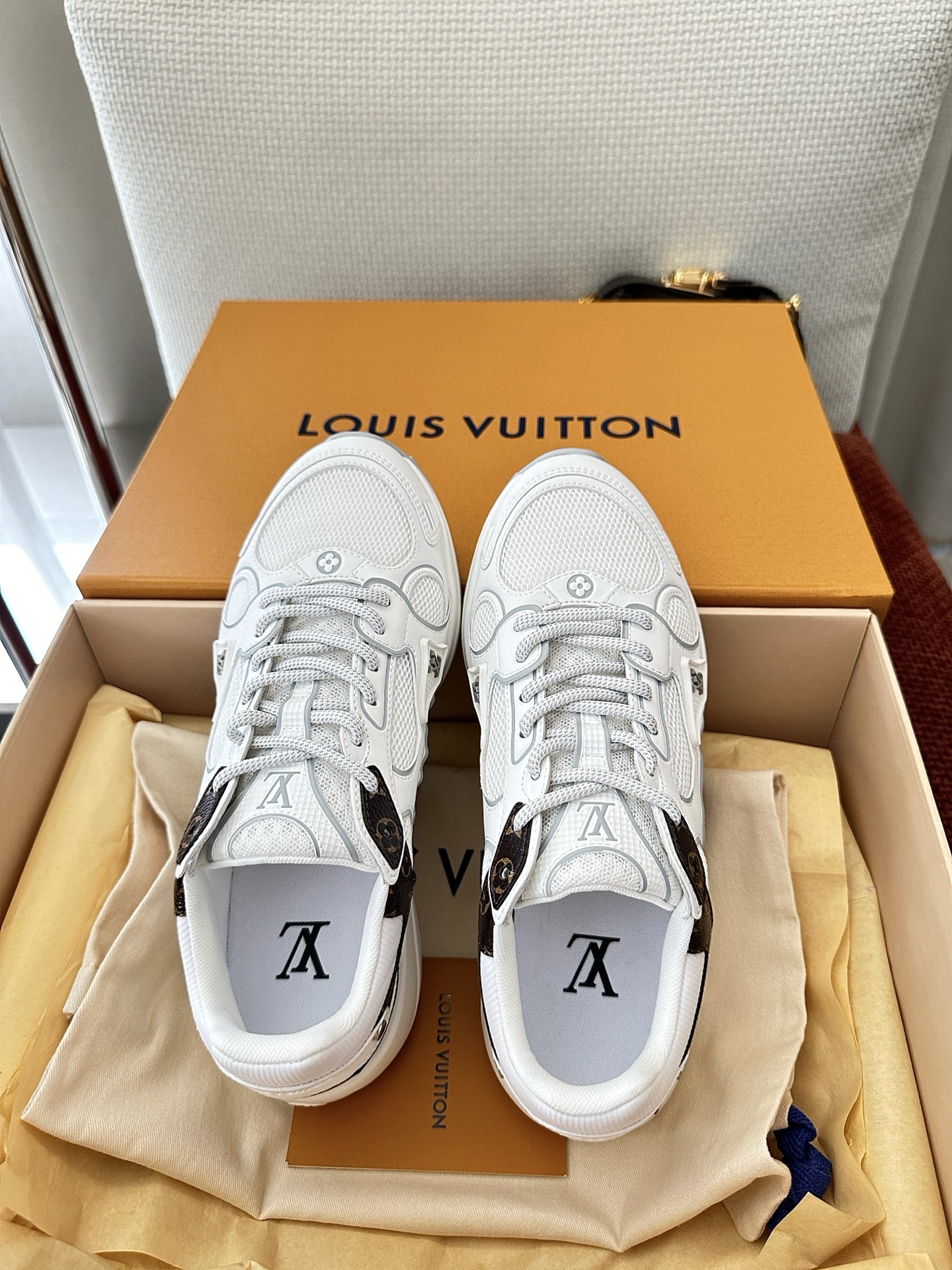 這款鞋子是AAAAA 1:1 質量(非常棒). 使用了和原版一模一樣的材料. 商標部分也保持了和路易威登/Louis Vuitton一樣. 圖片拍攝是實物鞋子拍攝, 您所收到的實物保證和我們圖片一模一樣.