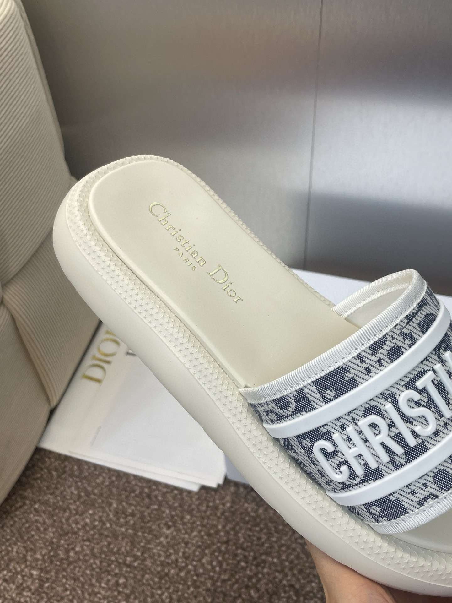 這款鞋子是AAAAA 1:1 質量(非常棒). 使用了和原版一模一樣的材料. 商標部分也保持了和迪奧/Dior一樣. 圖片拍攝是實物鞋子拍攝, 您所收到的實物保證和我們圖片一模一樣.