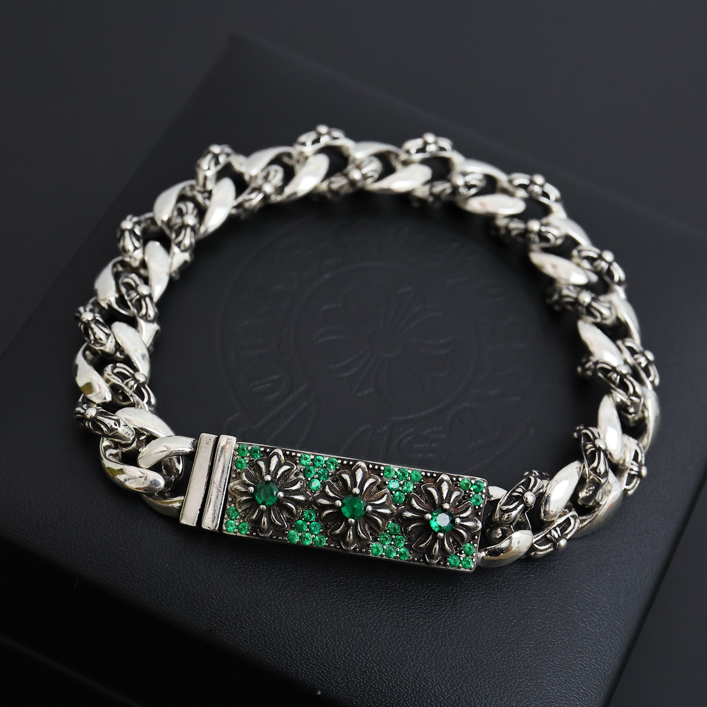 這款首飾是AAAAA 1:1 質量(非常棒). 使用了和原版一模一樣的材料. 商標部分也保持了和鉻心/Chrome Hearts一樣. 圖片拍攝是實物首飾拍攝, 您所收到的實物保證和我們圖片一模一樣.