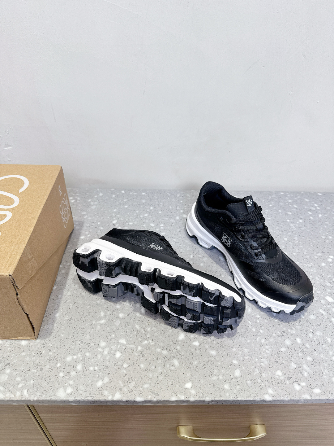 這款鞋子是AAAAA 1:1 質量(非常棒). 使用了和原版一模一樣的材料. 商標部分也保持了和Loewe & On一樣. 圖片拍攝是實物鞋子拍攝, 您所收到的實物保證和我們圖片一模一樣.