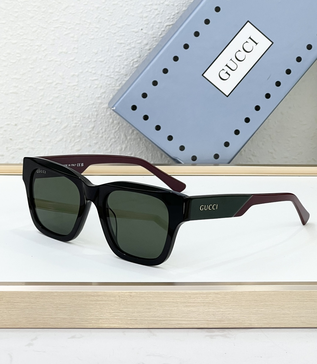 這款太陽眼鏡是AAAAA 1:1 質量(非常棒). 使用了和原版一模一樣的材料. 商標部分也保持了和古奇/Gucci一樣. 圖片拍攝是實物太陽眼鏡拍攝, 您所收到的實物保證和我們圖片一模一樣.