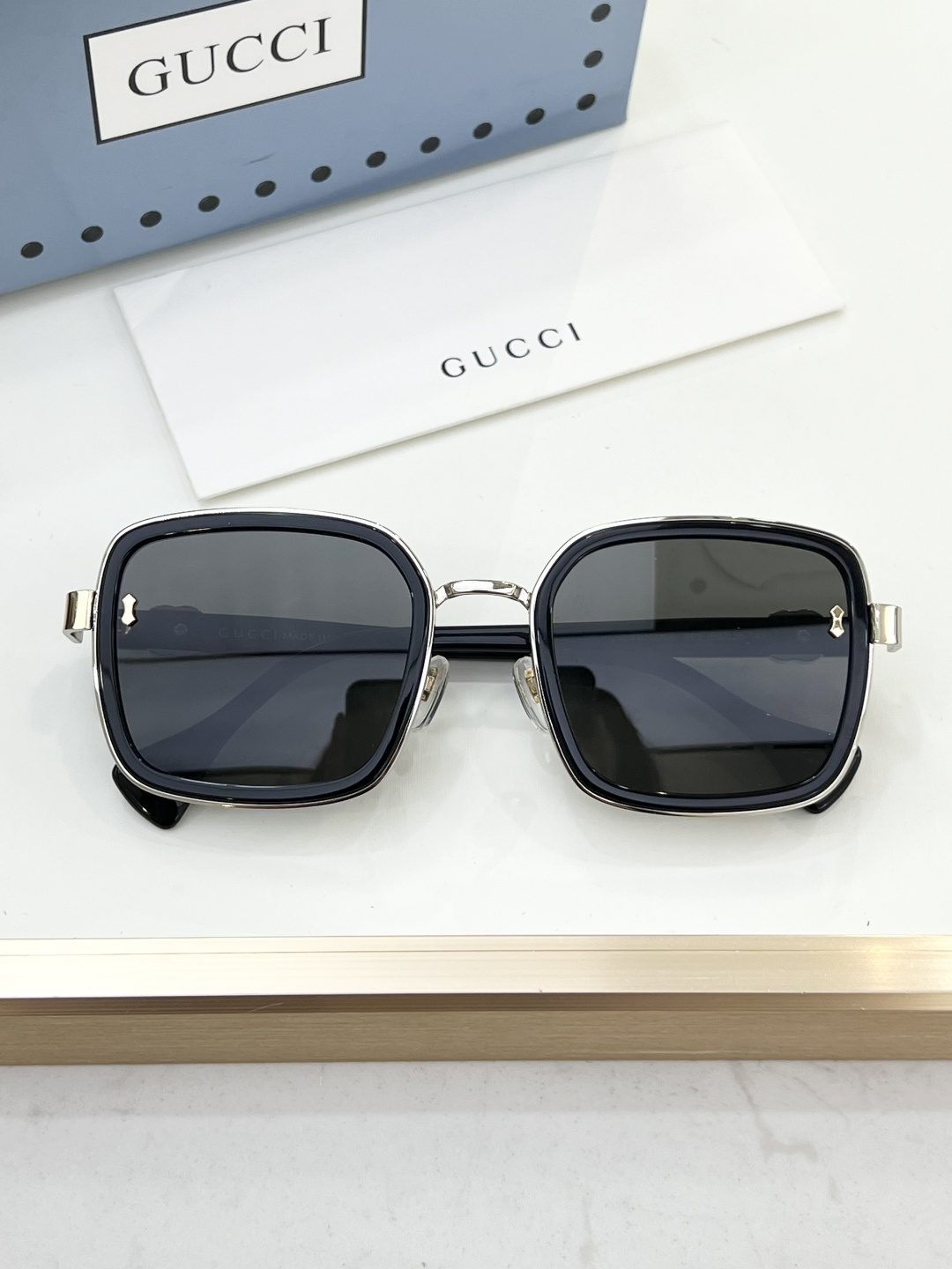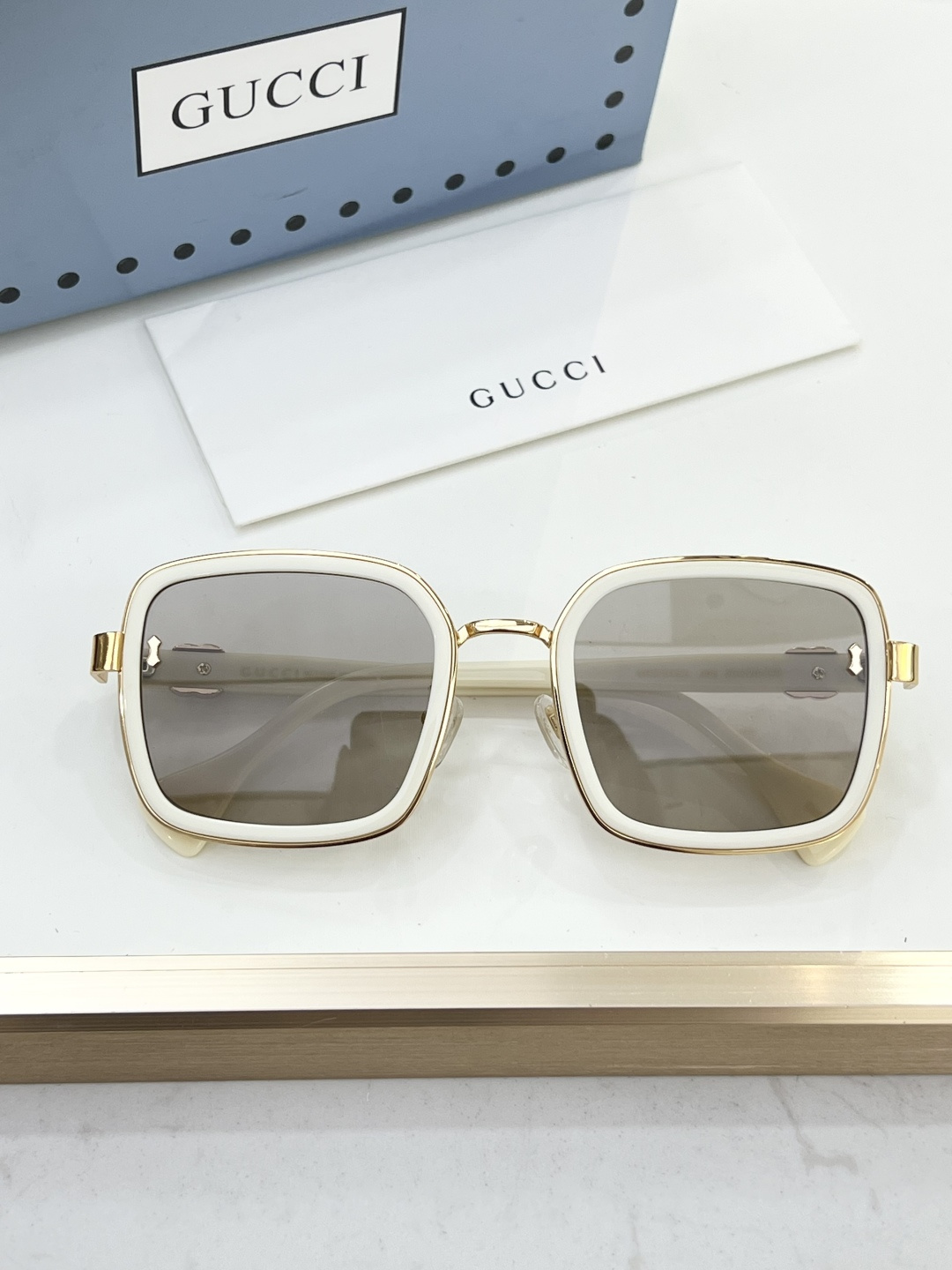 這款太陽眼鏡是AAAAA 1:1 質量(非常棒). 使用了和原版一模一樣的材料. 商標部分也保持了和古奇/Gucci一樣. 圖片拍攝是實物太陽眼鏡拍攝, 您所收到的實物保證和我們圖片一模一樣.