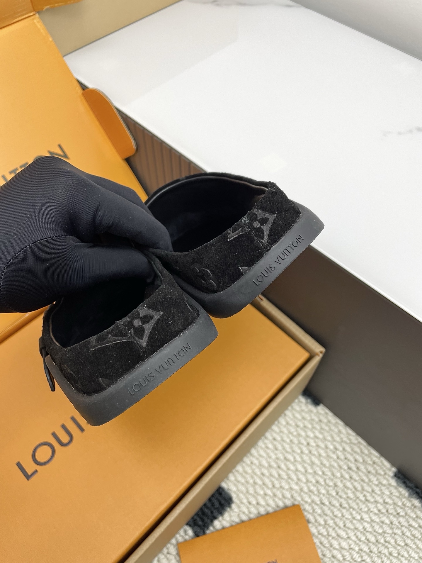 這款鞋子是AAAAA 1:1 質量(非常棒). 使用了和原版一模一樣的材料. 商標部分也保持了和路易威登/Louis Vuitton一樣. 圖片拍攝是實物鞋子拍攝, 您所收到的實物保證和我們圖片一模一樣.