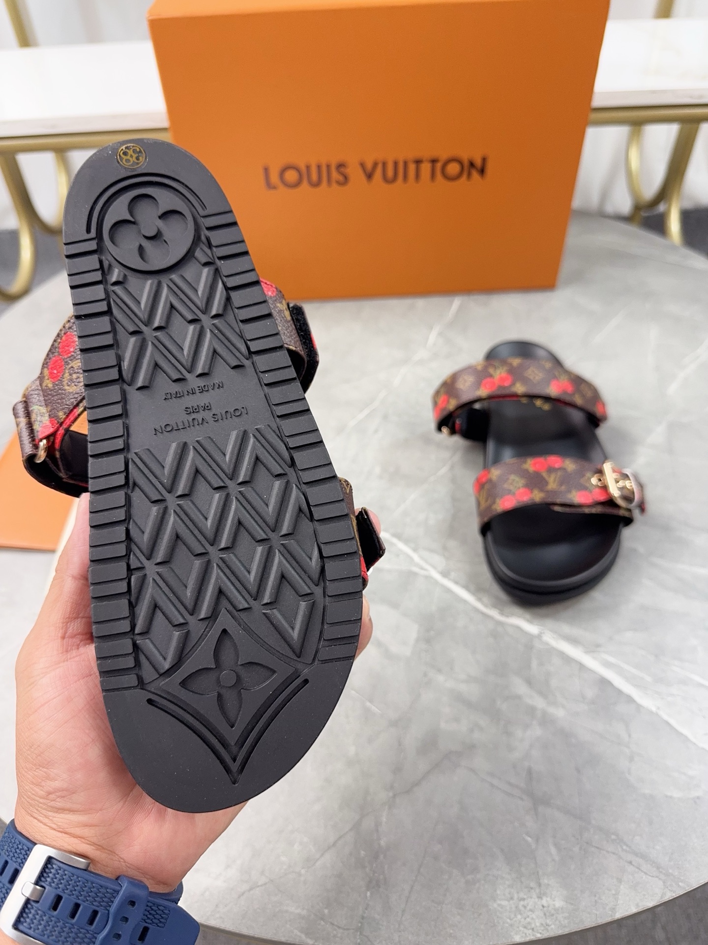 這款鞋子是AAAAA 1:1 質量(非常棒). 使用了和原版一模一樣的材料. 商標部分也保持了和路易威登/Louis Vuitton一樣. 圖片拍攝是實物鞋子拍攝, 您所收到的實物保證和我們圖片一模一樣.