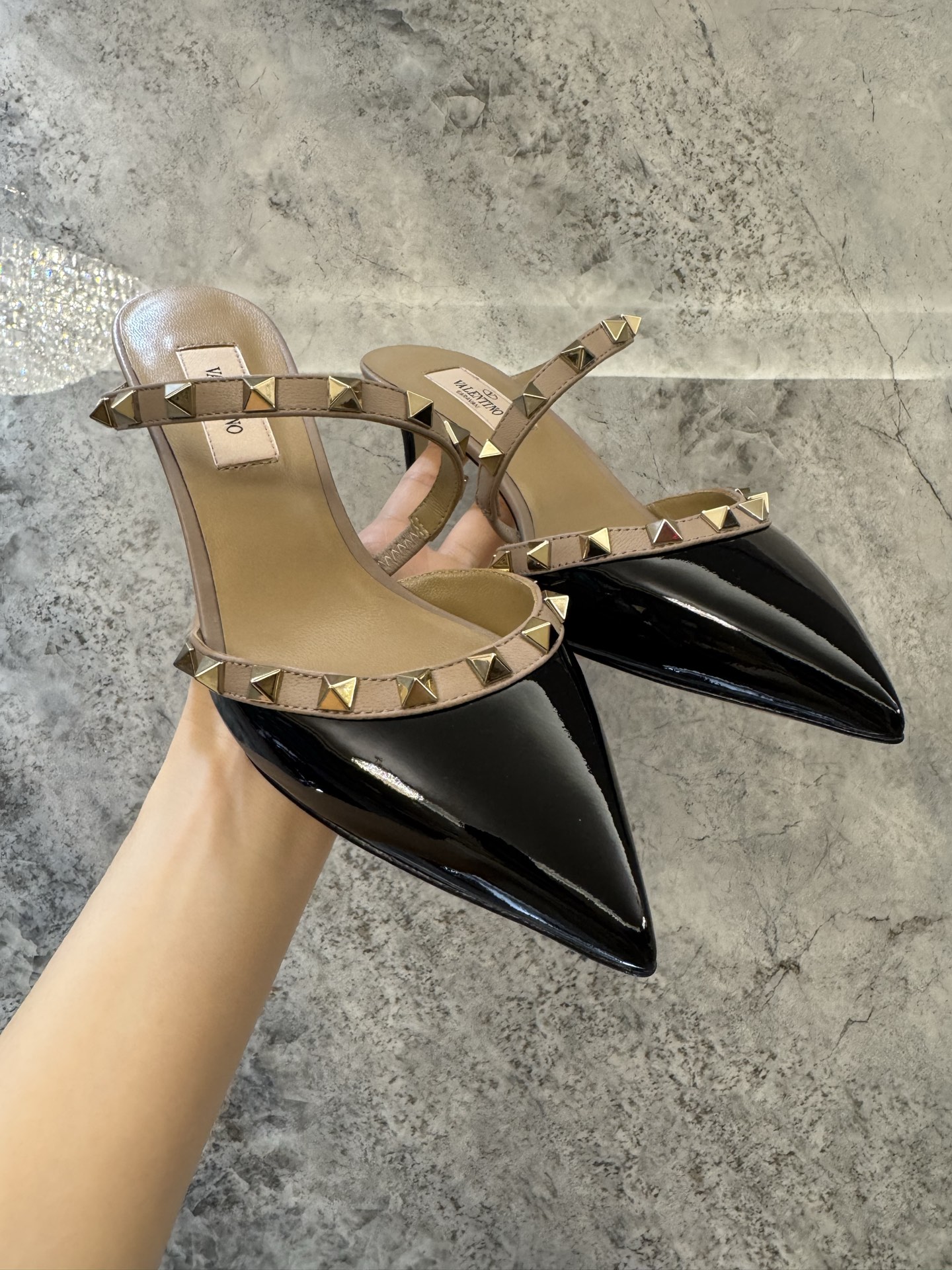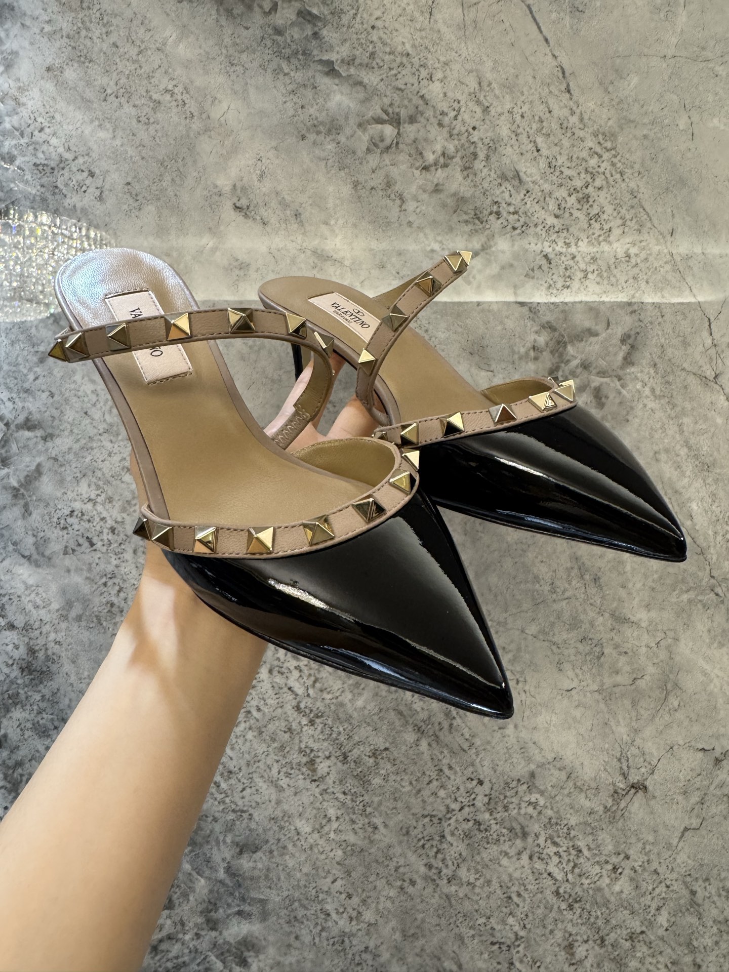 這款鞋子是AAAAA 1:1 質量(非常棒). 使用了和原版一模一樣的材料. 商標部分也保持了和瓦倫蒂諾/Valentino一樣. 圖片拍攝是實物鞋子拍攝, 您所收到的實物保證和我們圖片一模一樣.